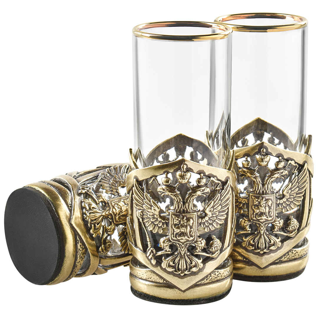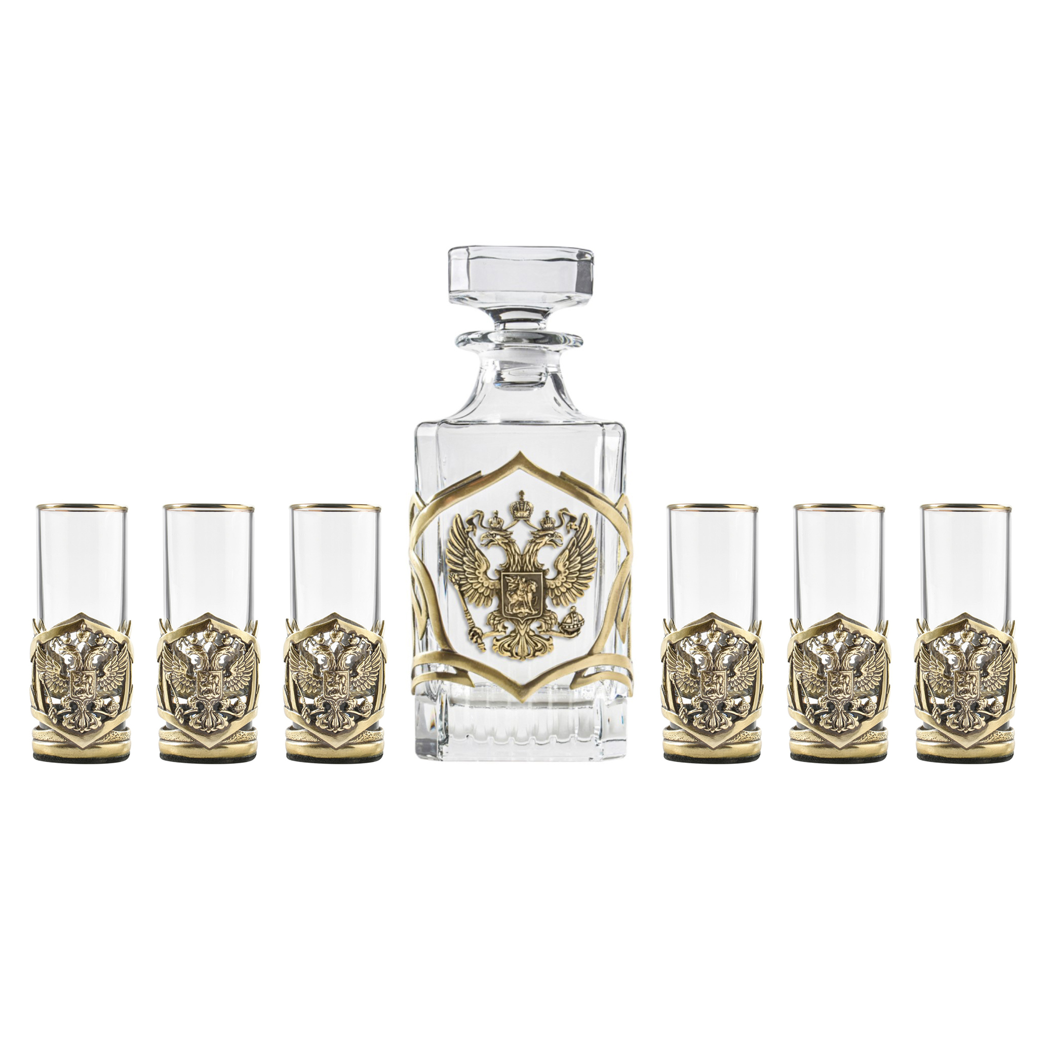 Набор для водки "Герб Российской Федерации" на 6 персон — это исключительный пример утонченного стиля и величия, подходящий для тех, кто ценит не только элегантность, но и богатую символику. В его состав входят шесть стопок и графин, украшенные литыми латунными накладками, на которых изображен двуглавый орел — один из самых известных символов России, олицетворяющий её силу и стабильность. Каждая накладка, отлитая с высокой точностью, придает каждому предмету особую значимость и величие, превращая его в настоящее произведение искусства.