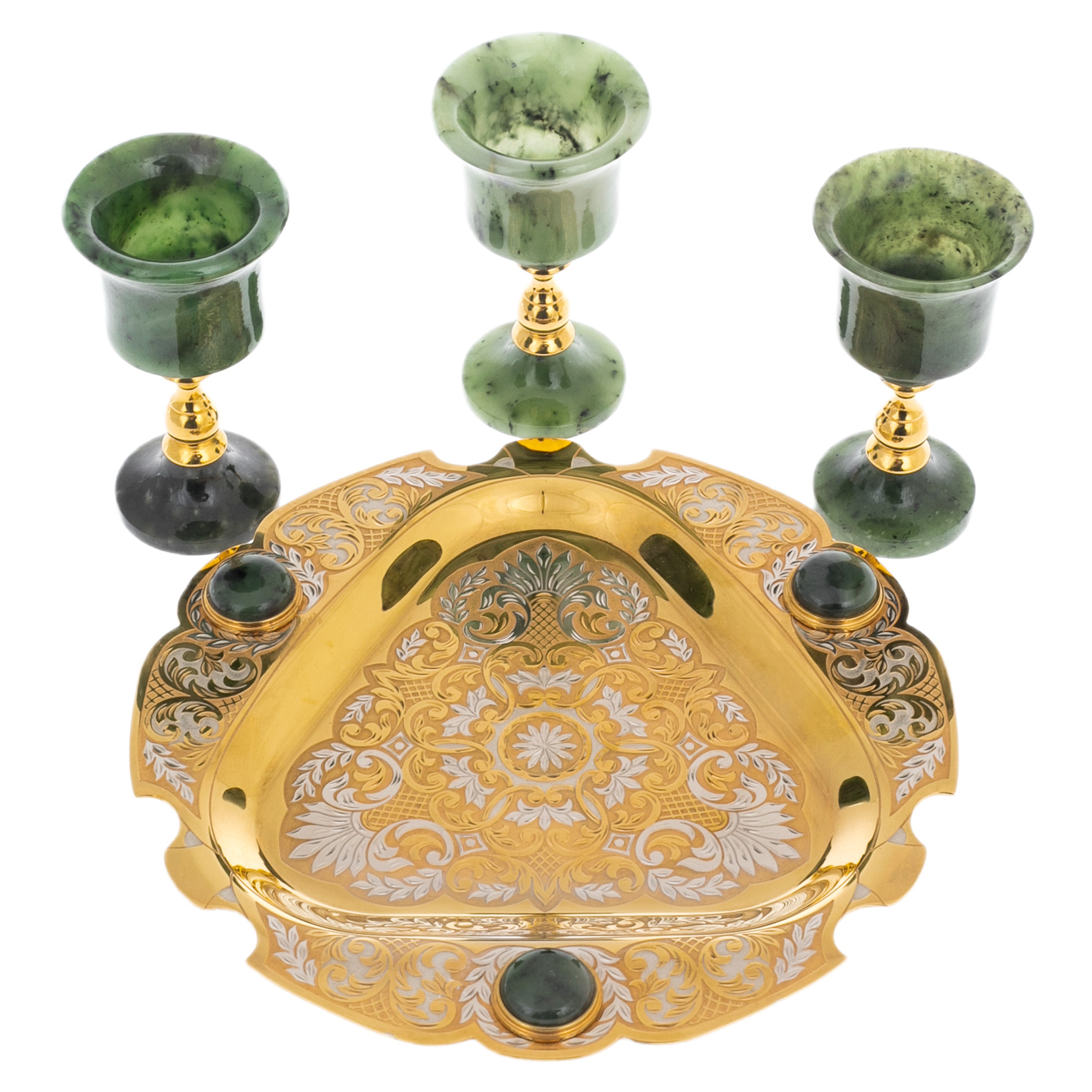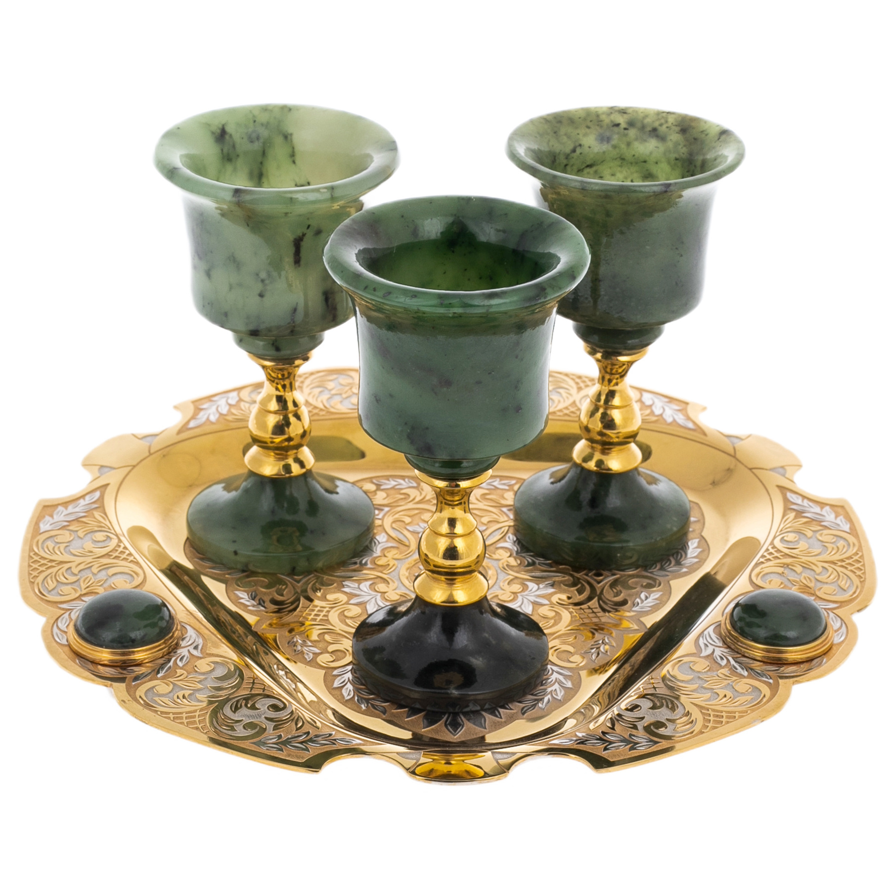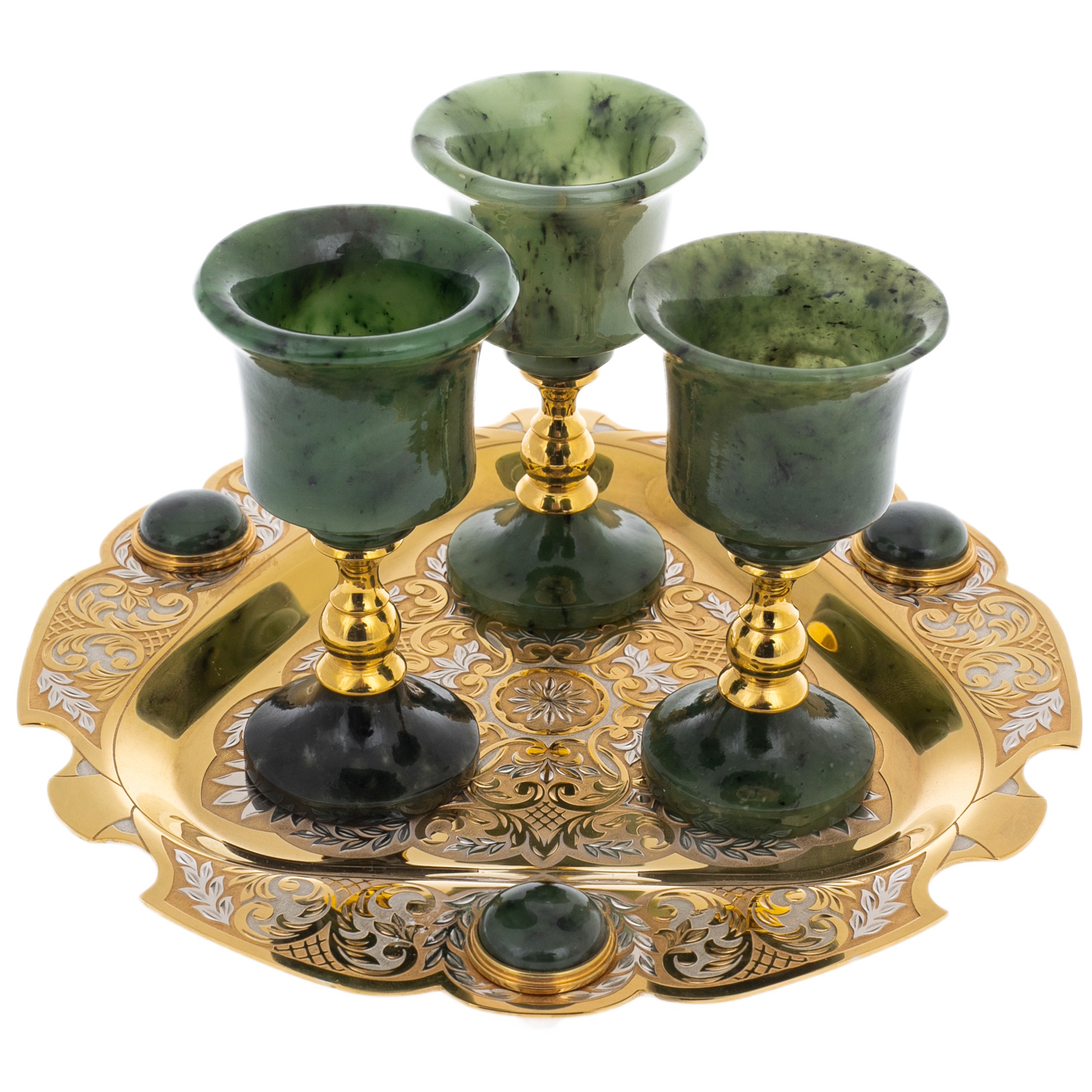 Набор для водки из нефрита "Трио" на 3 персоны, Златоуст