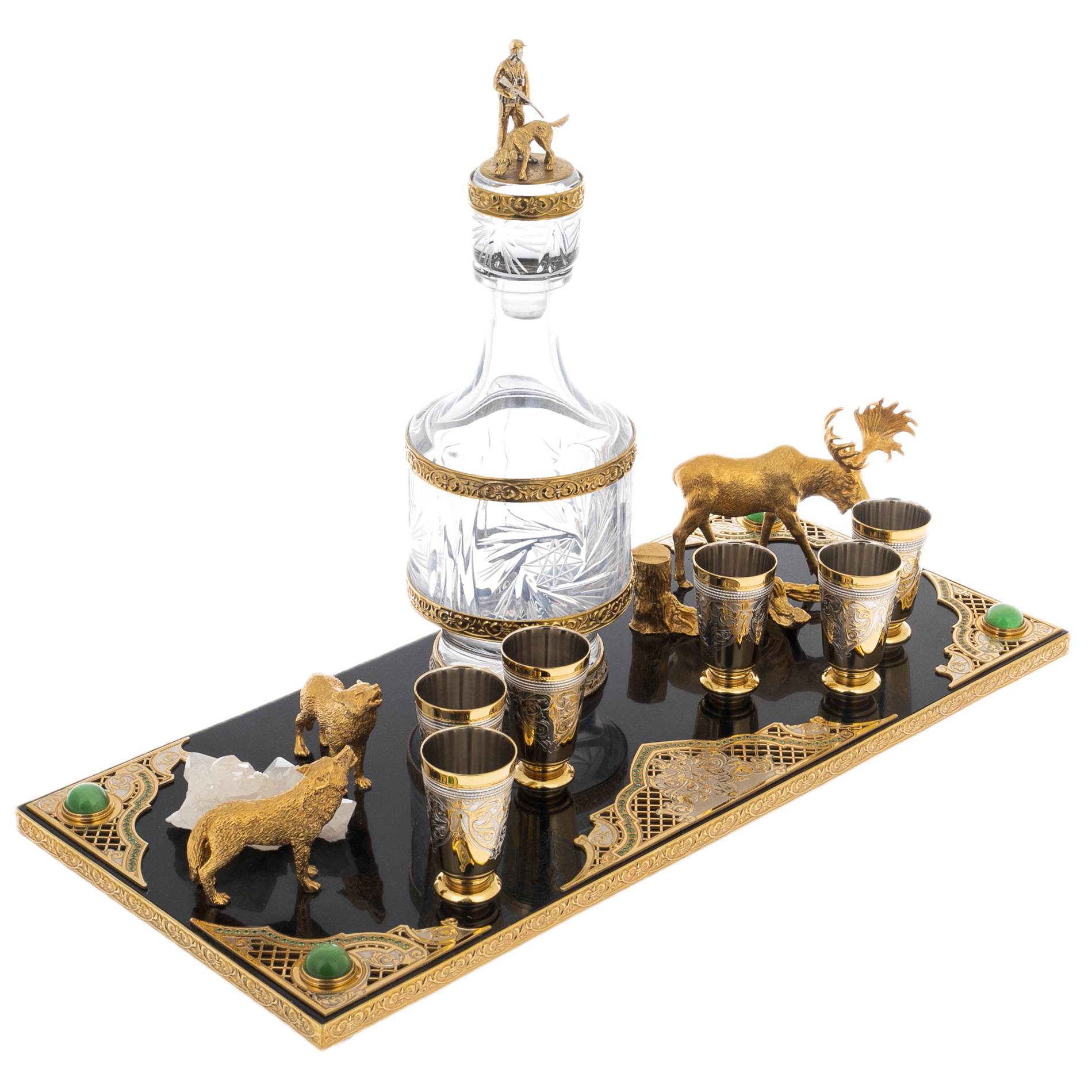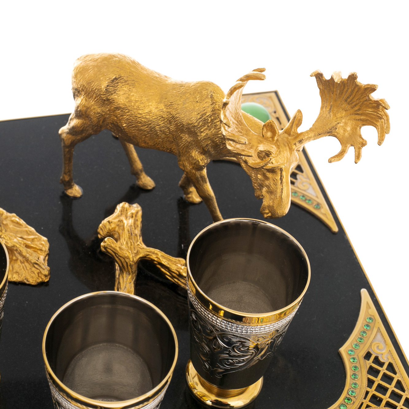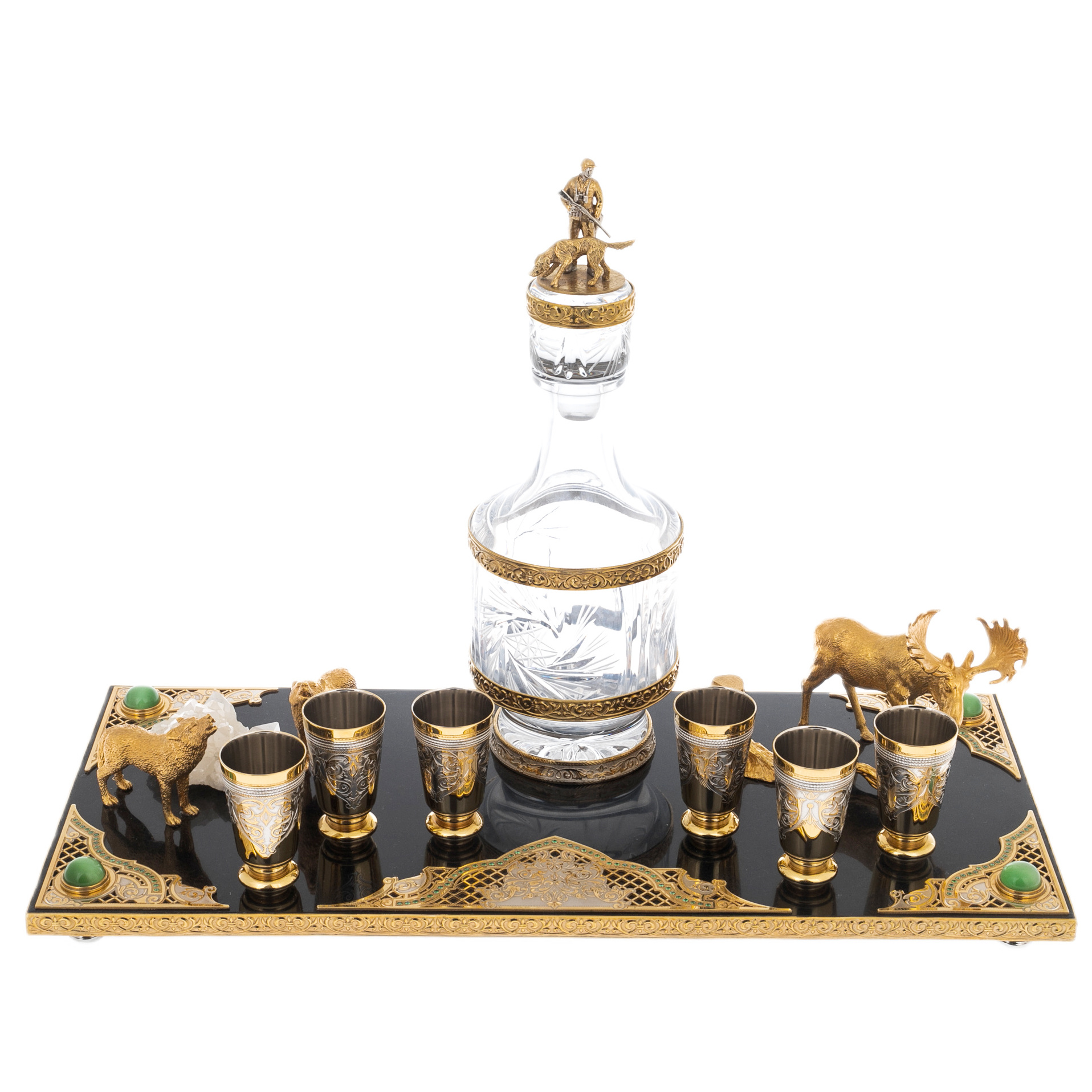 Набор для водки "Охота" на подставке из долерита, на 6 персон, Златоуст