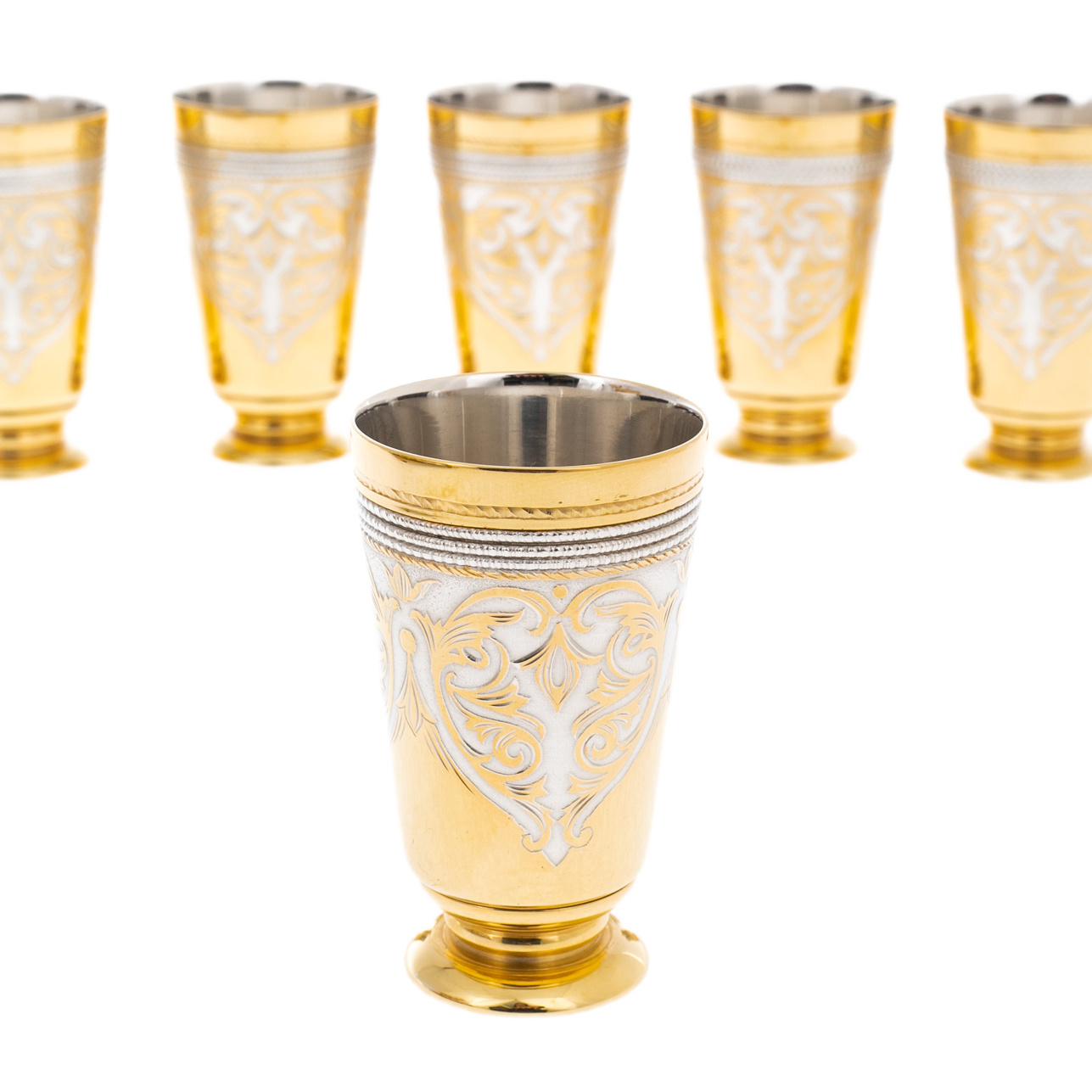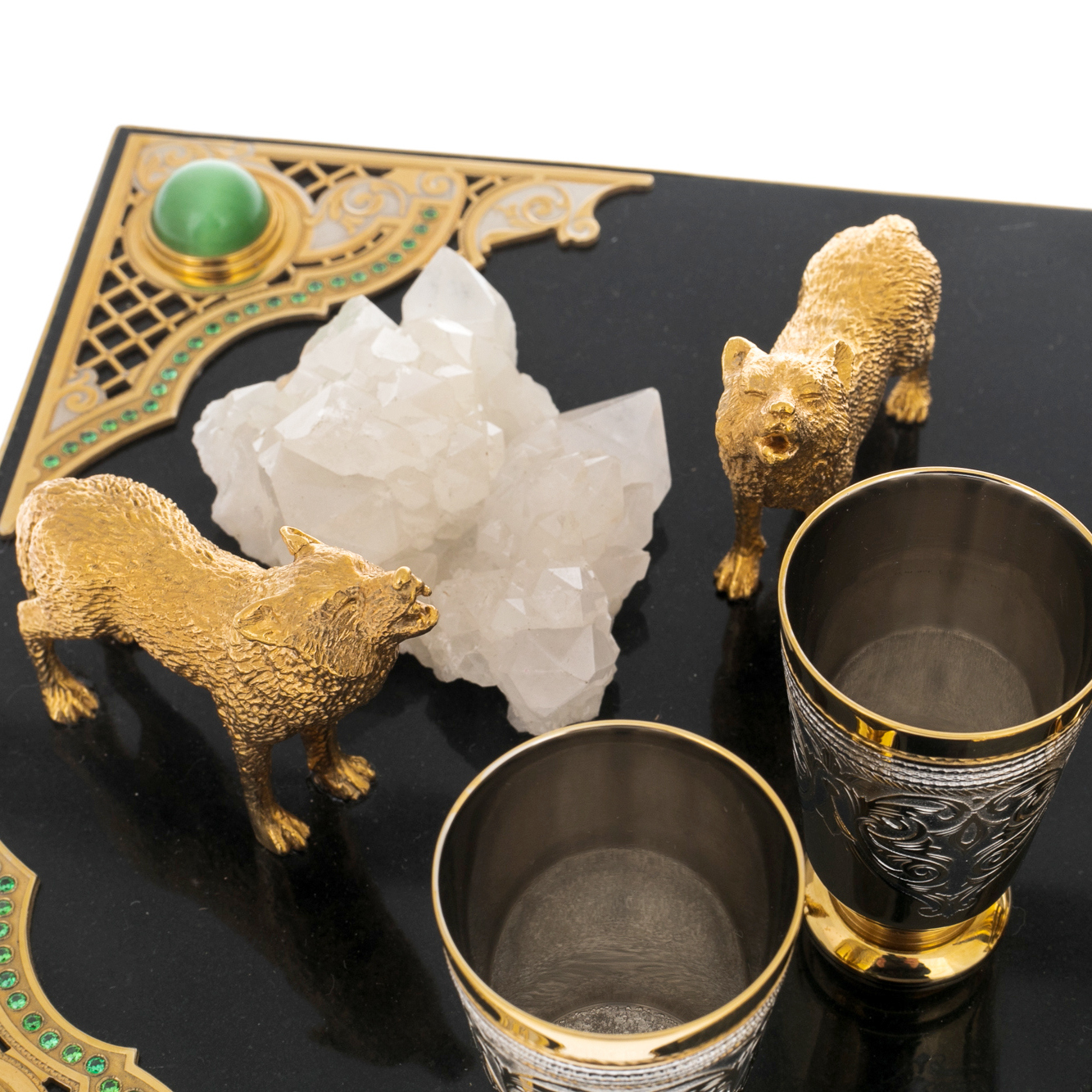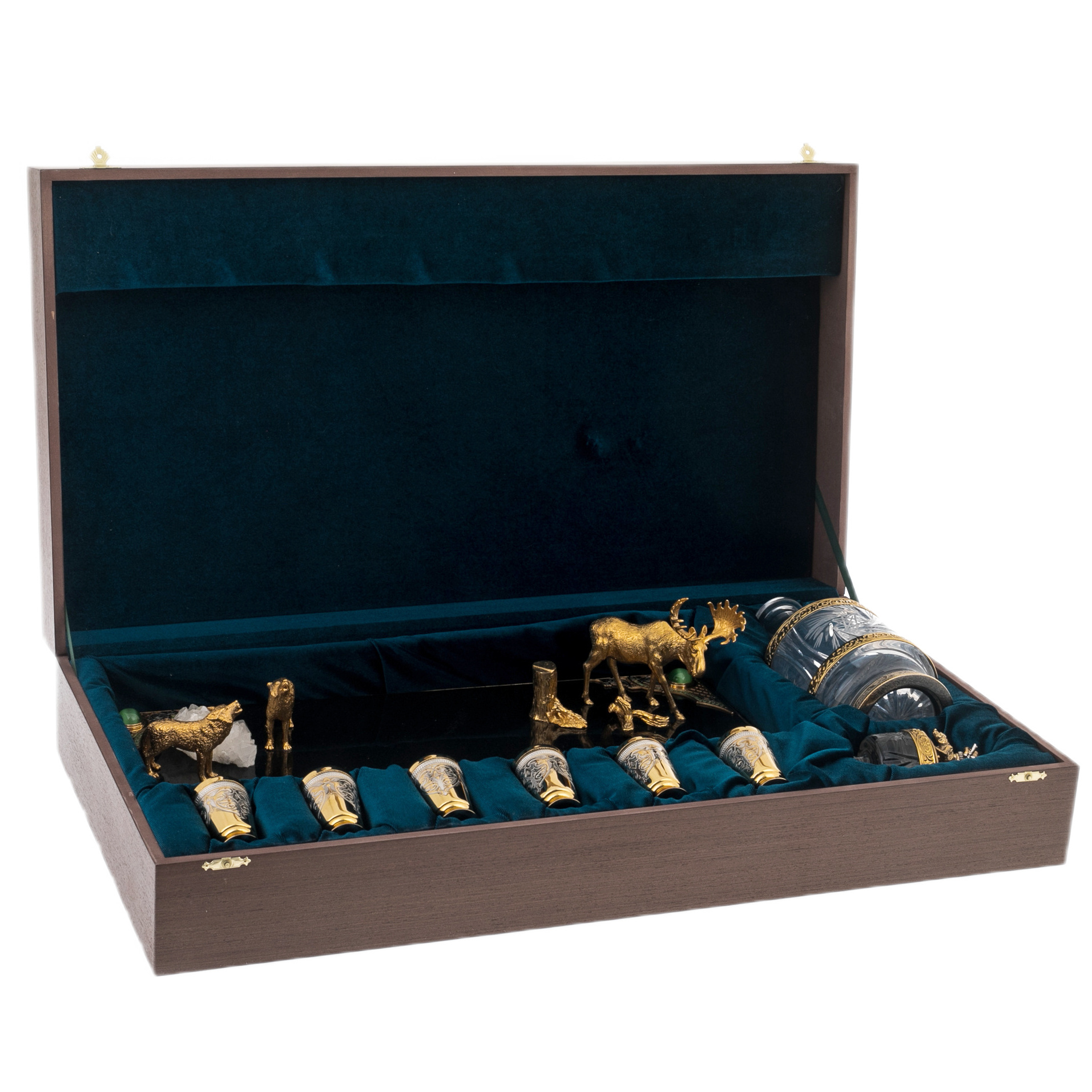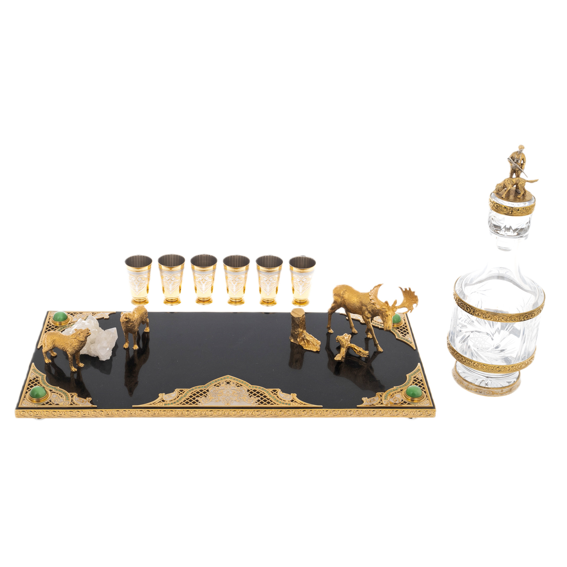 Набор для водки "Охота" на подставке из долерита, на 6 персон, Златоуст