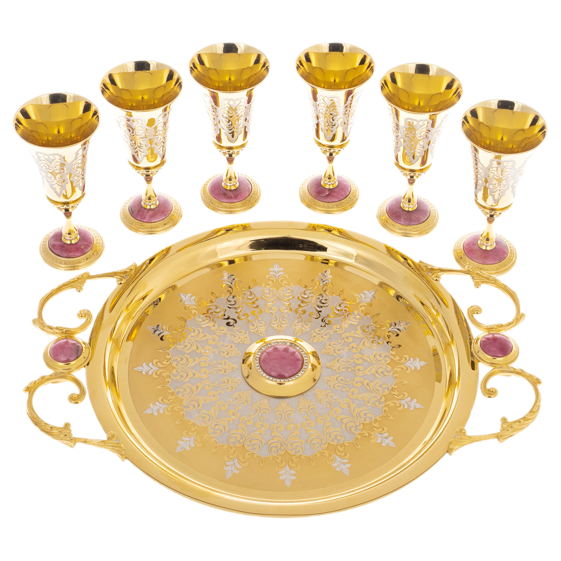 Набор для водки "Праздничный" с родонитом, на 6 персон, Златоуст