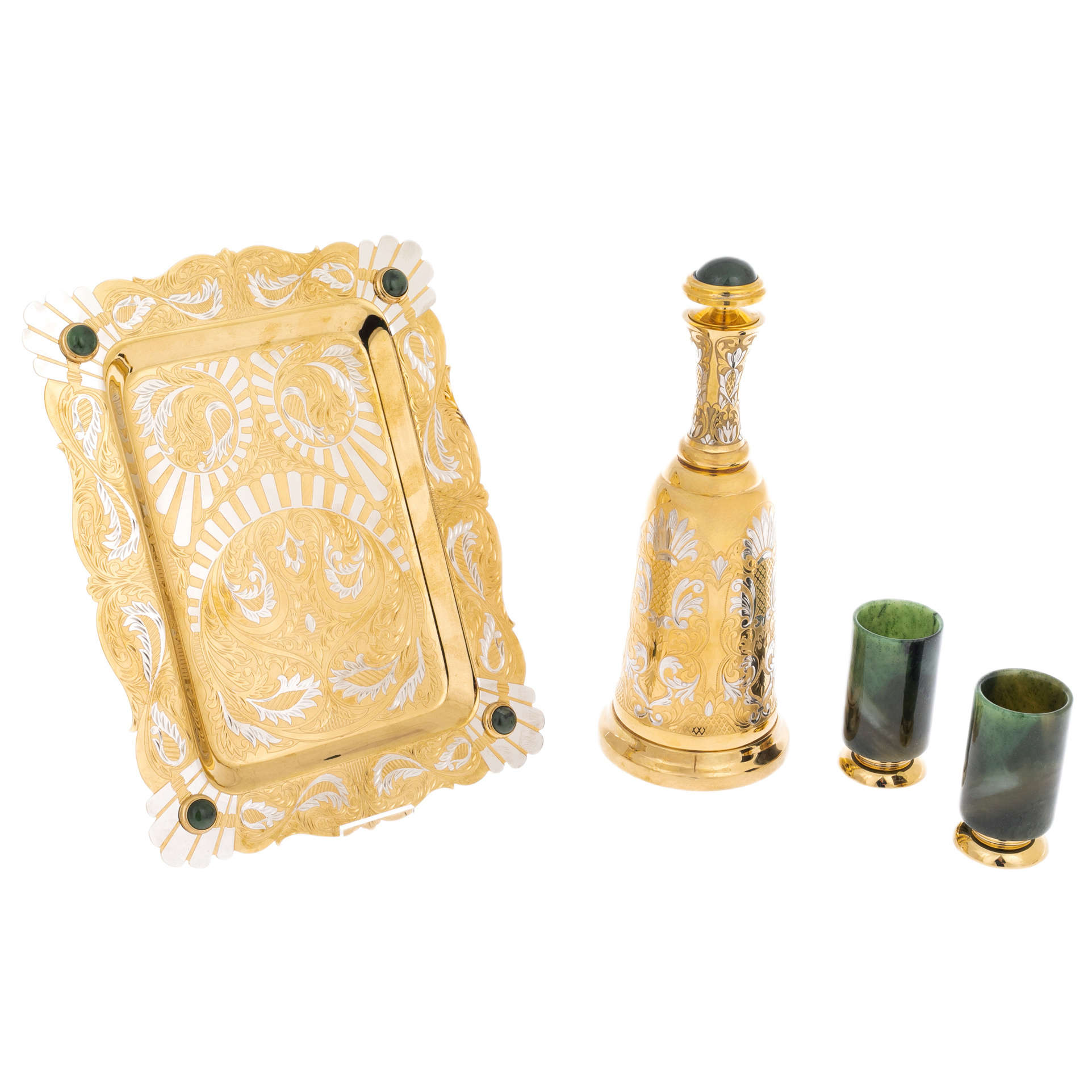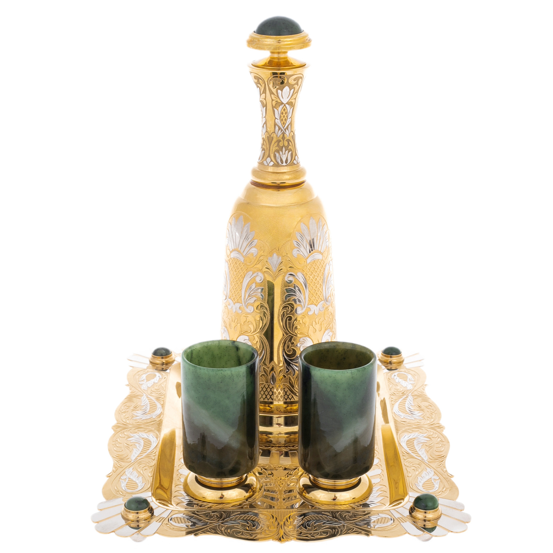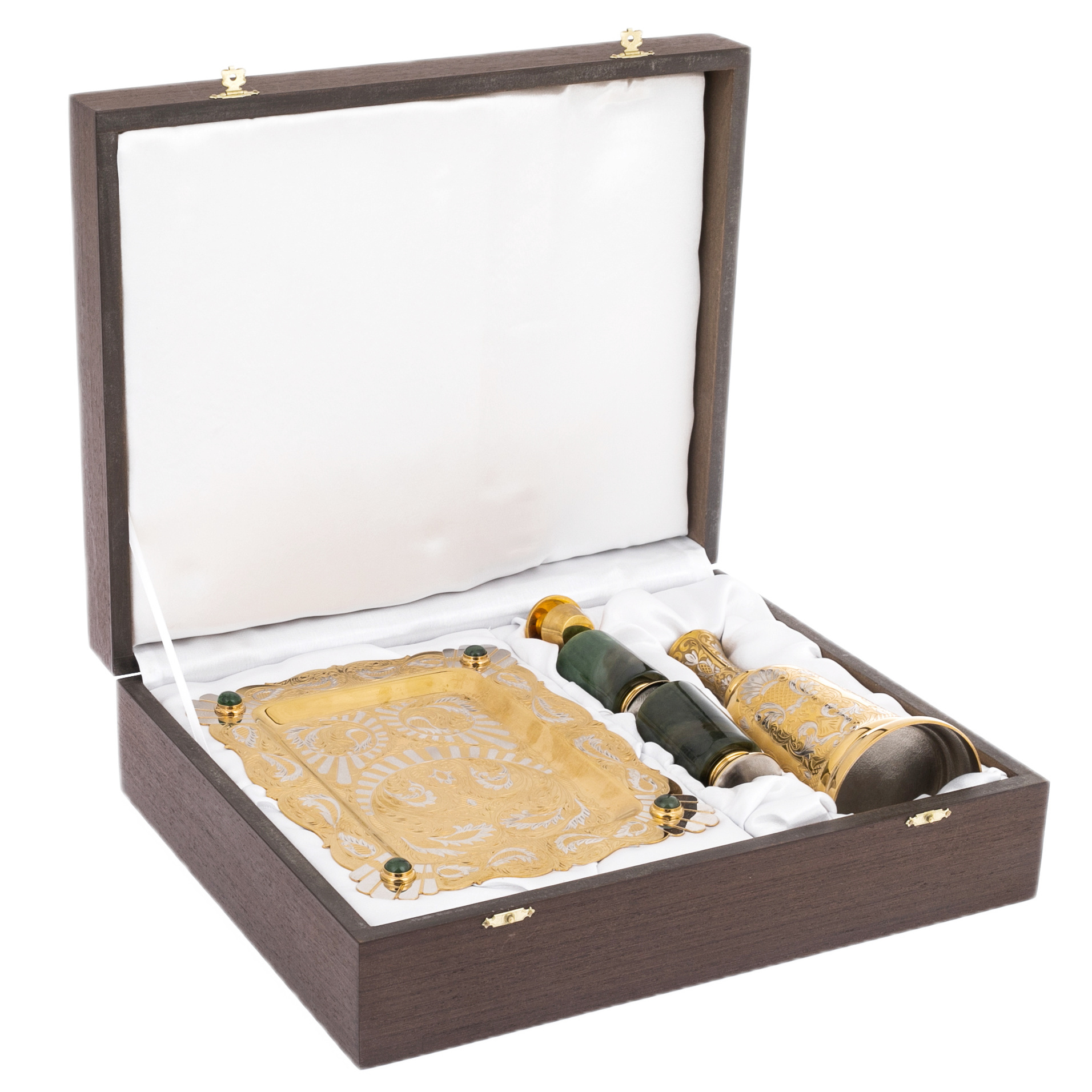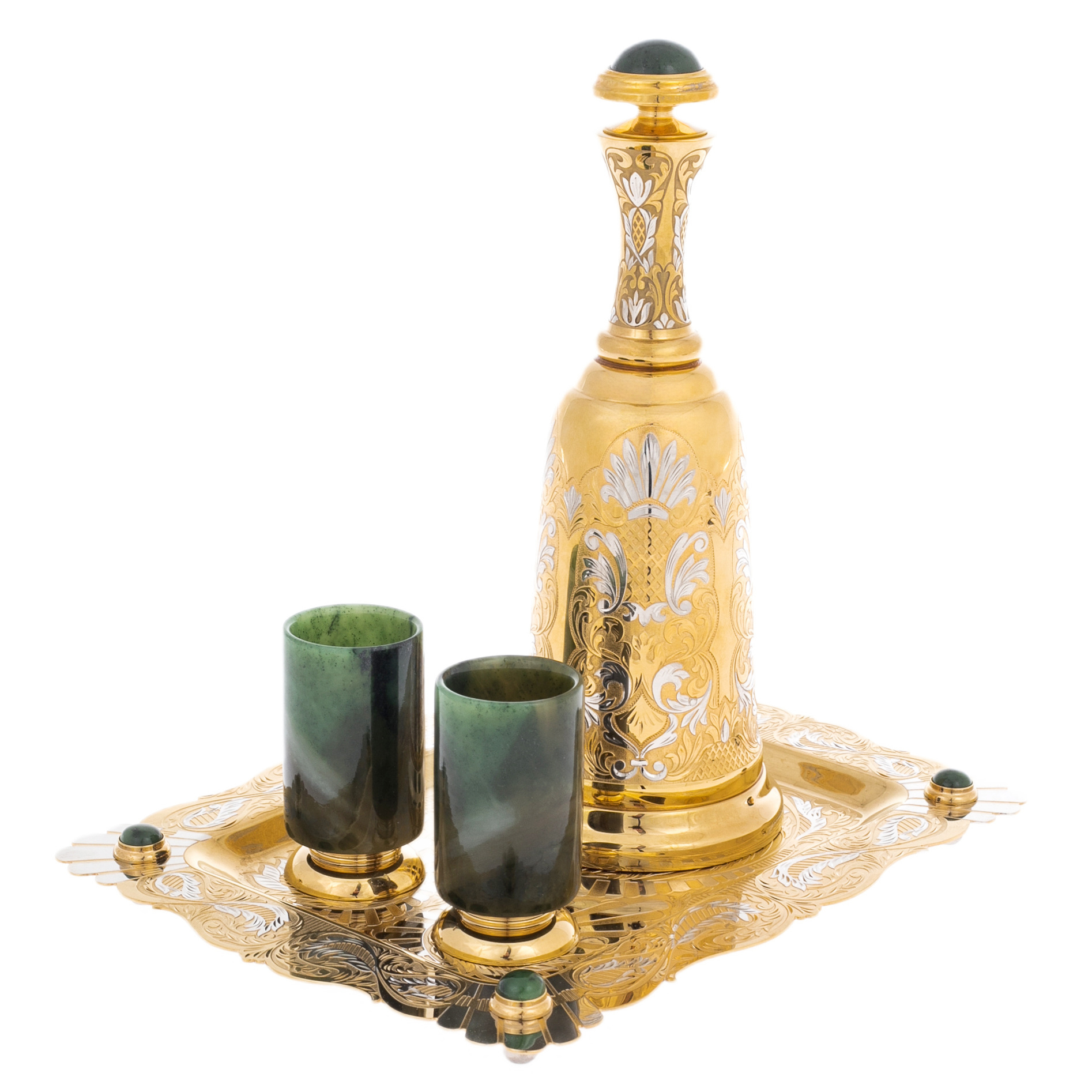 Набор для водки "Статус" с нефритом, на 2 персоны, Златоуст