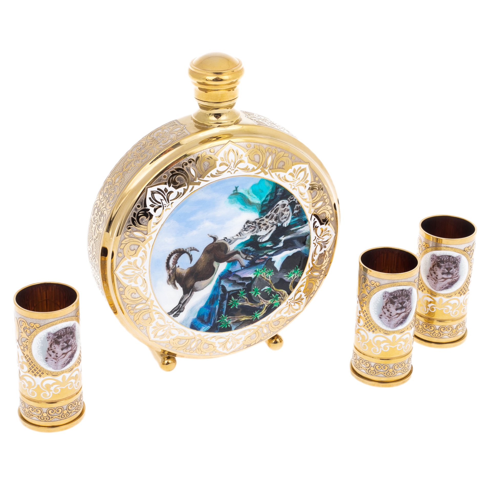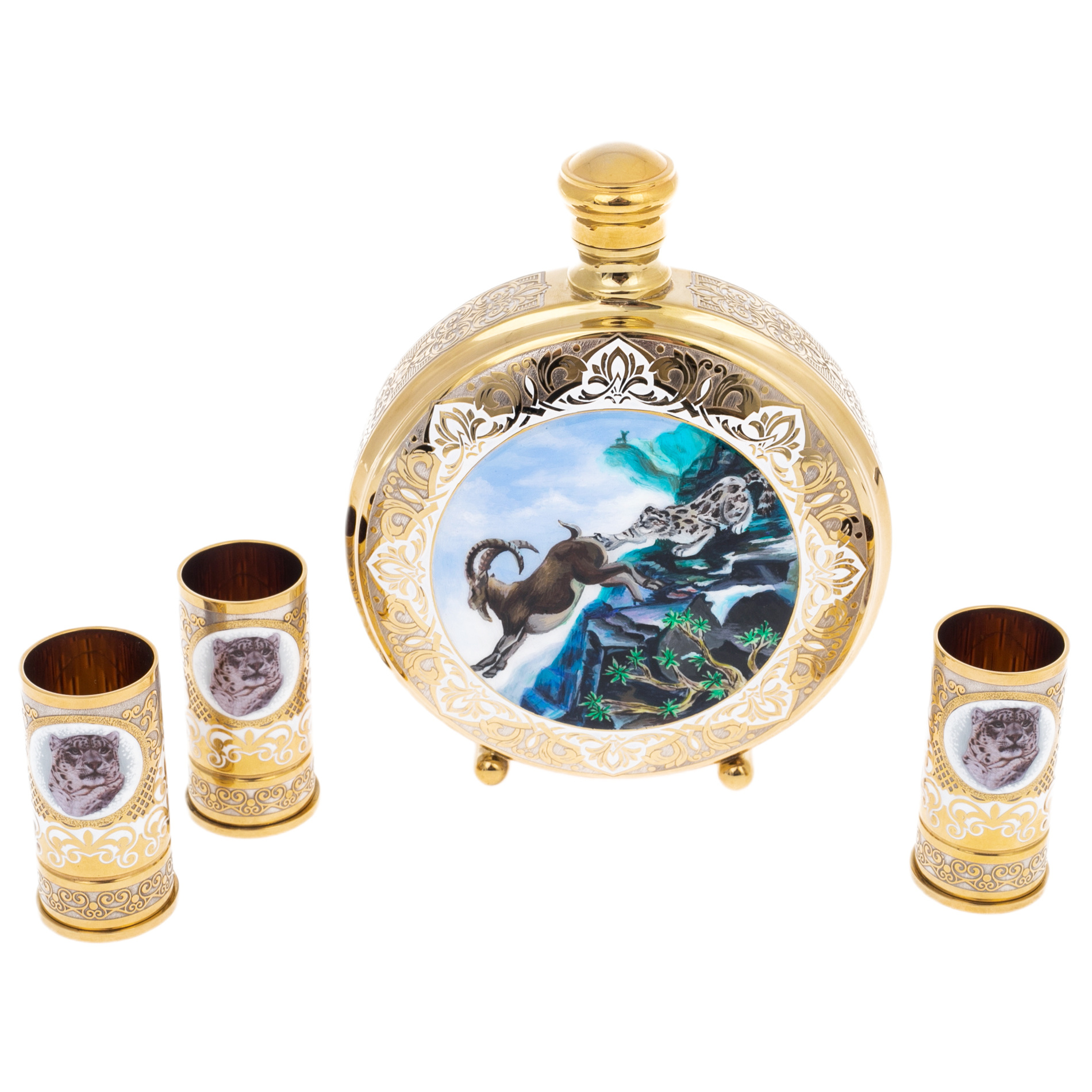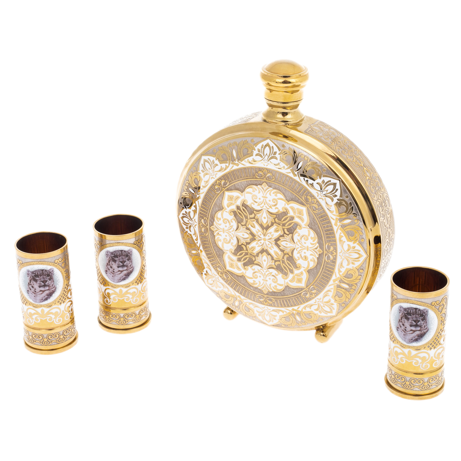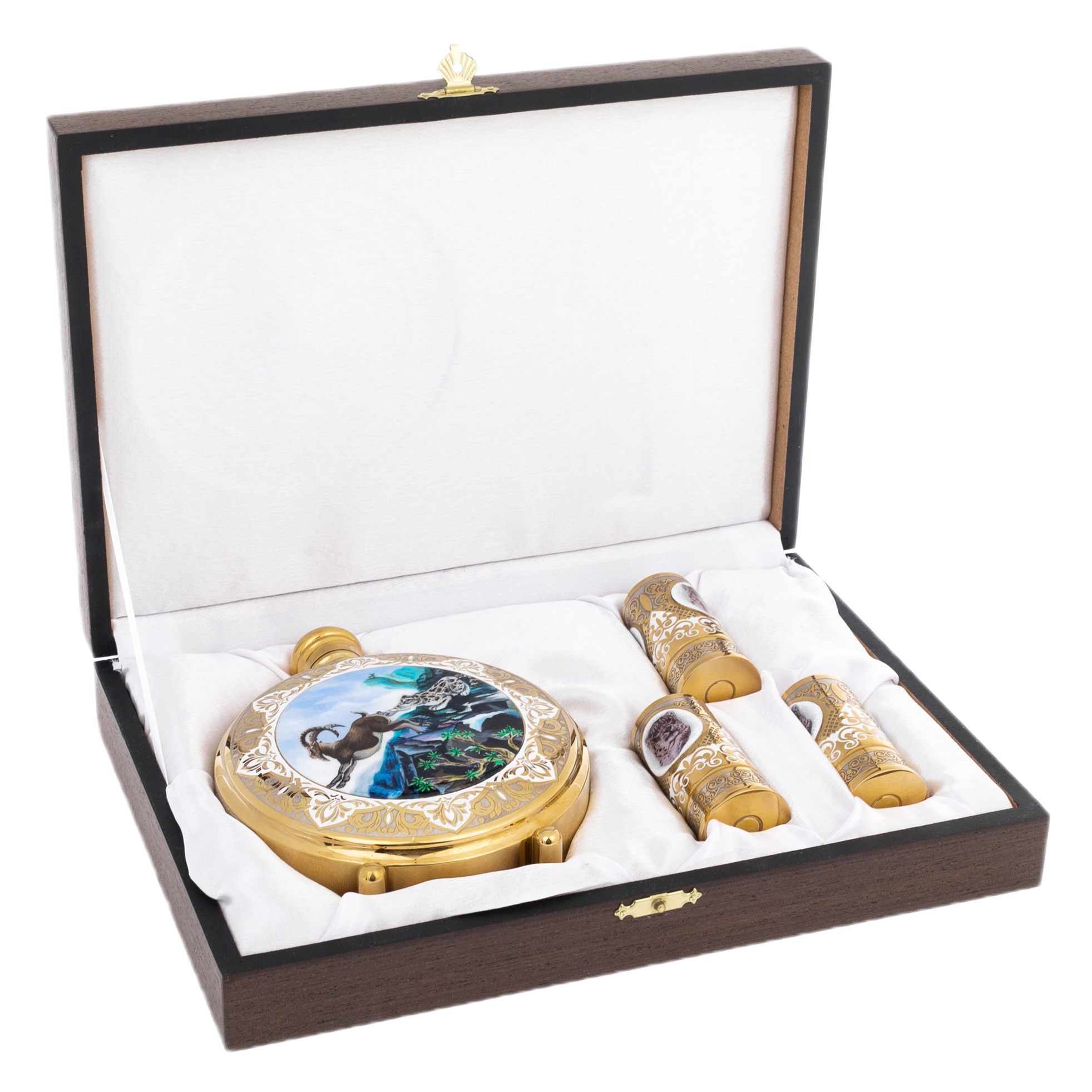 Набор охотника с флягой и тремя рюмками — это изысканный подарок для ценителей охотничьей тематики и традиционного русского мастерства. В комплект входит фляга и три рюмки, украшенные изящным художественным оформлением с изображениями диких животных, что подчёркивает дух охоты и единение с природой. Этот набор станет не только практичным аксессуаром, но и эффектным элементом коллекции элитной посуды.