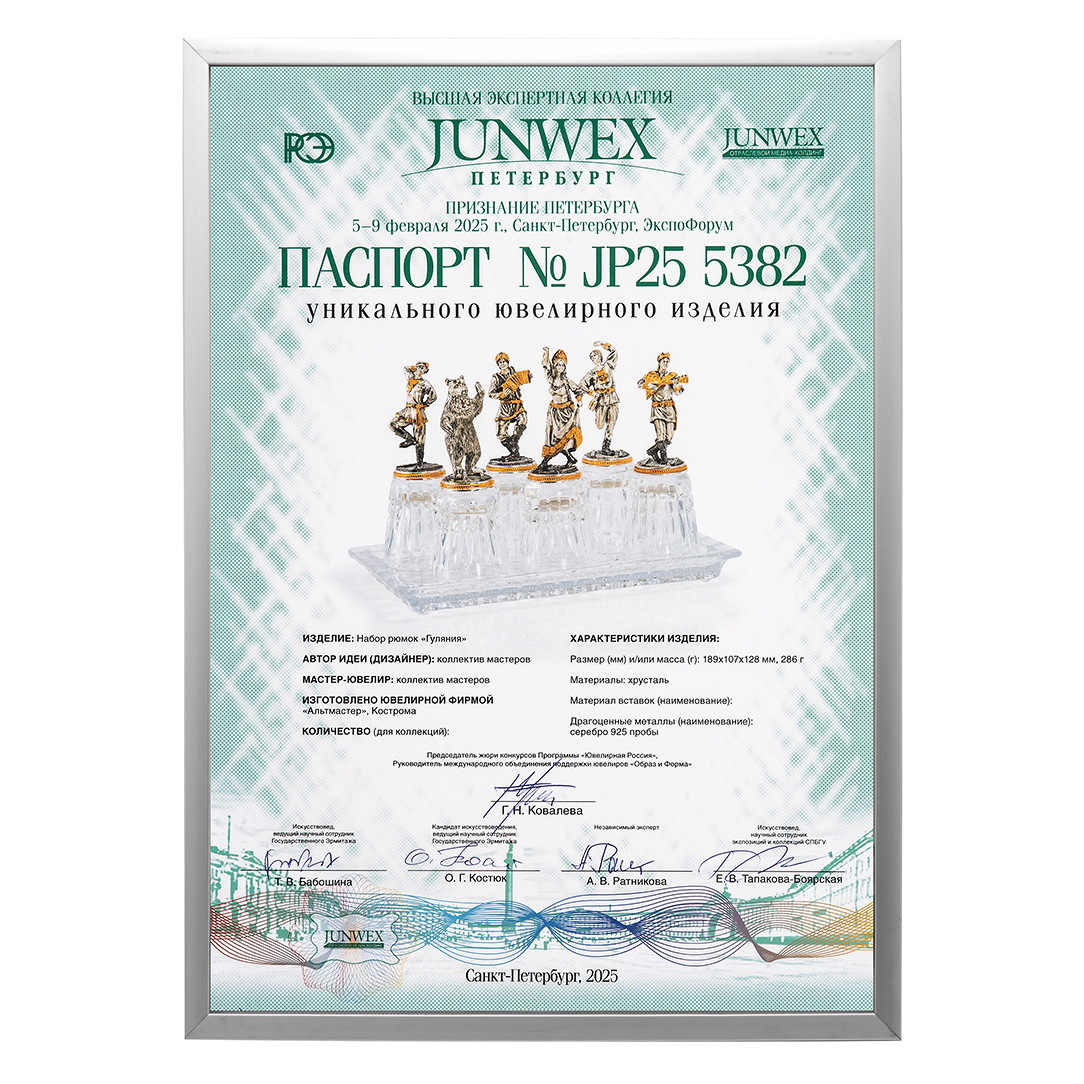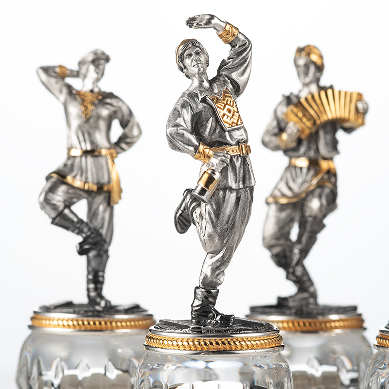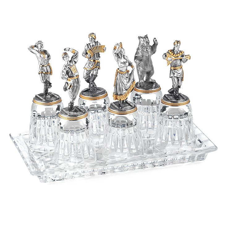 Набор рюмок для водки из хрусталя "Гуляния" с серебром, на 6 персон
