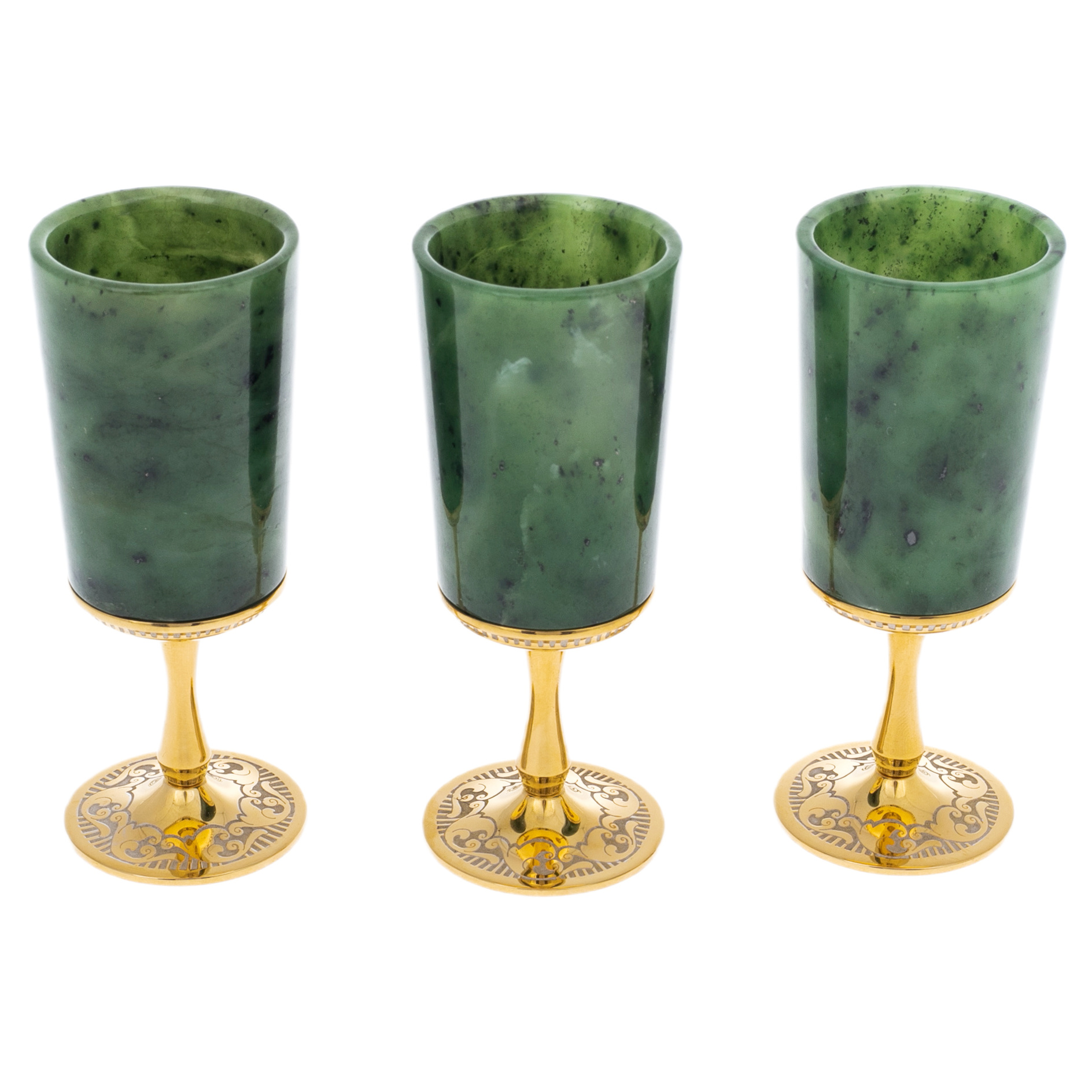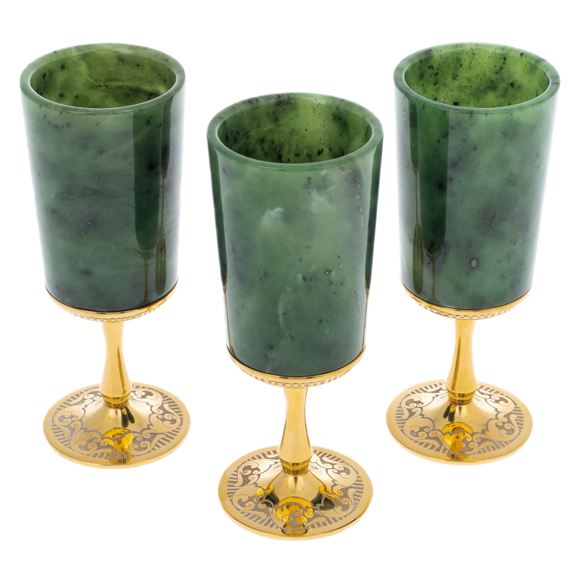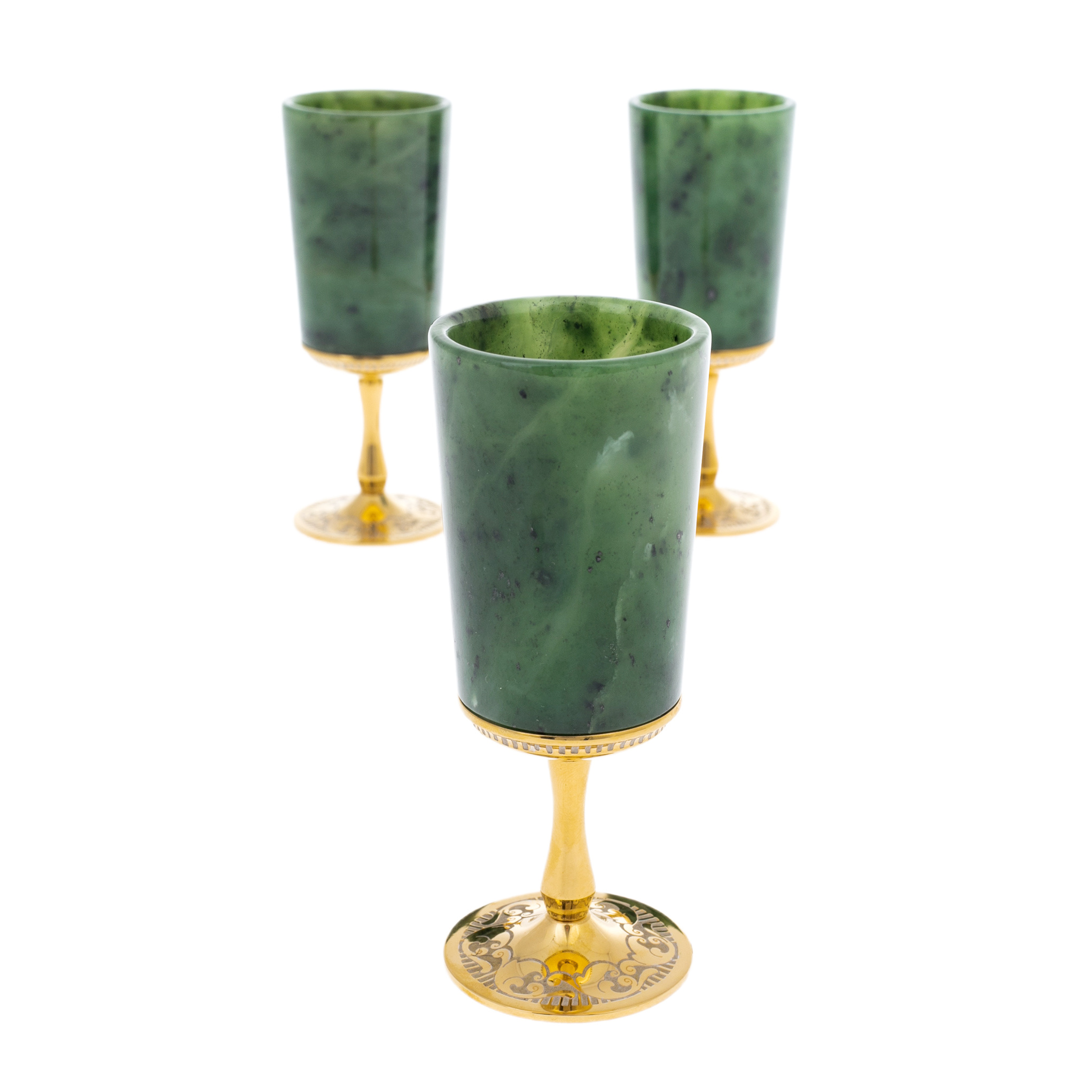Набор рюмок из нефрита "Гармония" на 3 персоны, Златоуст