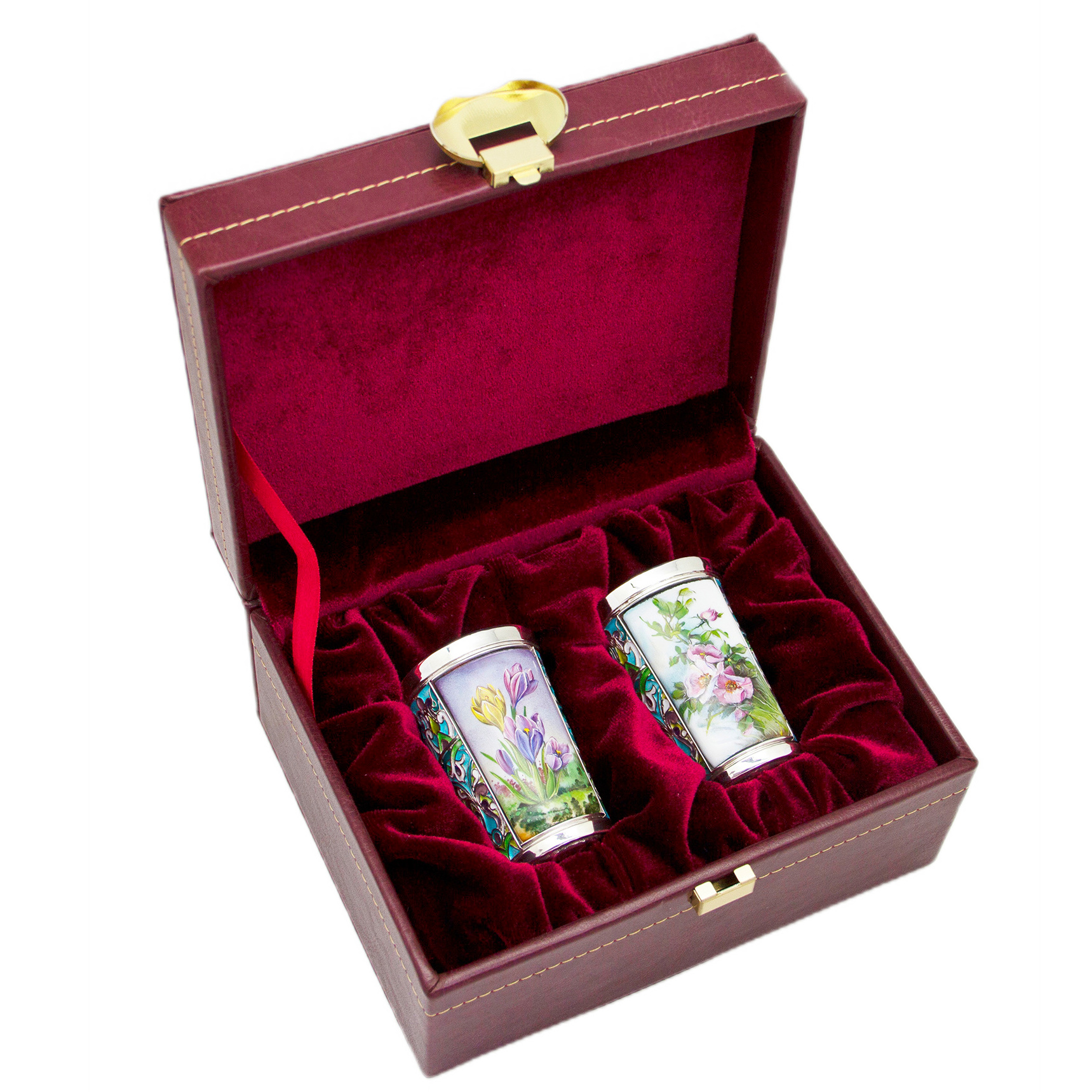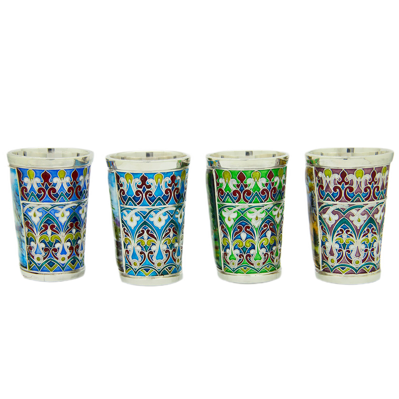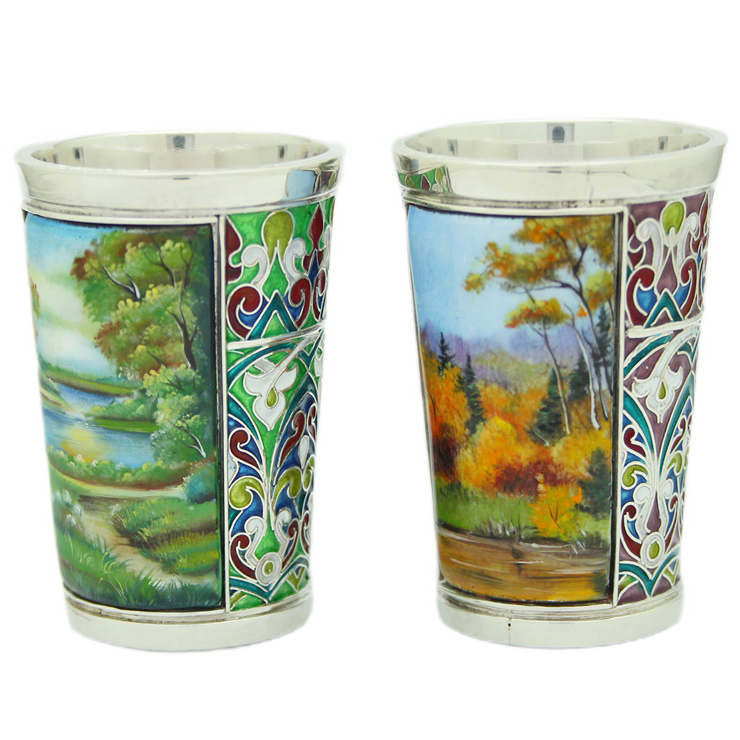 Набор стопок из серебра "Времена года" на 4 персоны, финифть