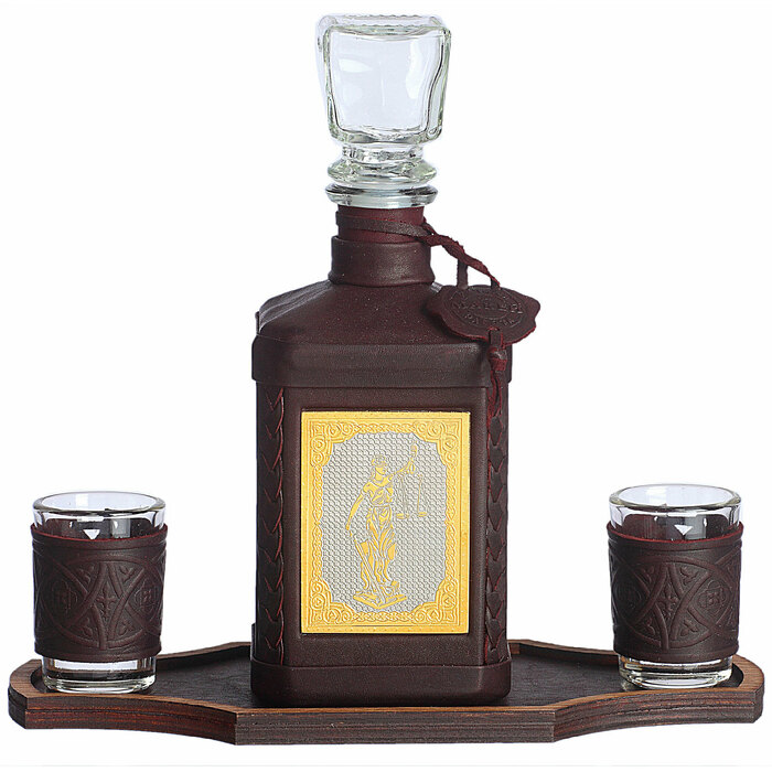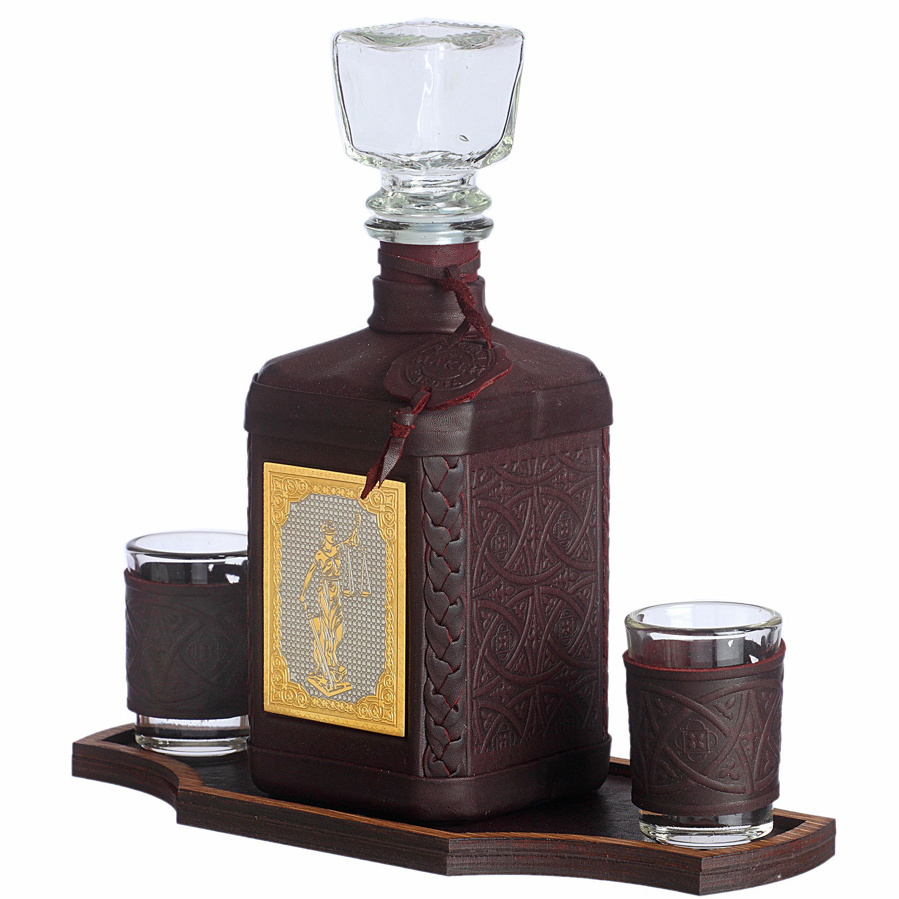 Графин в кожаном переплете "Фемида-3" с накладкой
