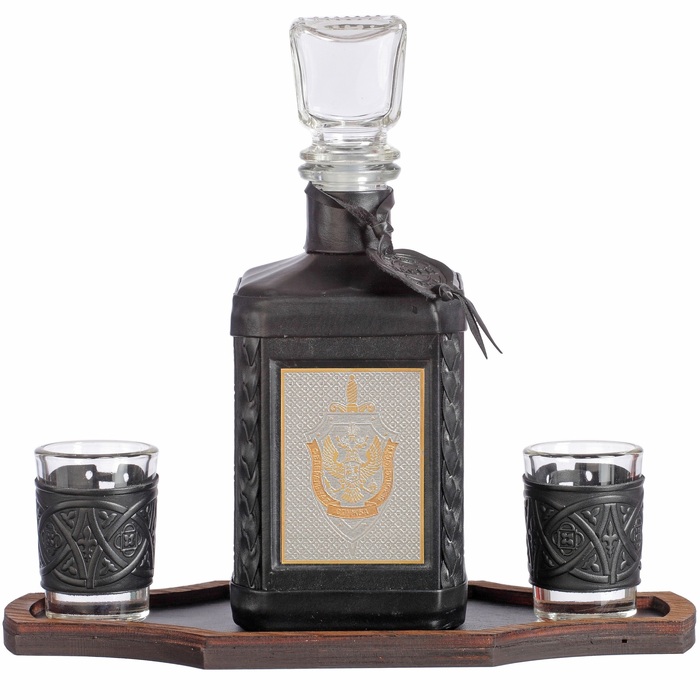 Графин в кожаном переплете "ФСБ-4" с накладкой