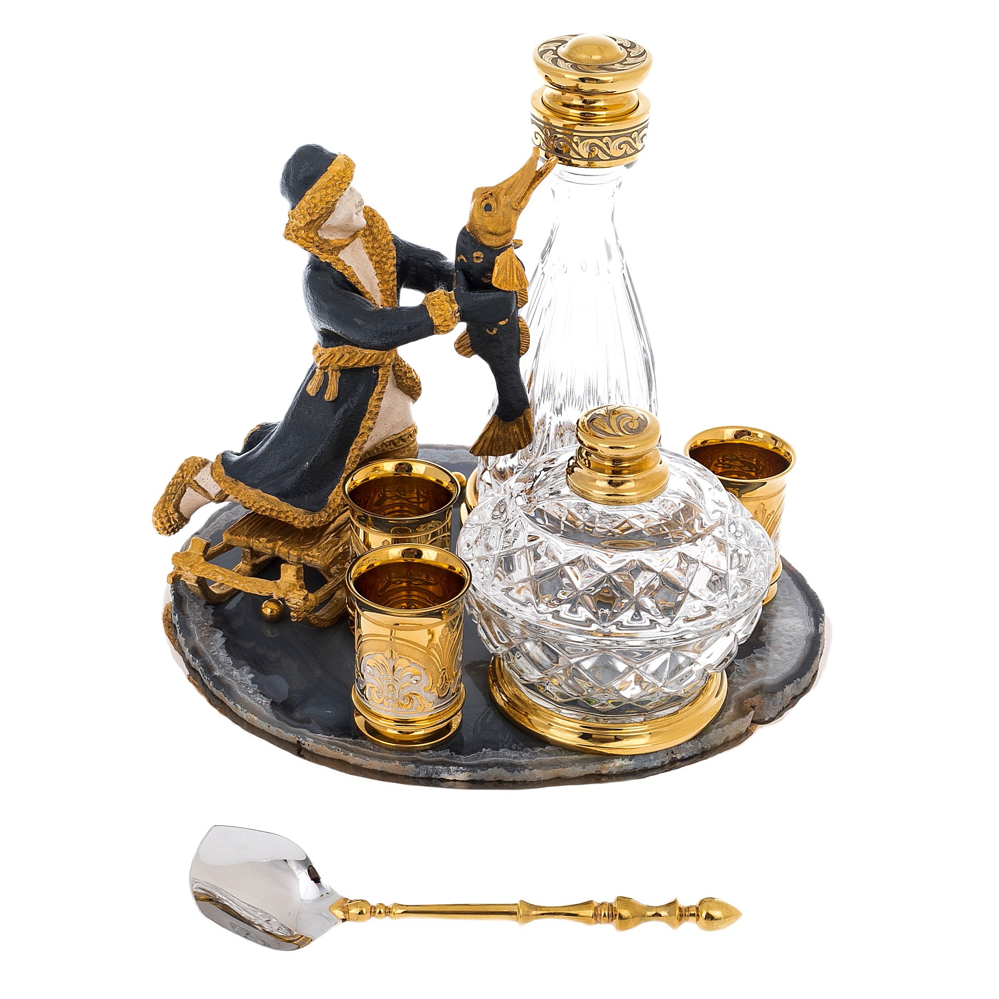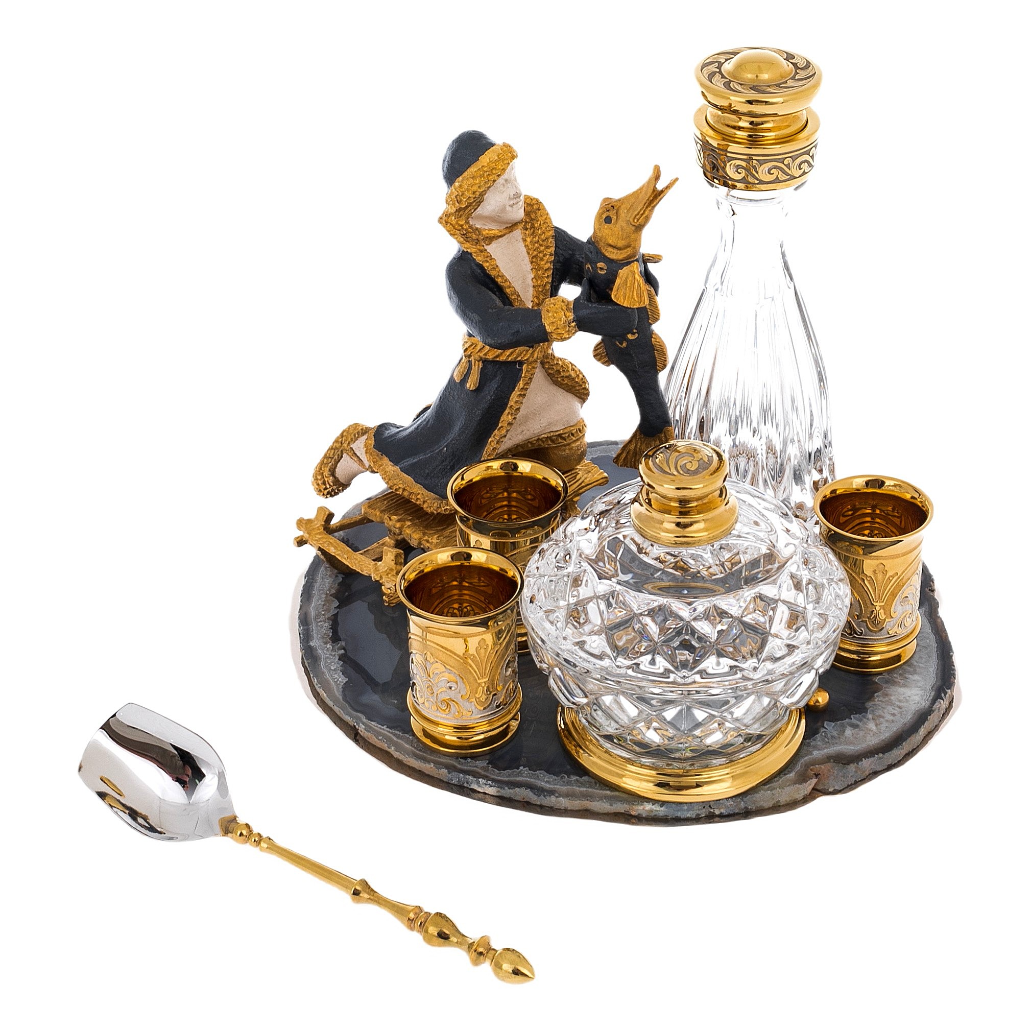 Набор для водки "Емеля" с агатом, на 3 персоны, Златоуст