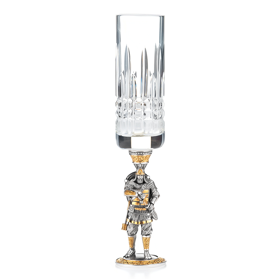 Высокая, хрустальная, подарочная рюмка объемом 50 мл. выполнена на массивной серебряной ножке полностью вручную. Девиз подарка — «Дружить всегда, дружить везде и не бросать друзей в беде». Фирменная коробка в комплекте.