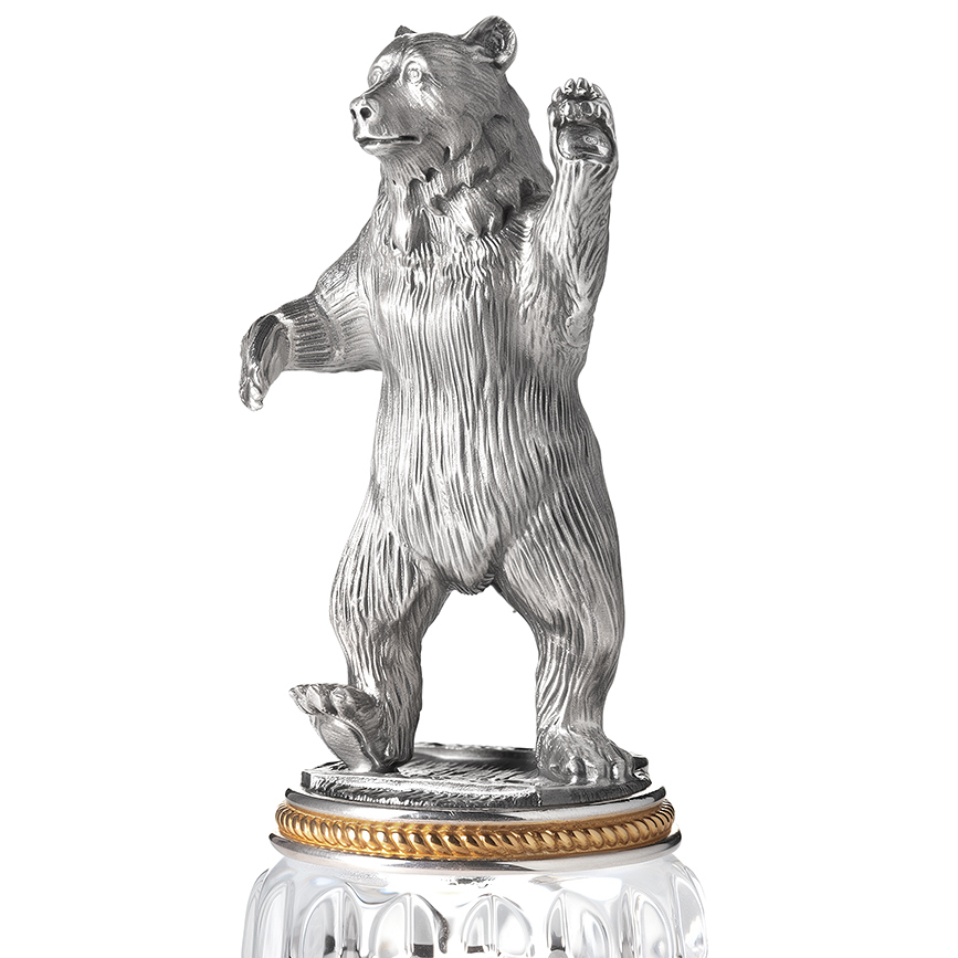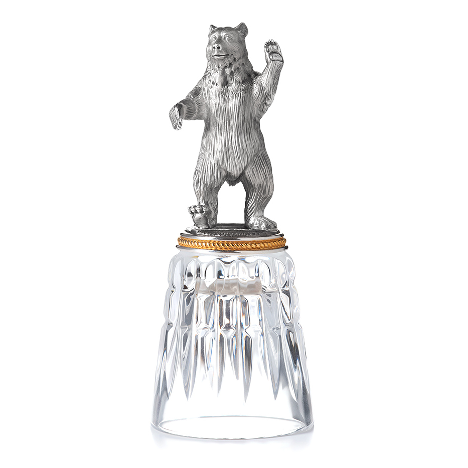 Рюмка-перевертыш из серебра и хрусталя "Медведь" на 1 персону