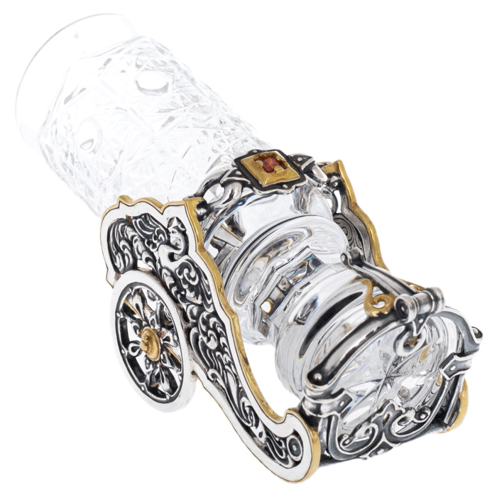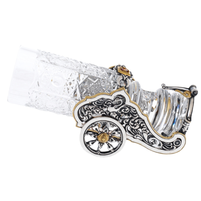 Еще с петровских времен сохранилась в наших местах традиция подносить гостю приветственную чарку. Для этого прекрасно могут подойти рюмки «Пушки», где сами хрустальные рюмки изящно вставлены в серебряные оправы.