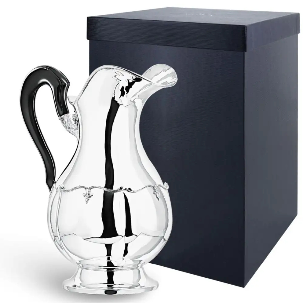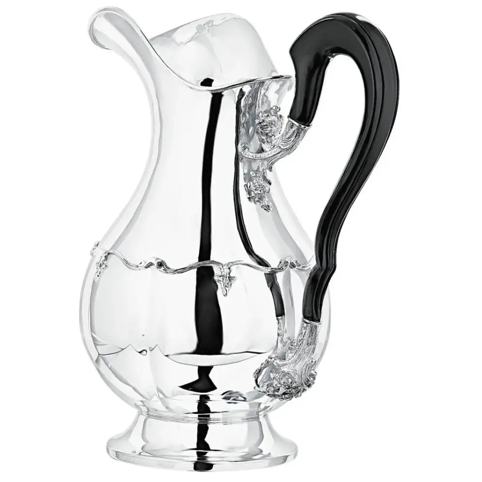 Кувшин серебряный с цветочным орнаментом и деревянной ручкой в футляре