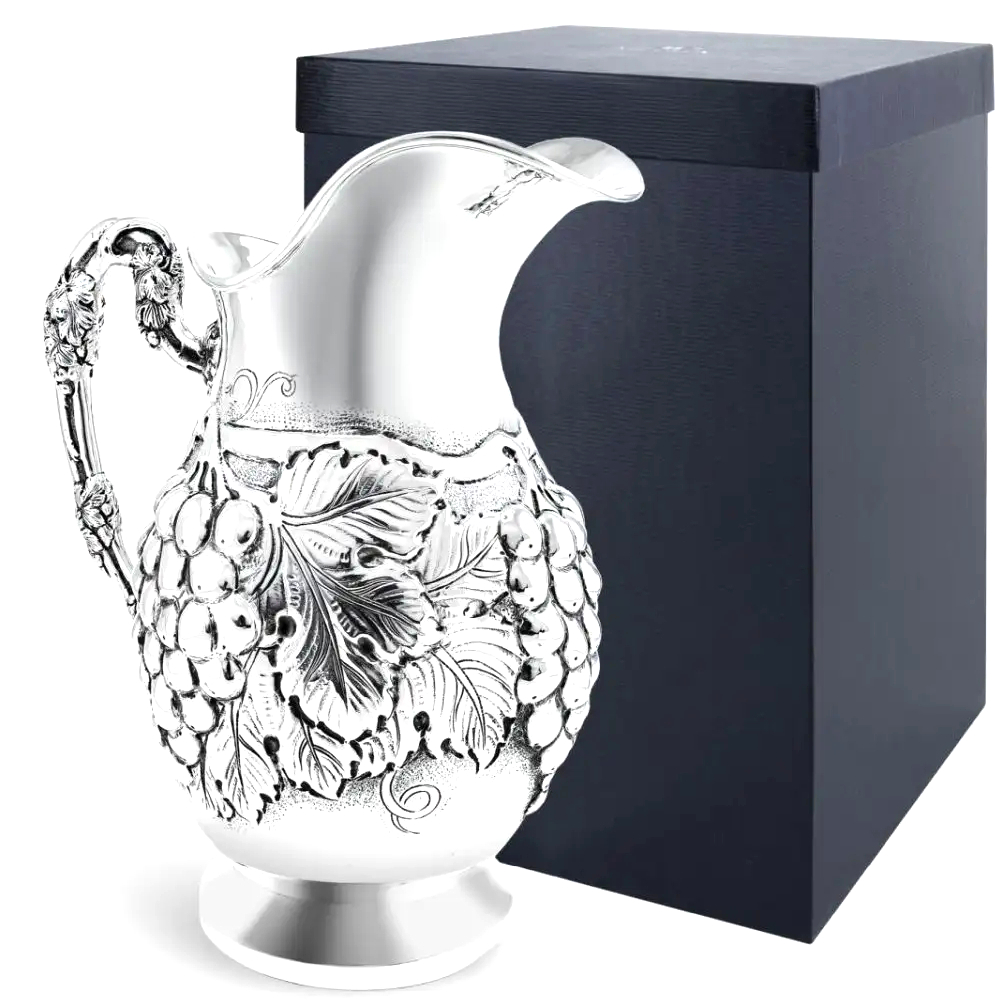 Северная черньКувшин для воды "Виноград"Кувшин для воды "Виноград"Кувшин из серебра 925 пробы изготовлен мастерами великоустюгского завода «Северная чернь». Сплавы, содержащиеся в пробе, придают изделиям прочность и защиту от механических повреждений.