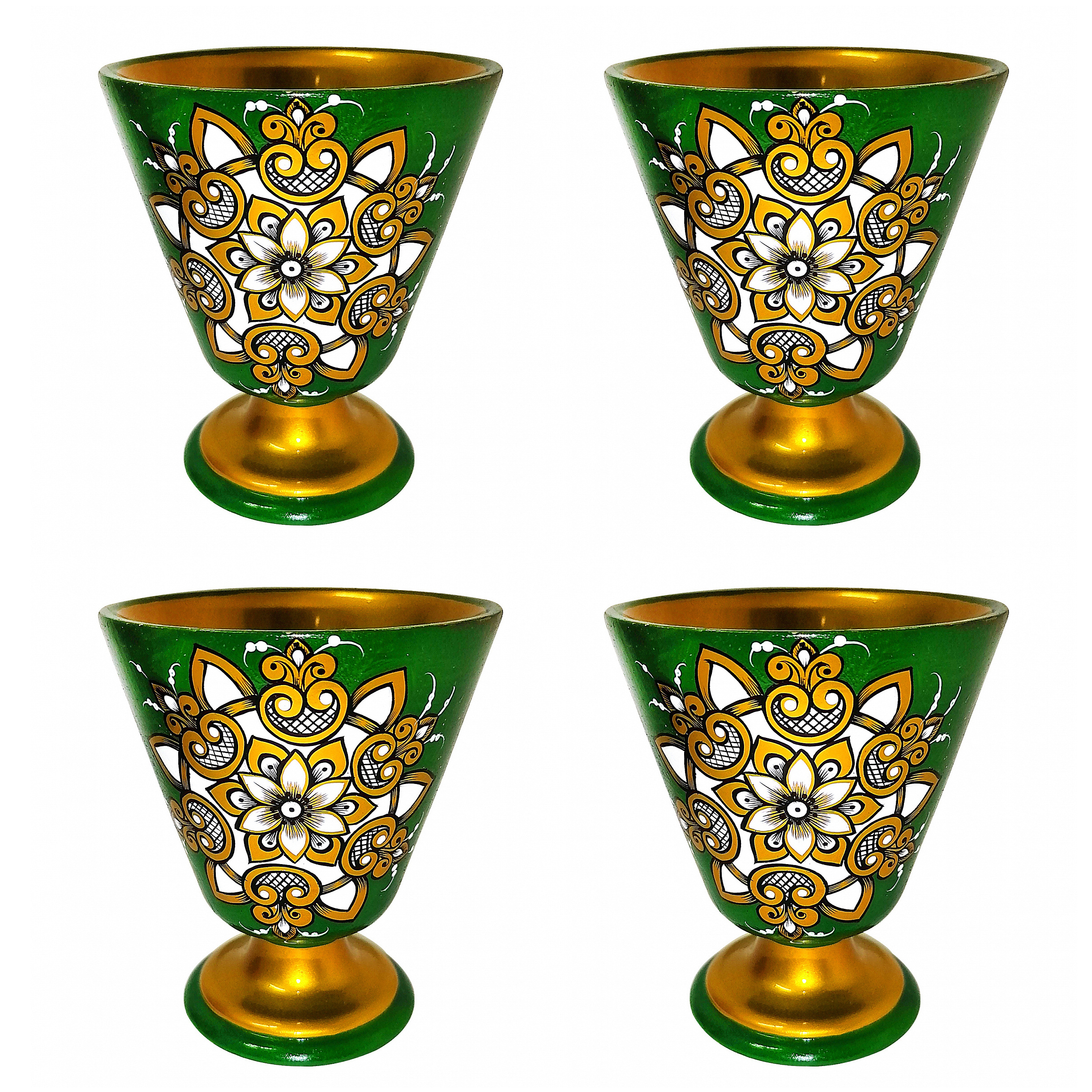 Набор бокалов из липы "Снежинки" на 4 персоны, хохлома