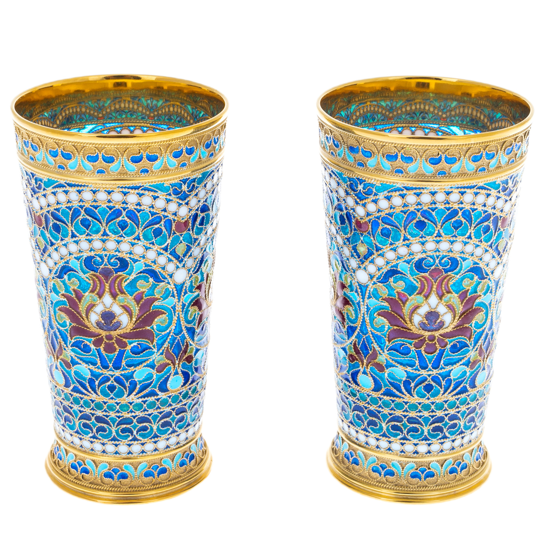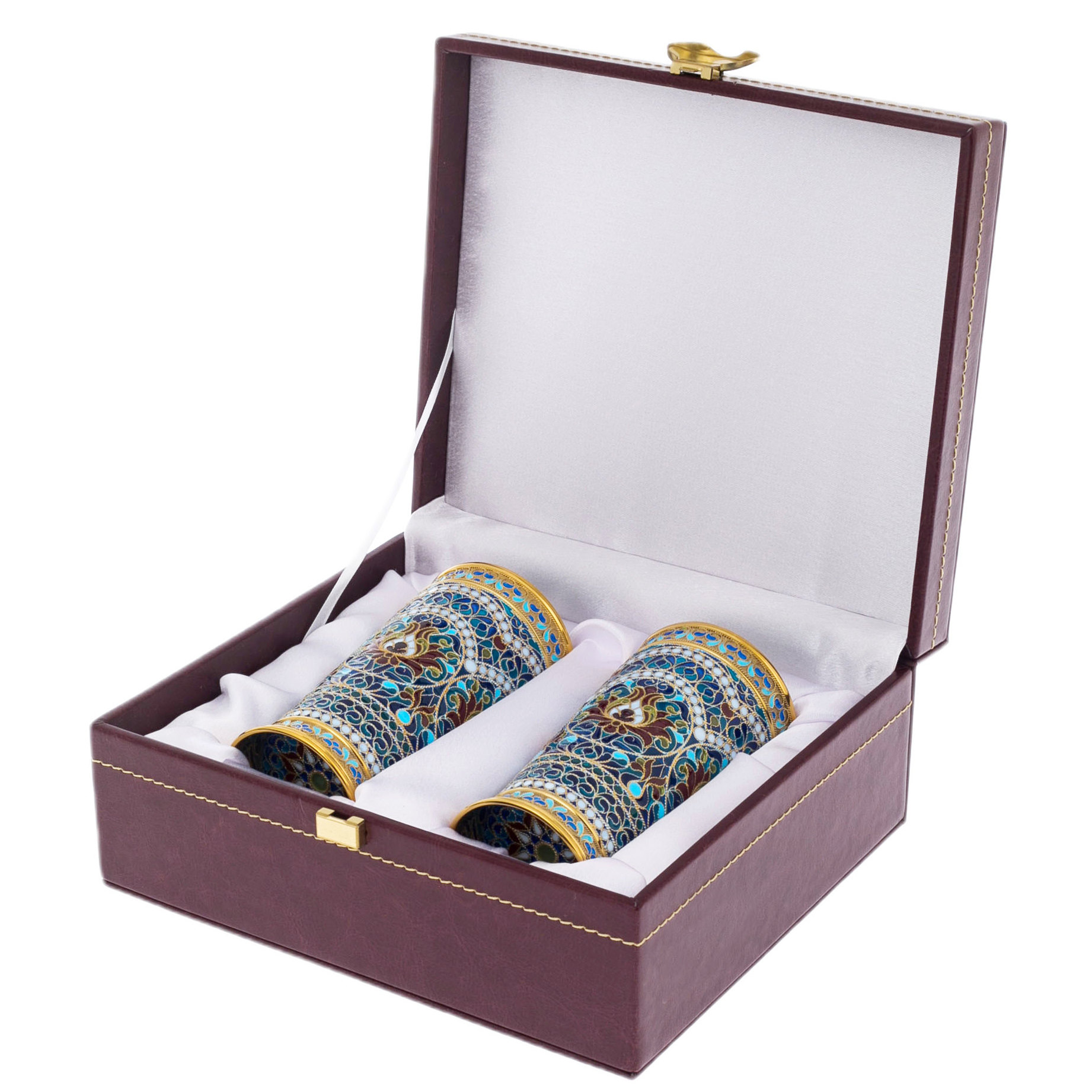 Набор стаканов "Букет" с витражными эмалями, на 2 персоны