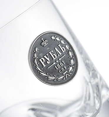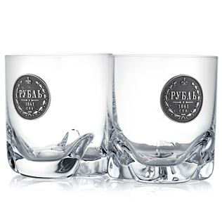 Набор стаканов "Рубли" с серебряной плакеткой, на 2 персоны