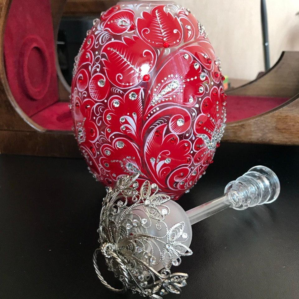 Каждое изделие сугубо ручной работы и подкреплено паспортом с указанием применяемых технологий и информации о мастере, изготовившем его. Мы соединили несколько традиционных техник производства: филигрань, финифть, ручная художественная роспись, стекловыдув, стразирование, гравировку.