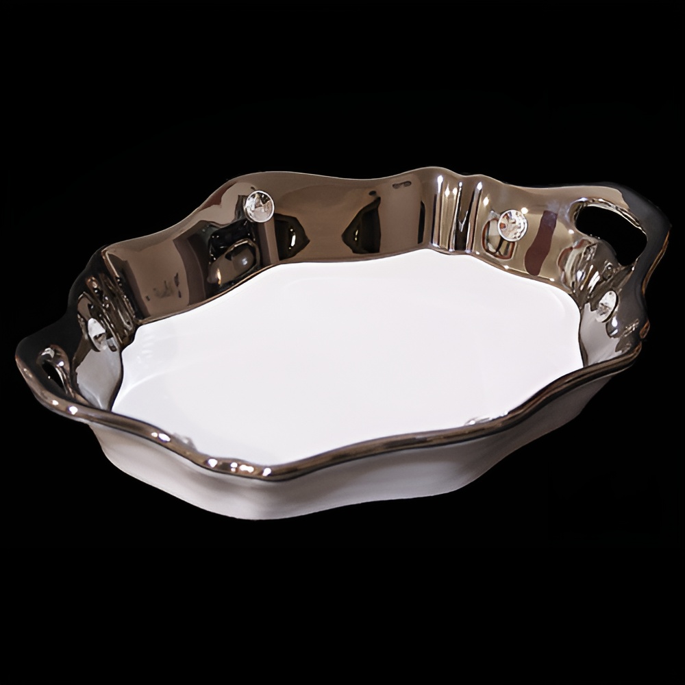 Блюдо из янтаря "Восточная сказка" Блюдо из янтаря "Восточная сказка" Янтарь – волшебный камень, сочетающий в себе целебные и магические свойства, роскошь и тепло. Большинство знаменитых личностей окружали себя янтарем: янтарная комната Петра 1 и корона египетского фараона Тутанхамона - это лишь начало списка. Посуда из янтаря является неизменным атрибутом сервировки стола на аристократических обедах и приемах. Изящные изделия вписываются в любой интерьер. Сочетание янтаря с серебром или бронзой выгодно подчеркивает красоту камня и благородный блеск драгоценных металлов.