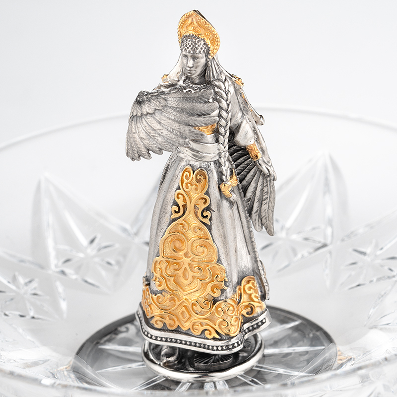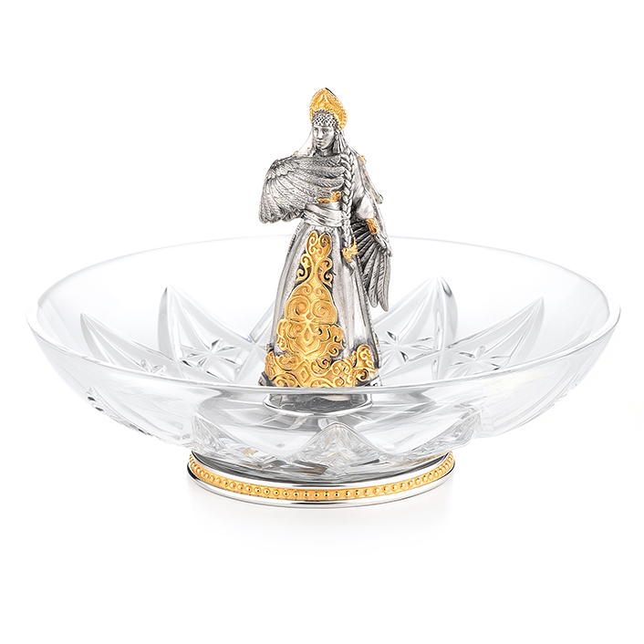 Хрустальная тарелочка "Царевна-Лебедь" с серебром