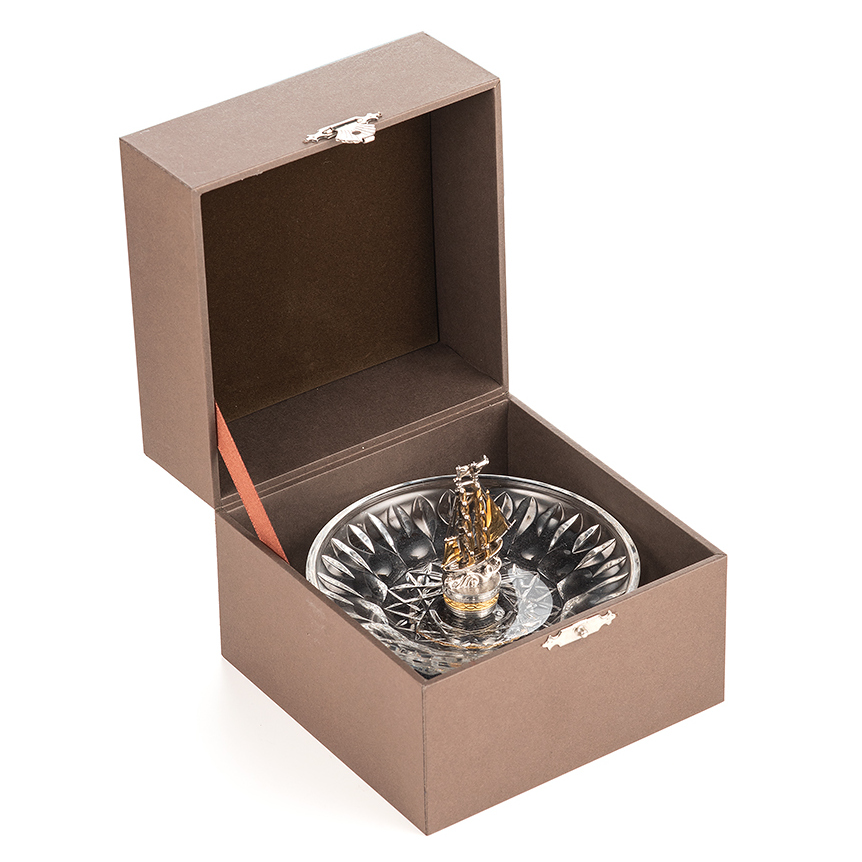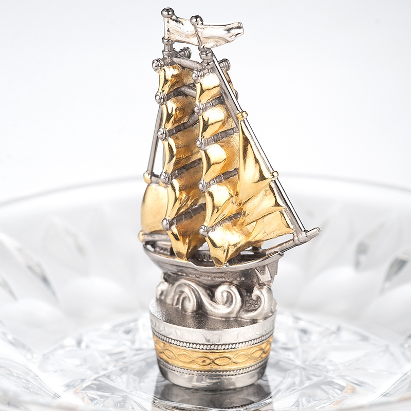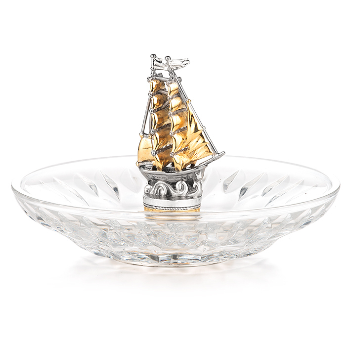 Хрустальная тарелочка "Парусник" с серебром