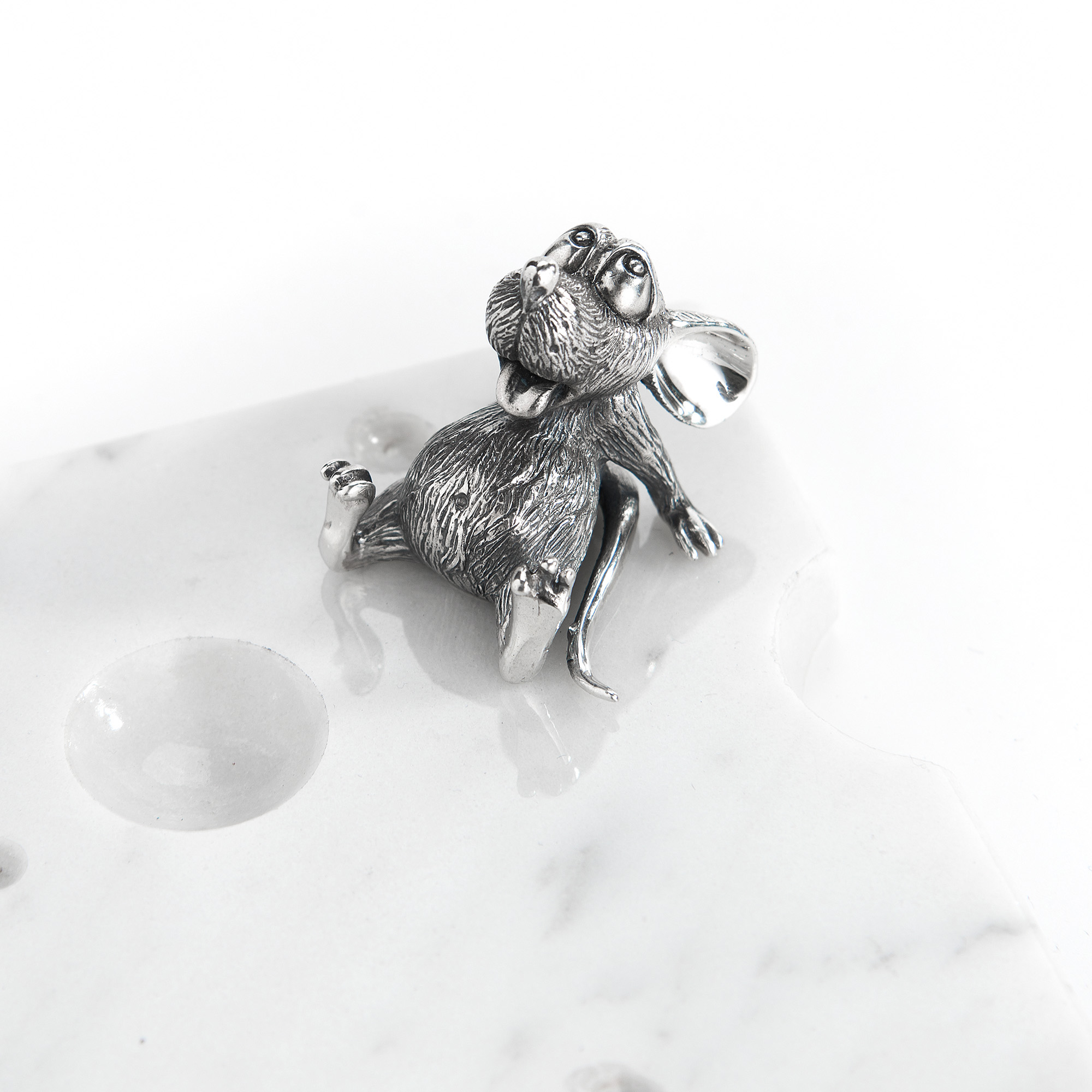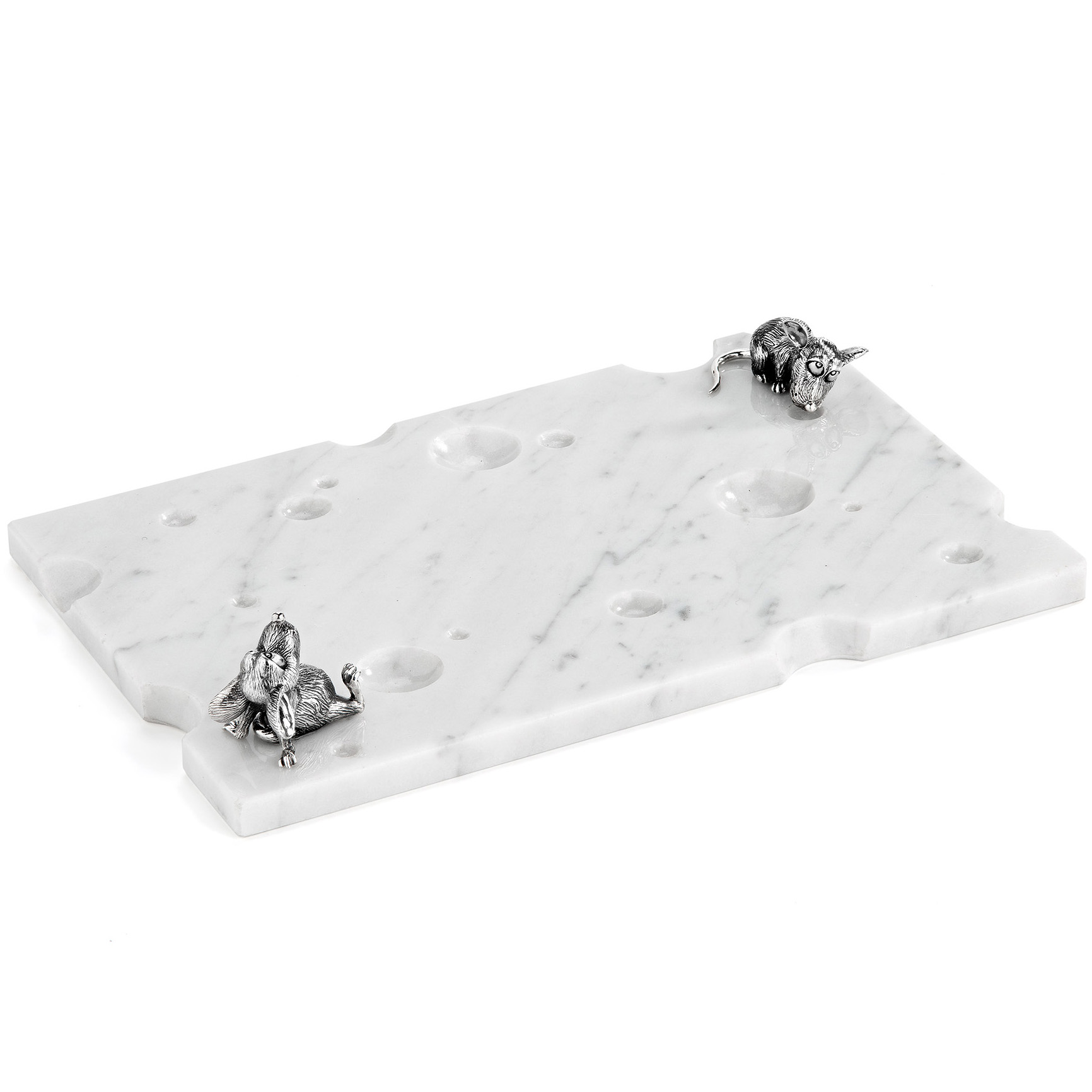 Доска для сыра "Мышиный пир" из мрамора, с серебром