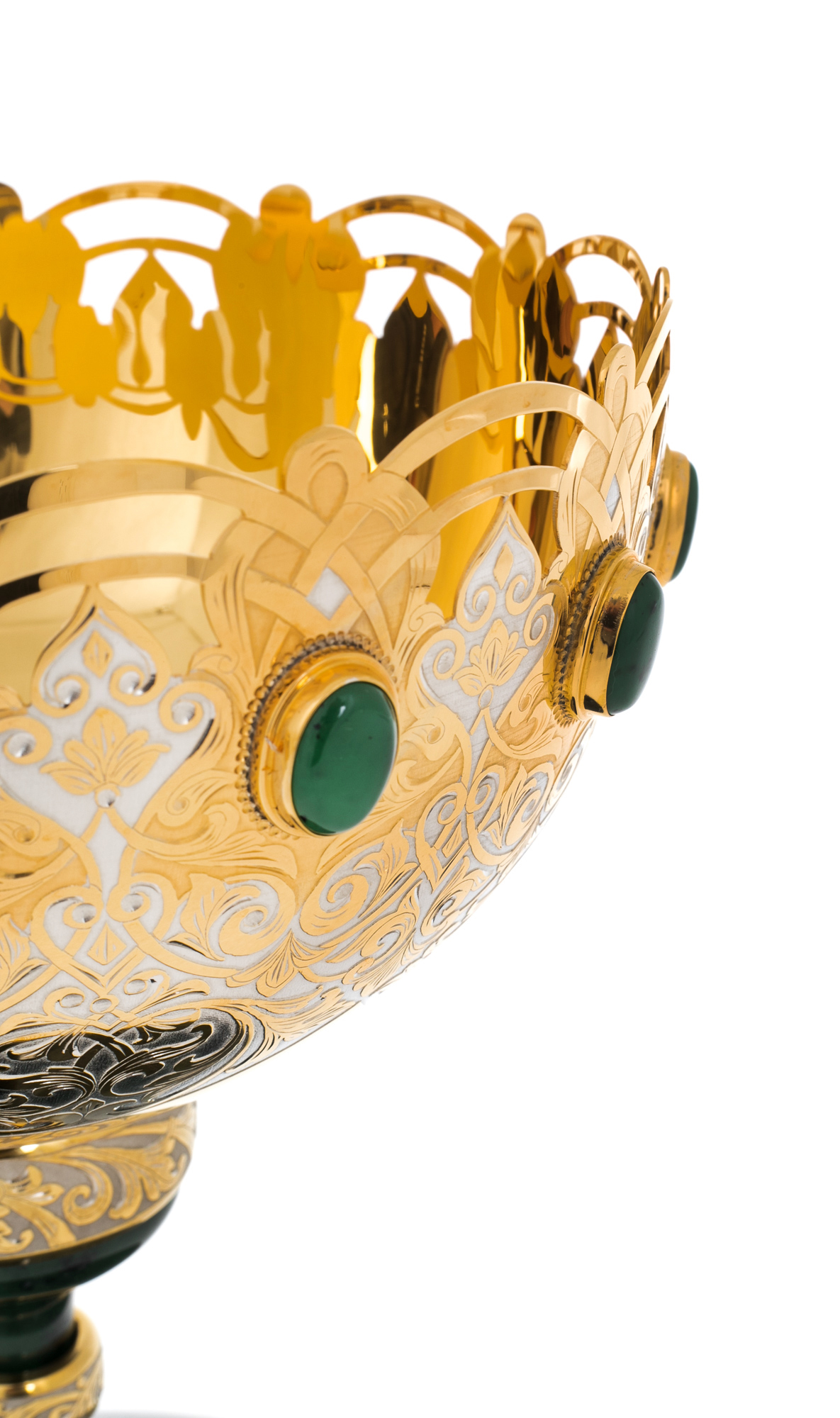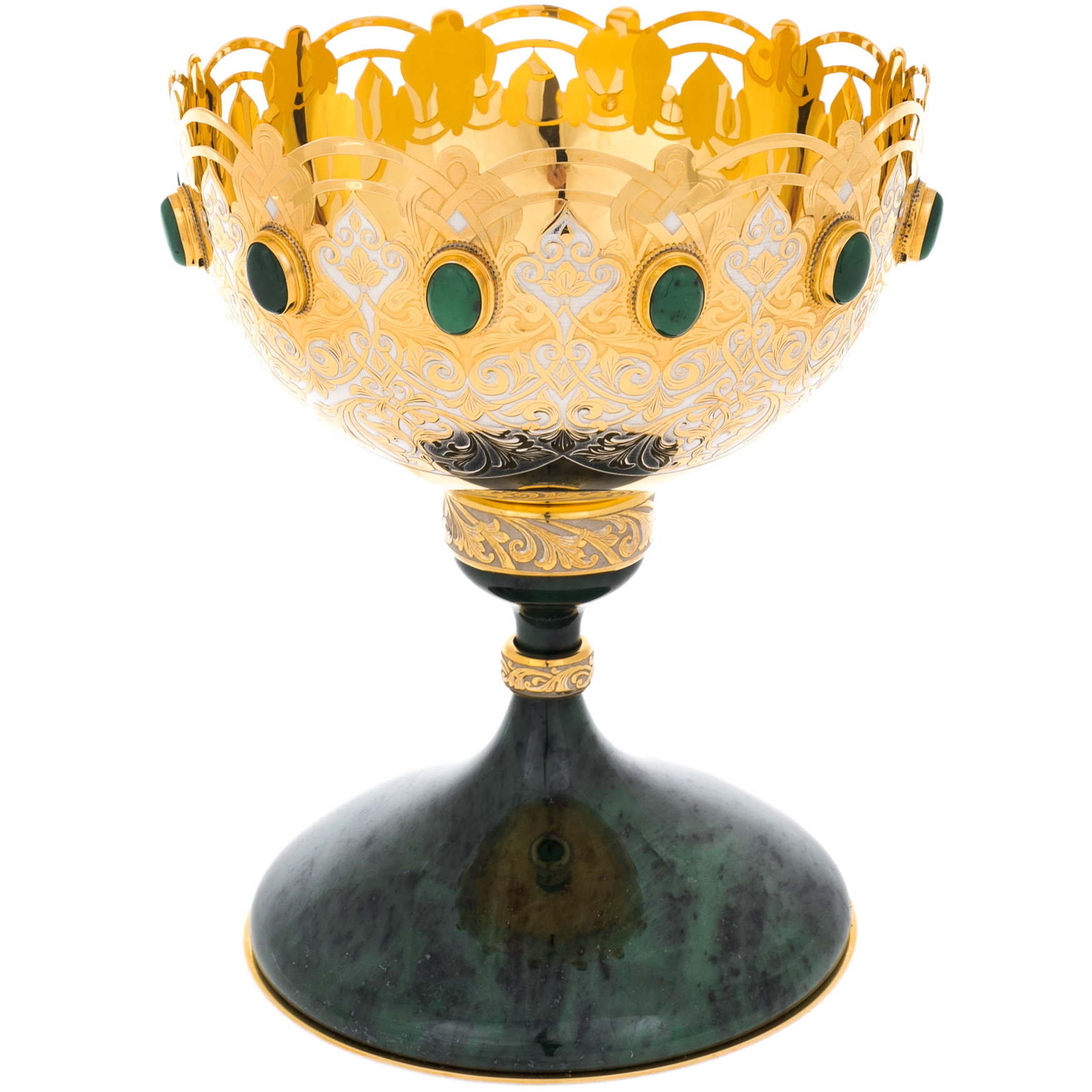 Ваза для фруктов и конфет "Изыск" на ножке из нефрита, Златоуст