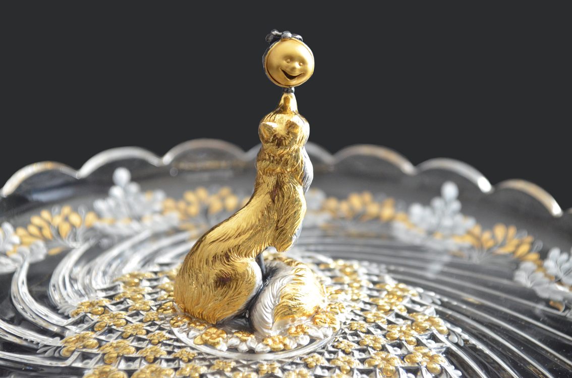 Технологии:литье, ручная сборка, оксидирование, расчистка, золочение, полирование; ручное гравирование по хрусталю, ручная роспись хрусталя.