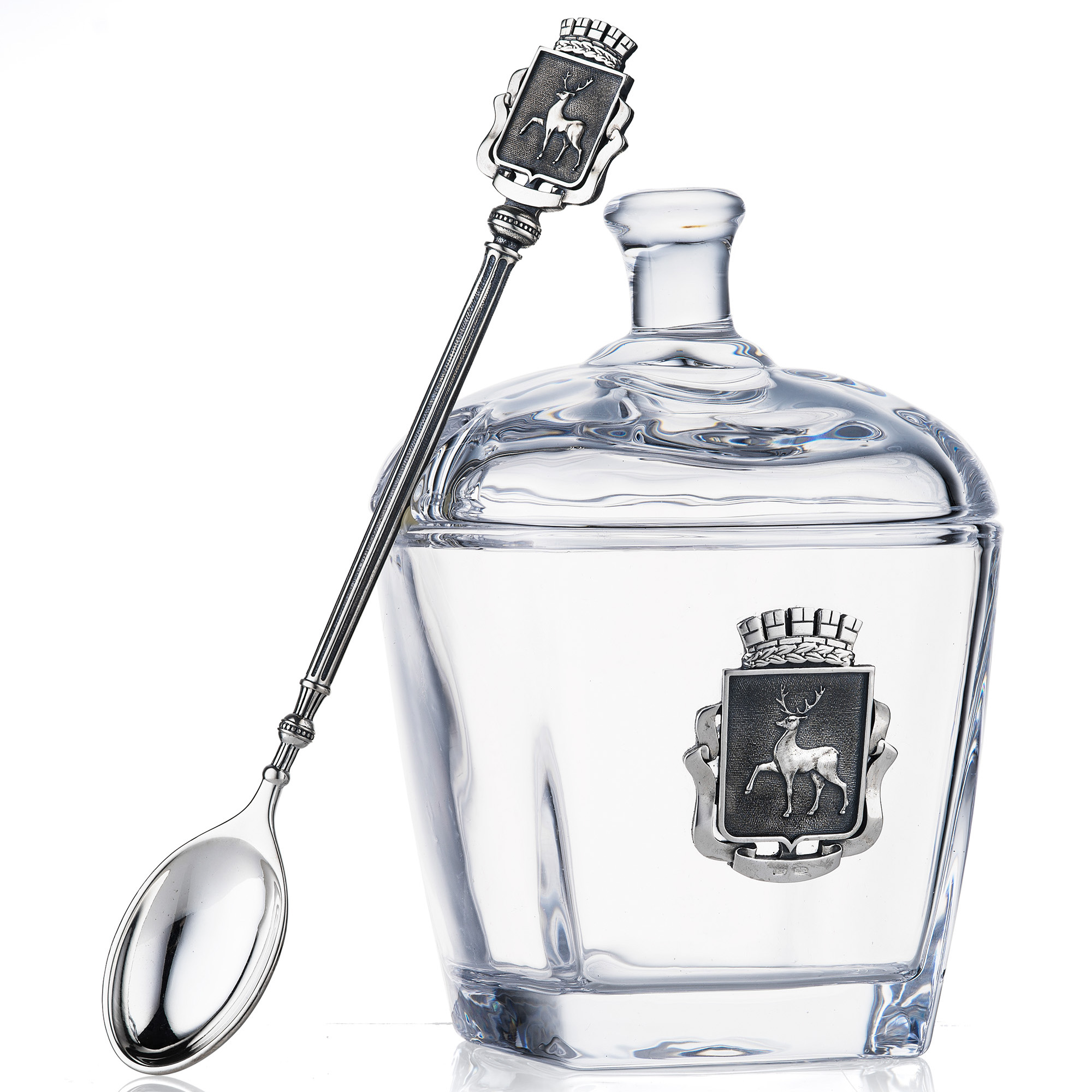Сахарница “Нижний Новгород” выполнена из высококачественного стекла и украшена серебряной накладкой с изображением герба Нижнего Новгорода. В комплекте с сахарницей идет удобная ложка, которая также украшена гербом города. Эта сахарница станет отличным украшением для вашего стола и замечательным подарком для гостей из Нижнего Новгорода или для тех, кто интересуется историей и культурой этого города.
