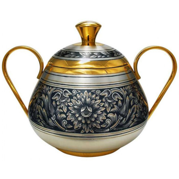 Северная черньСахарница серебрянаяСахарница серебрянаяВеликоустюгский завод «Северная чернь» – уникальное предприятие народного художественного промысла, сложившегося в городе Великий Устюг в ХVII веке, сохраняющее и развивающее трехсотлетние традиции древнерусского искусства чернения по серебру, не имеющего аналогов в современном ювелирном искусстве. Все изделия производятся традиционным для народного художественного промысла ручным способом, с соблюдением в технологии основных приемов старинных мастеров.