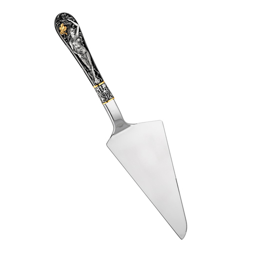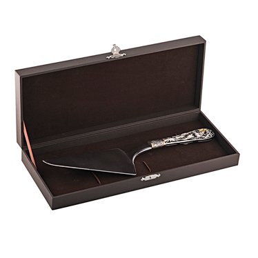 Лопатка, позволяющая удобно разложить торт по тарелкам, не ухудшая его внешний вид, изготовлена из первоклассной нержавеющей стали, которая не окисляется и не впитывает запахи. Удобство треугольной формы лопатки трудно переоценить, перекладывая слоёные салаты. Фирменный подарочный футляр в комплекте. Полностью ручная работа.