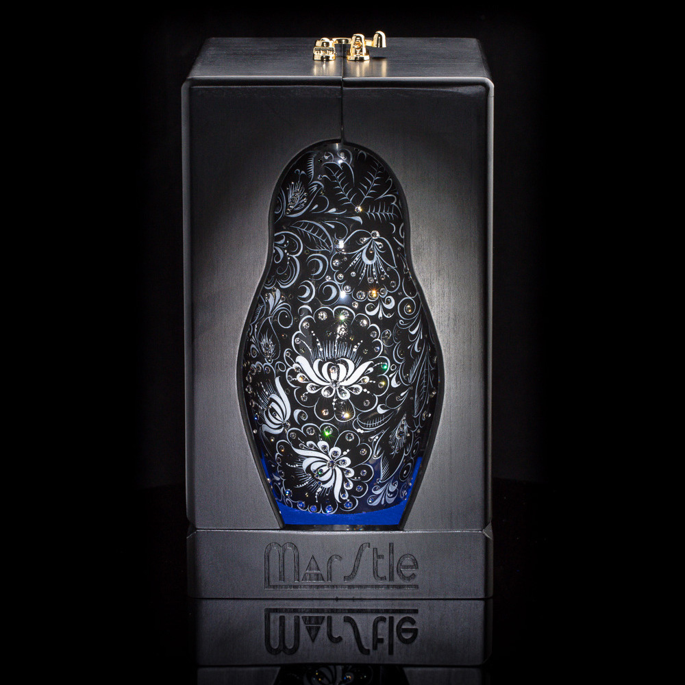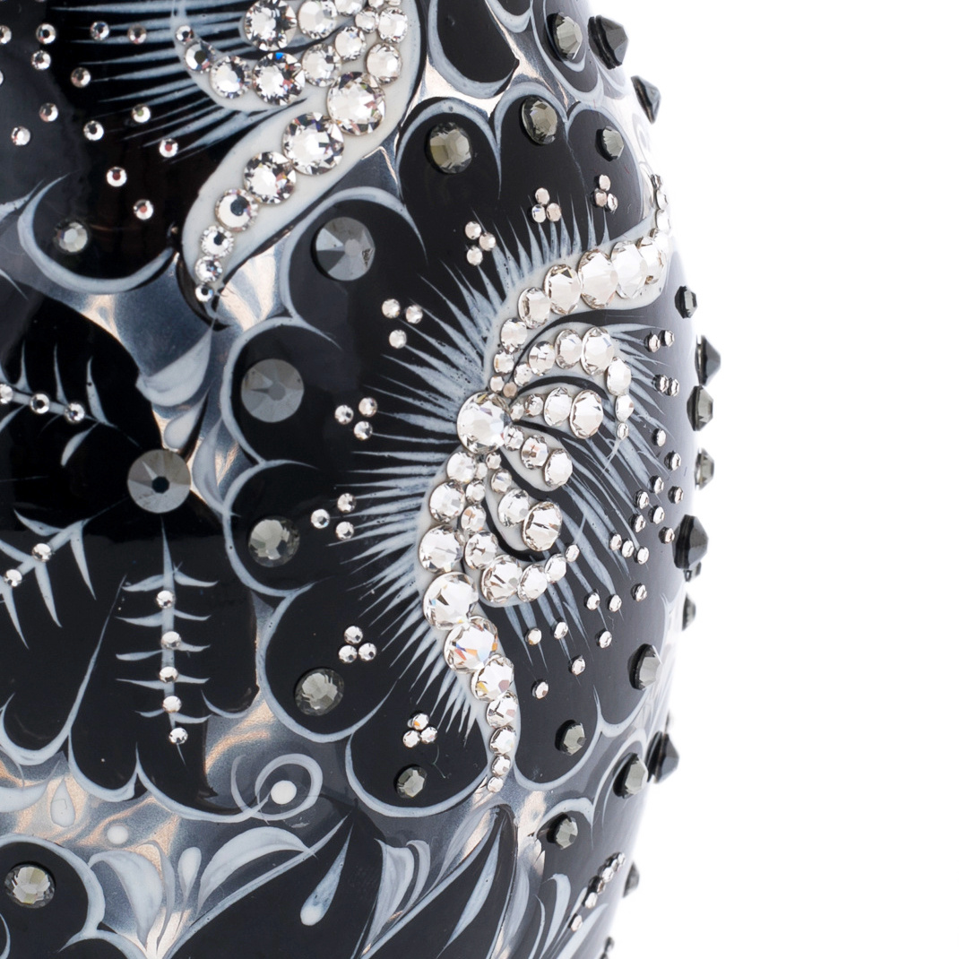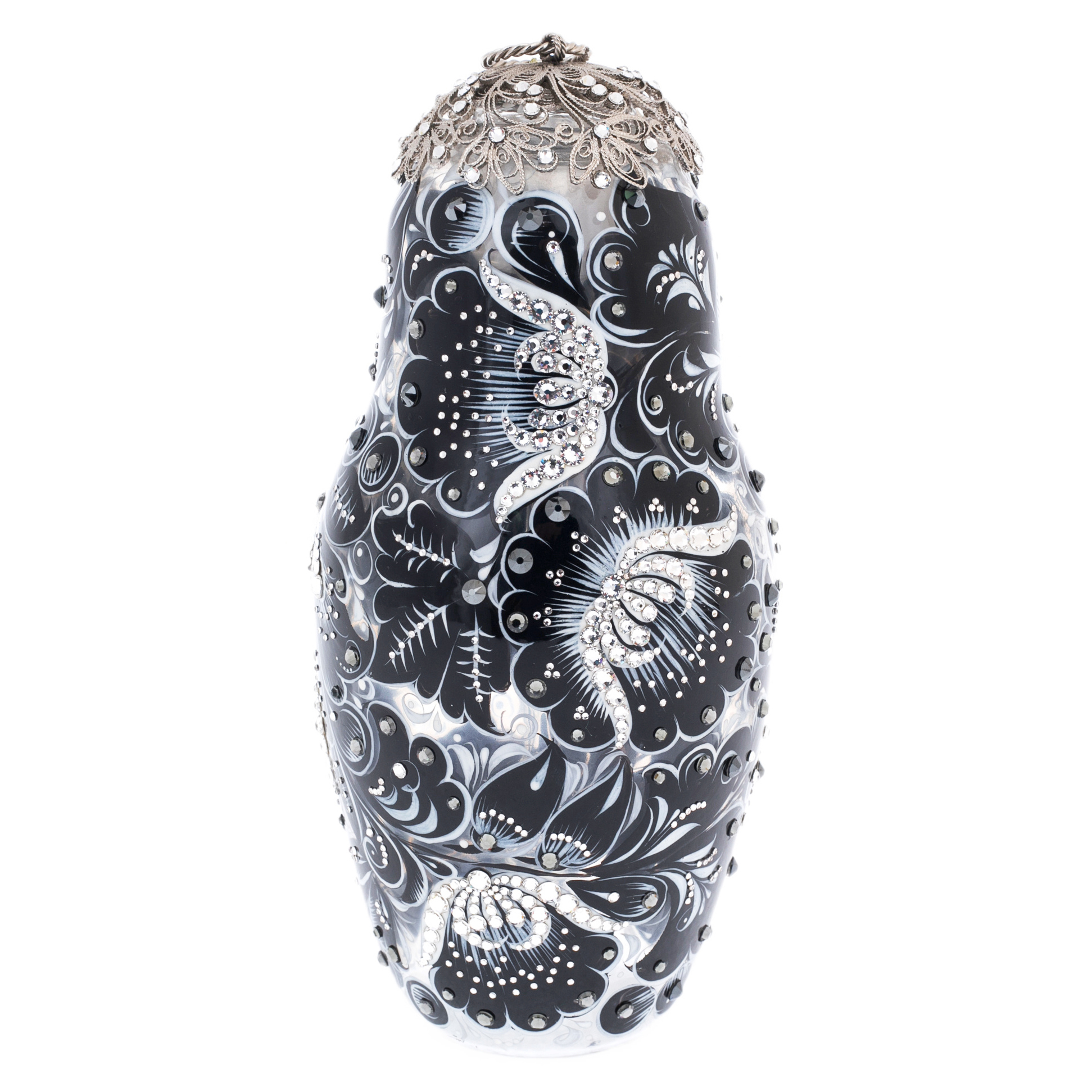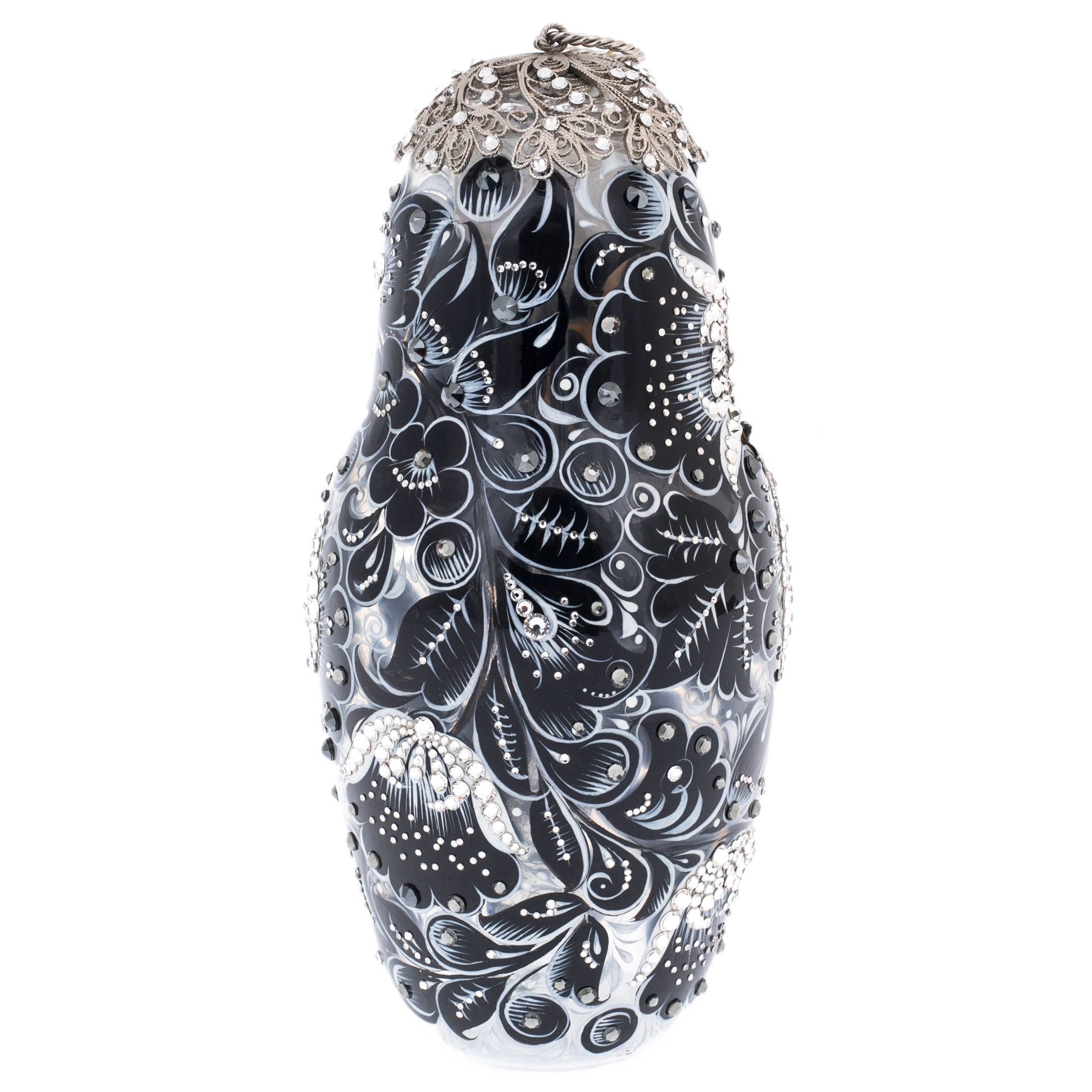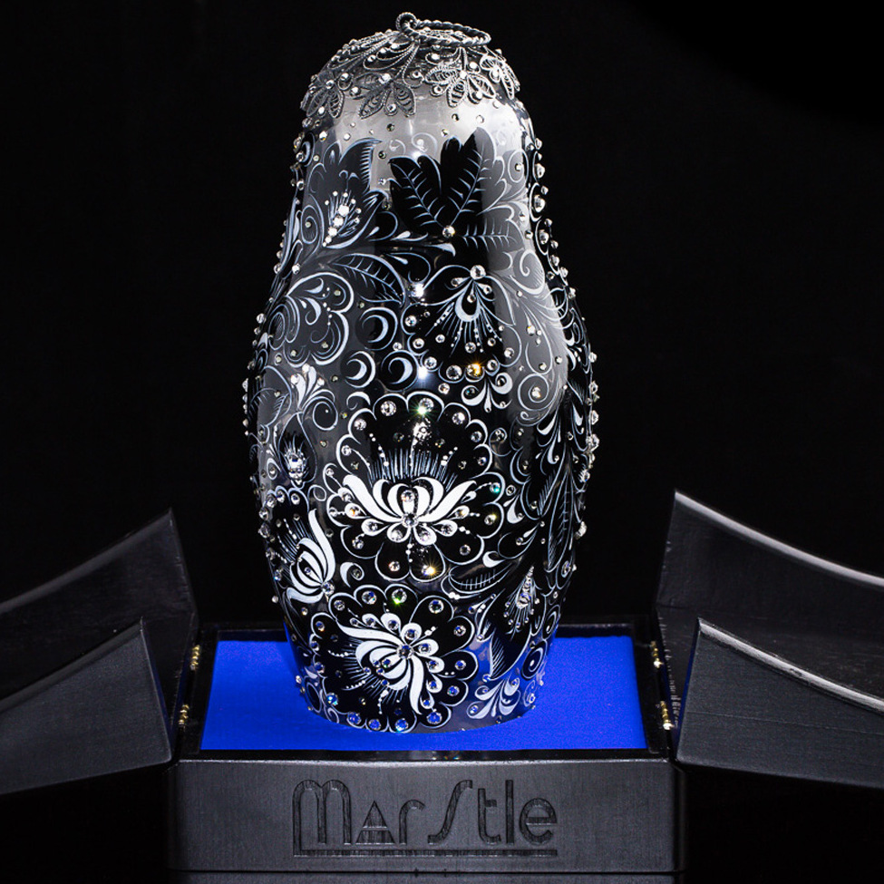 Матрешка-медовница из стекла "Черный янтарь" со стразами Swarovski, Хохлома