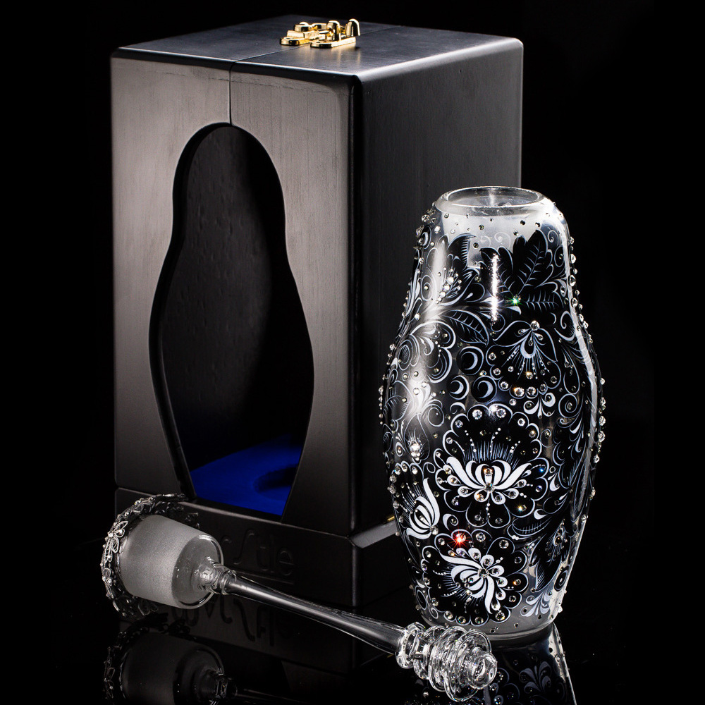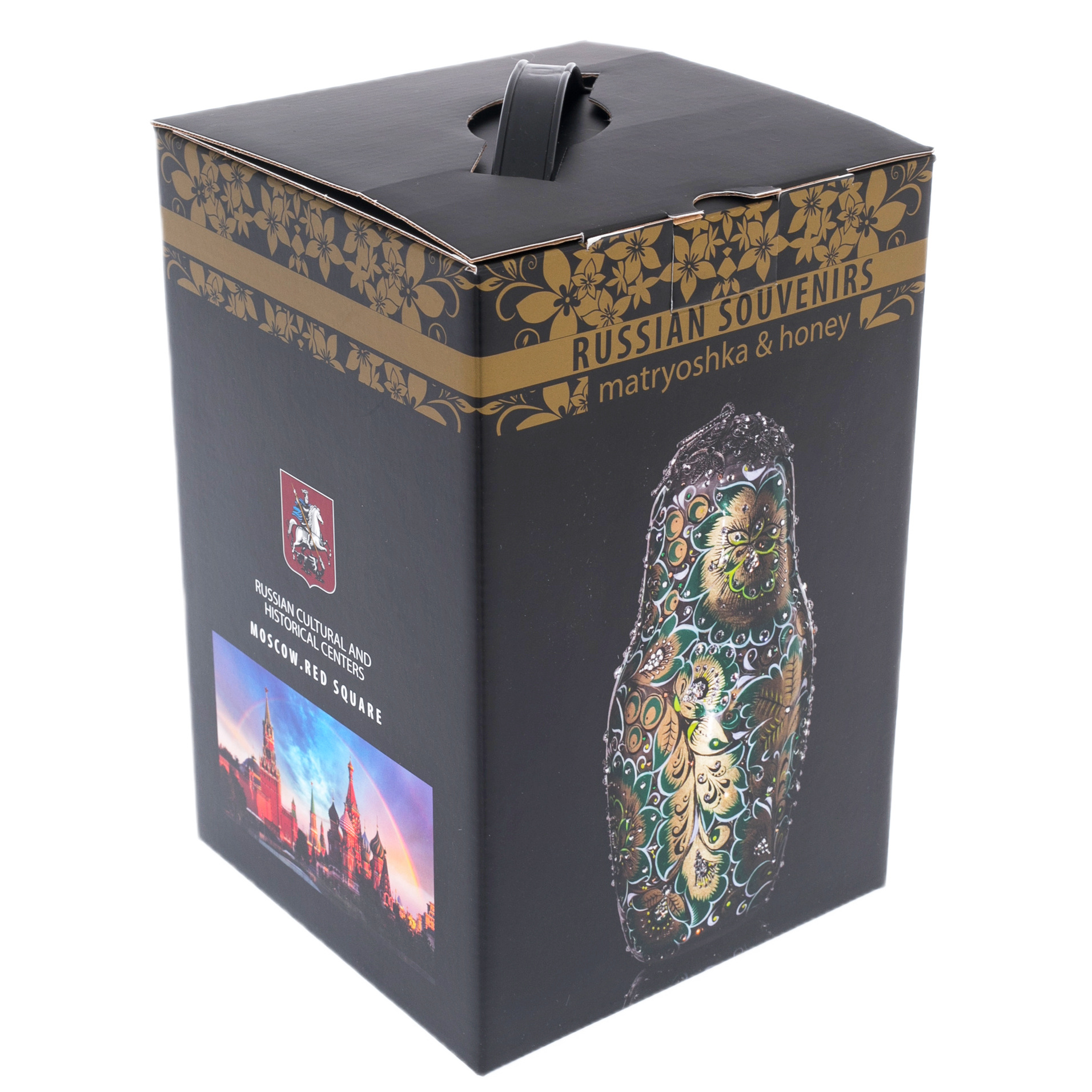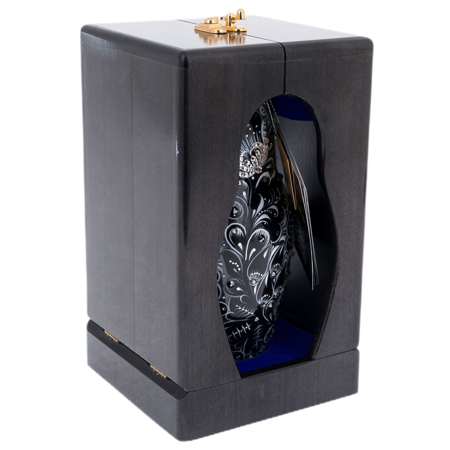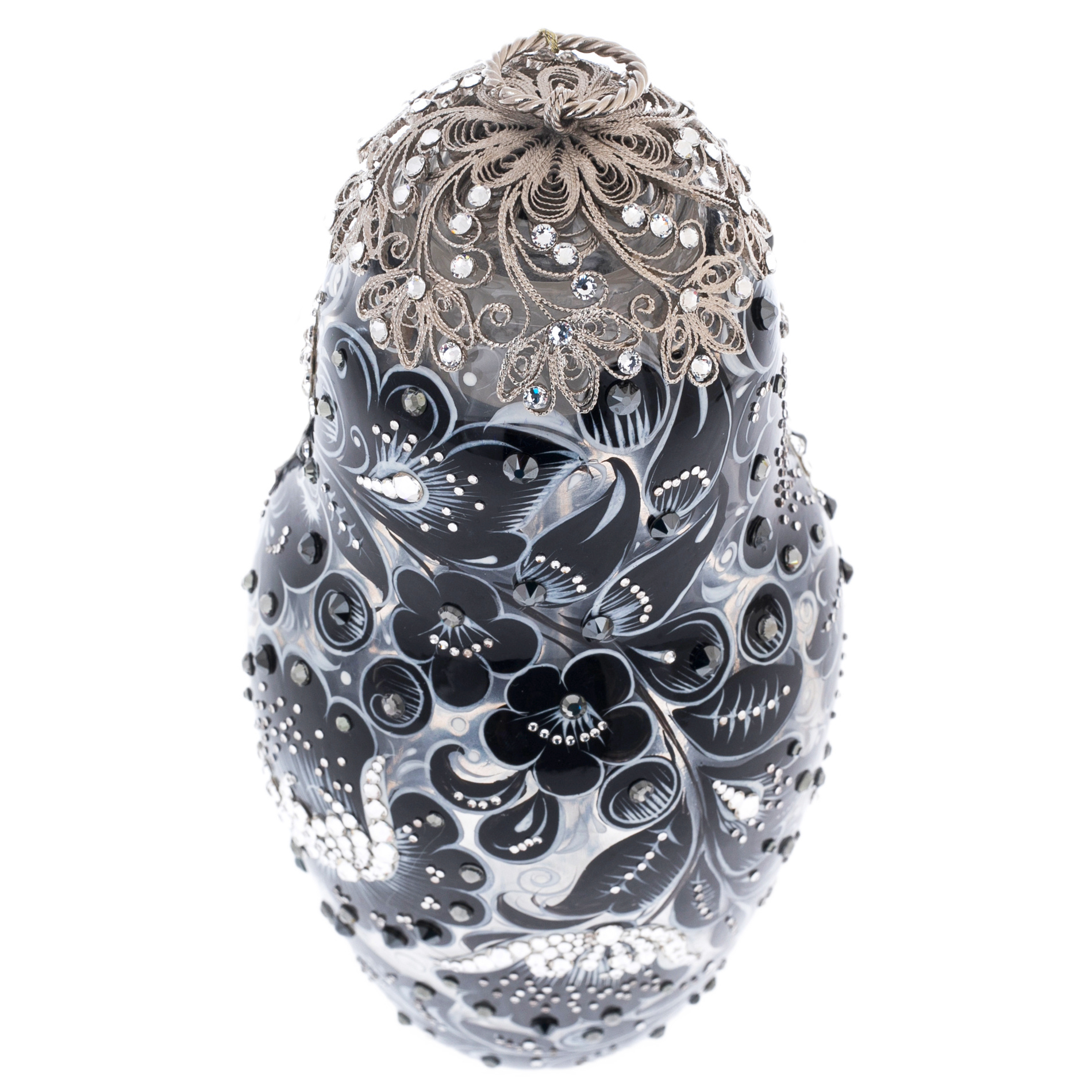 Матрешка-медовница из стекла "Черный янтарь" со стразами Swarovski, Хохлома