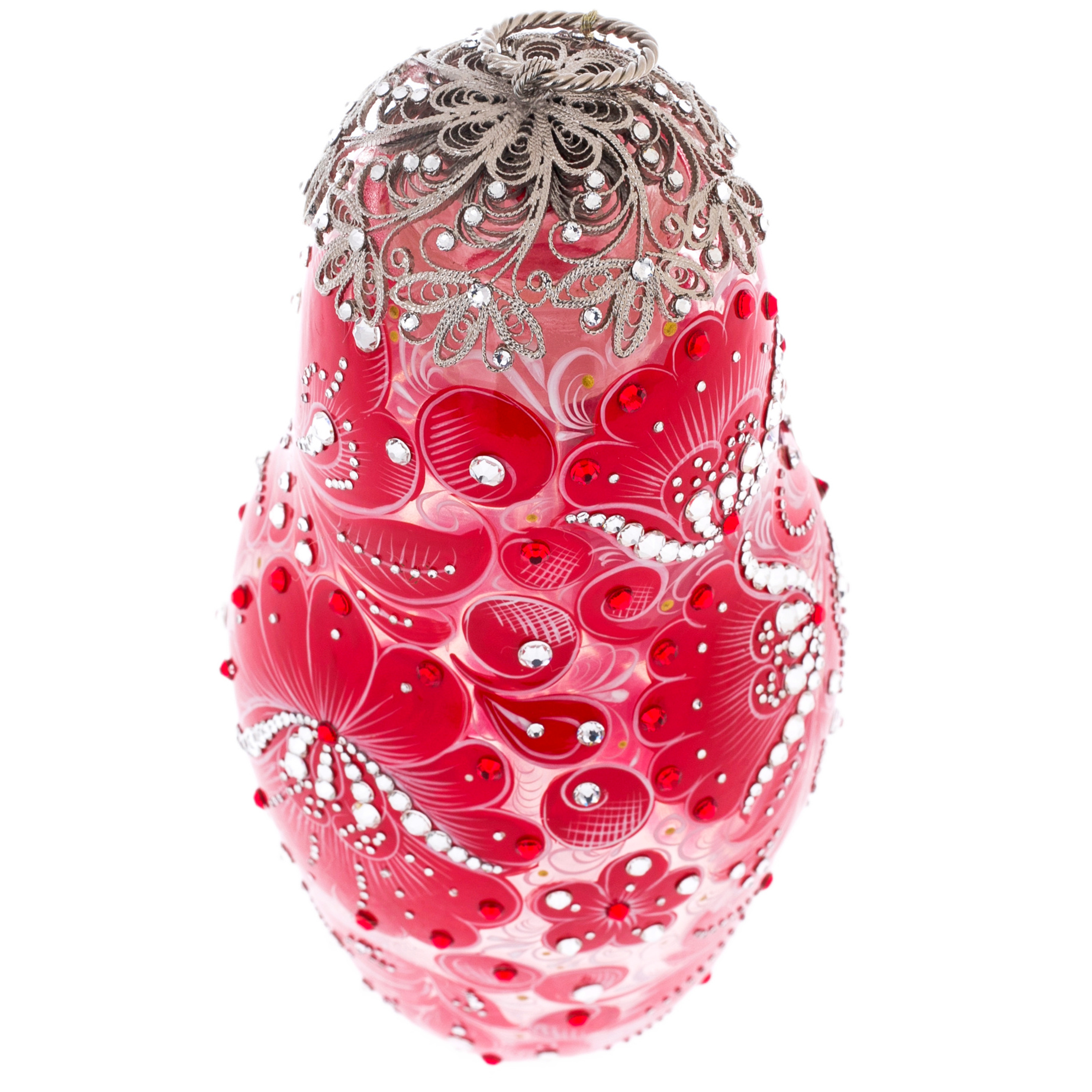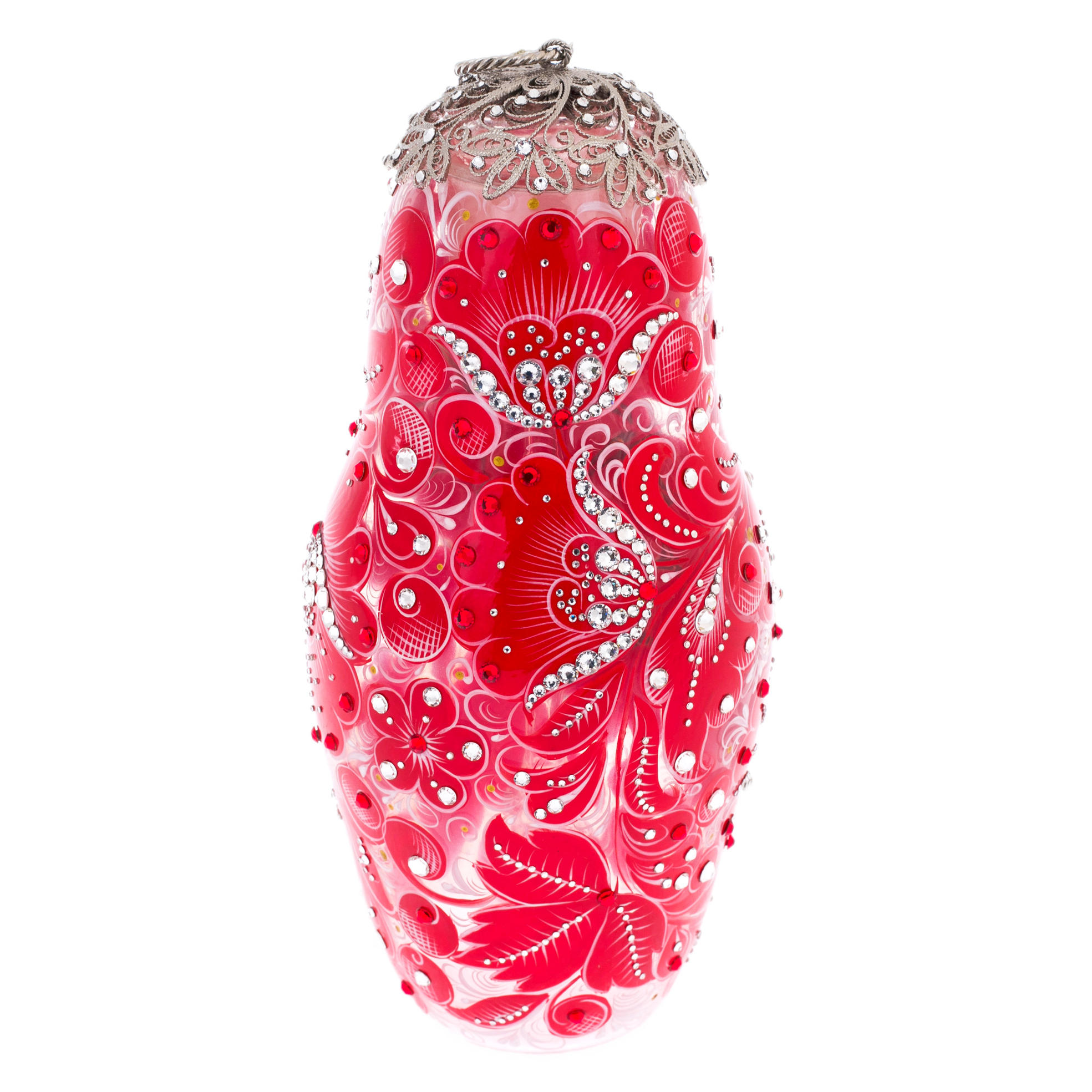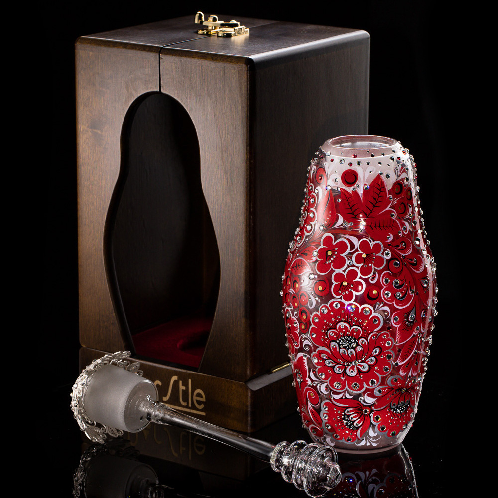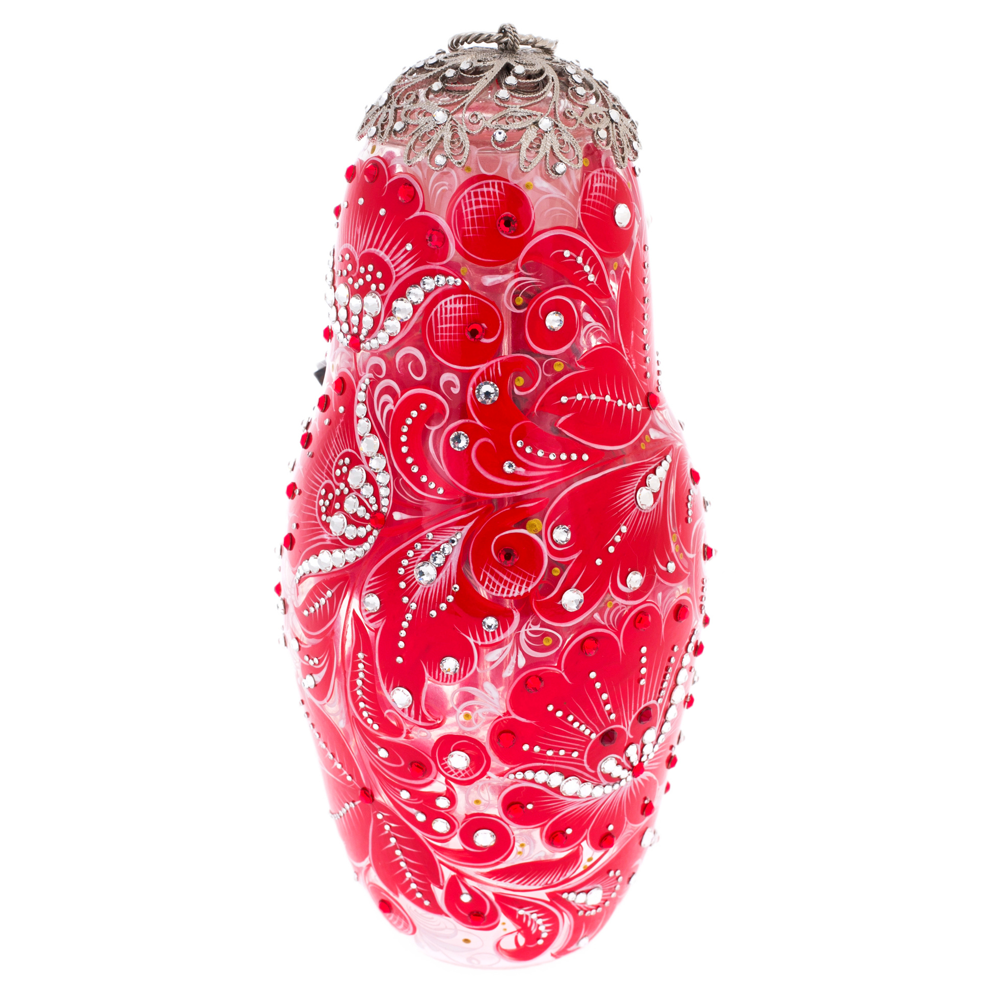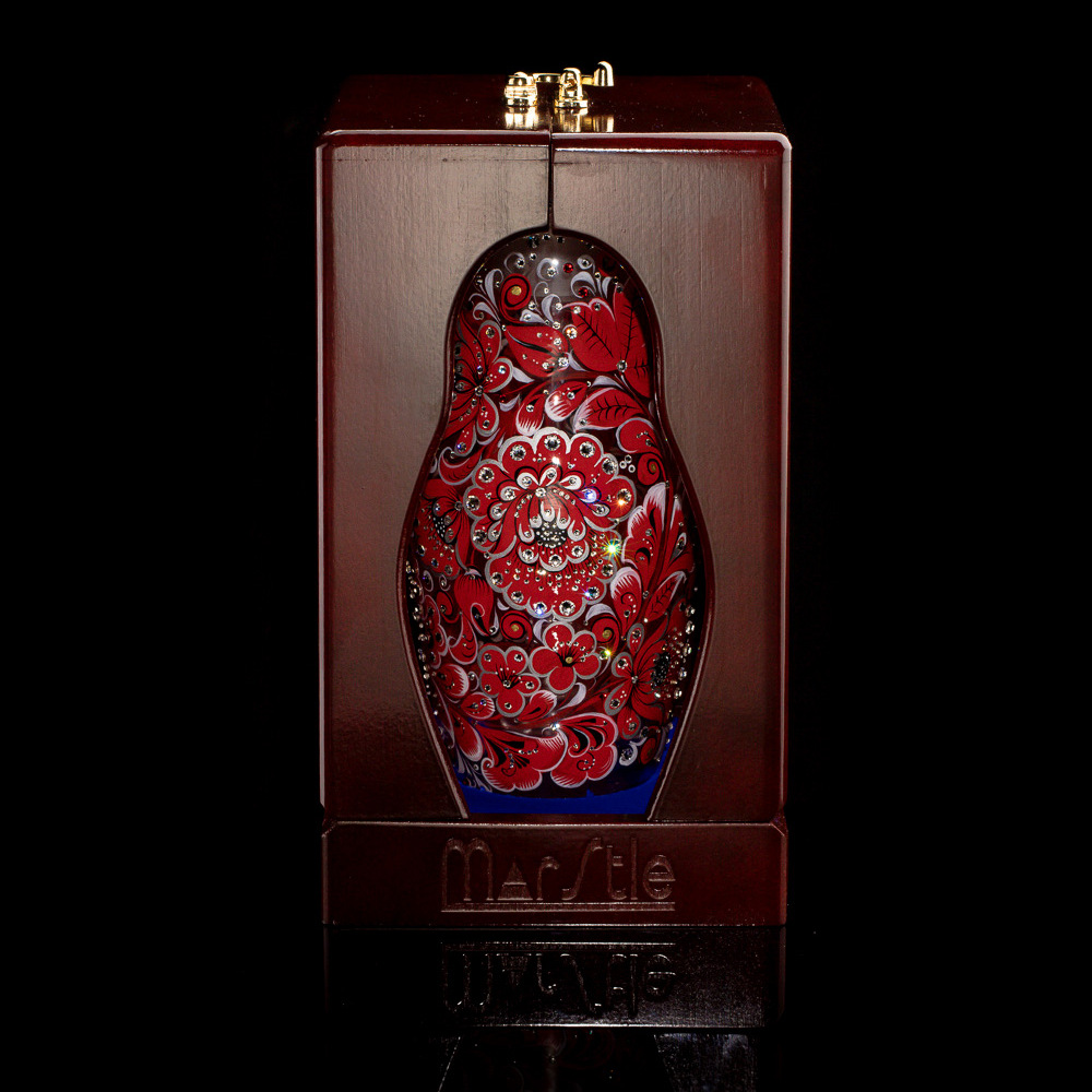 Матрешка-медовница из стекла "Королевский рубин" со стразами Swarovski, Хохлома