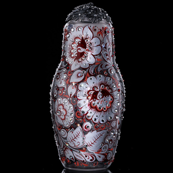 Матрешка-медовница из стекла "Зимняя вишня" со стразами Swarovski, Хохлома