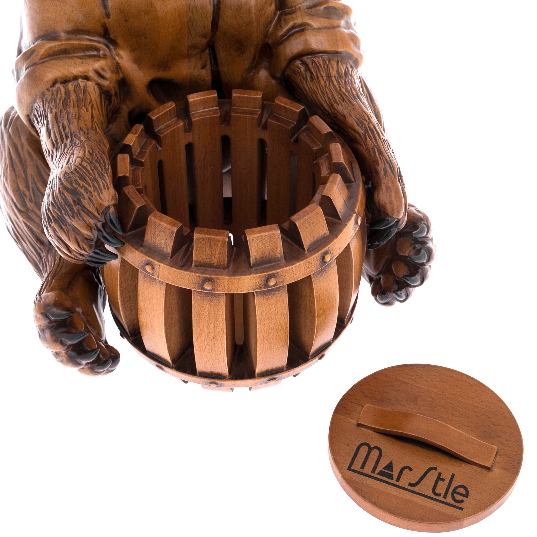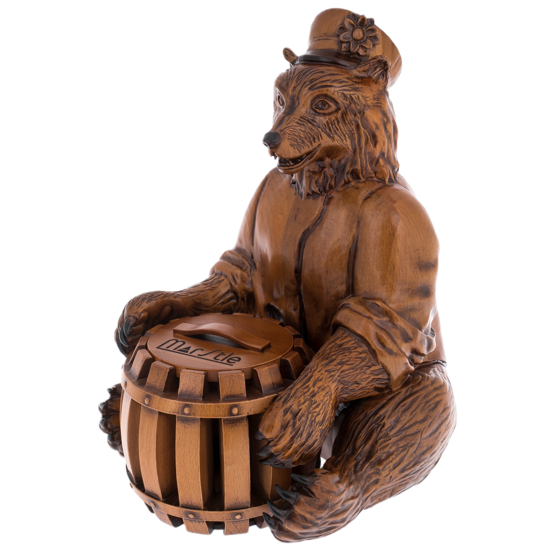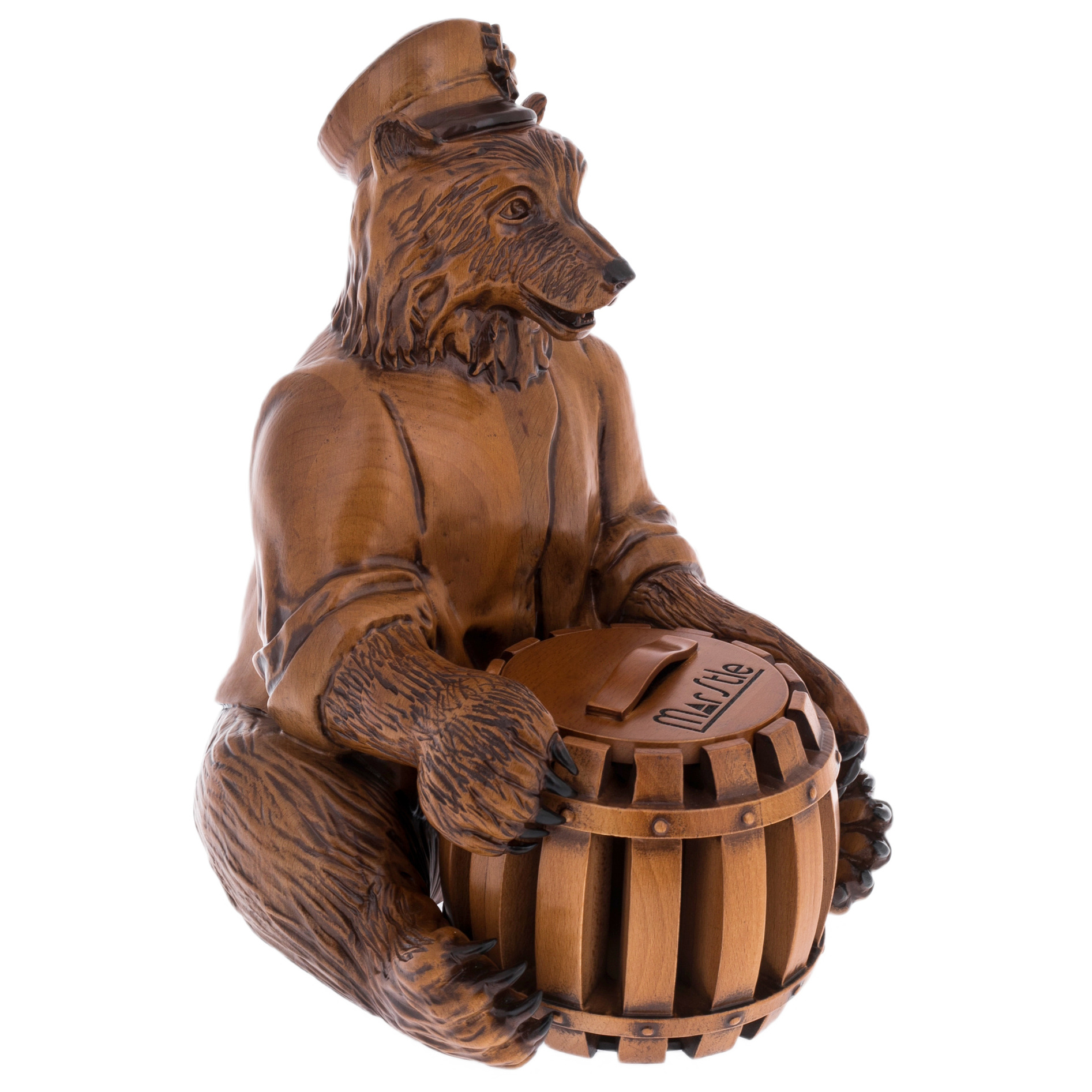 Медовница "Медведь с бочкой" из массива бука — это олицетворение тепла домашнего уюта и роскошного русского фольклора, превращённое в уникальный предмет сервировки. Фигура медведя, символизирующего силу, мудрость и защиту, исполняет роль не просто аксессуара, но и хранителя сладкого янтарного лакомства. Каждая деталь этой работы создана с виртуозной точностью, придавая изделию характерный шарм и неподражаемую индивидуальность.