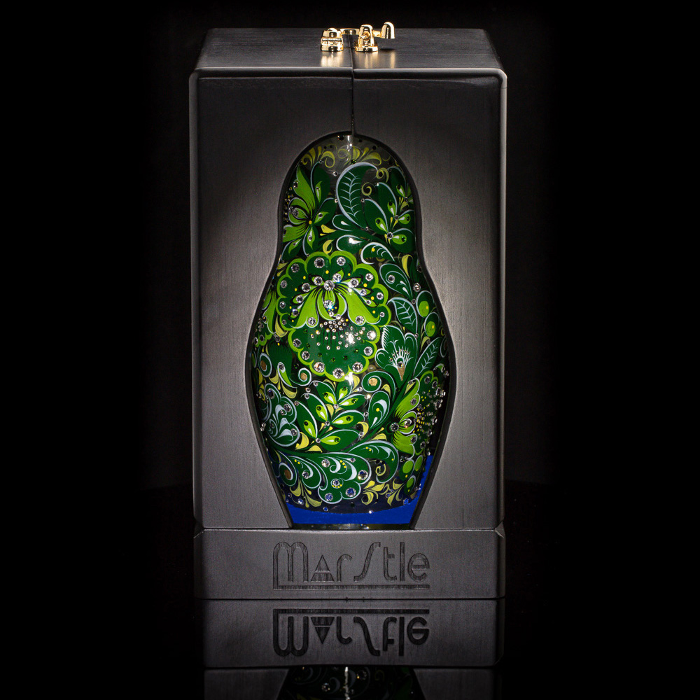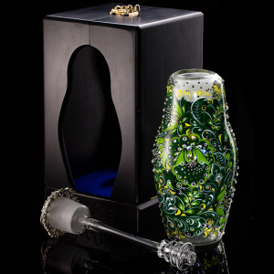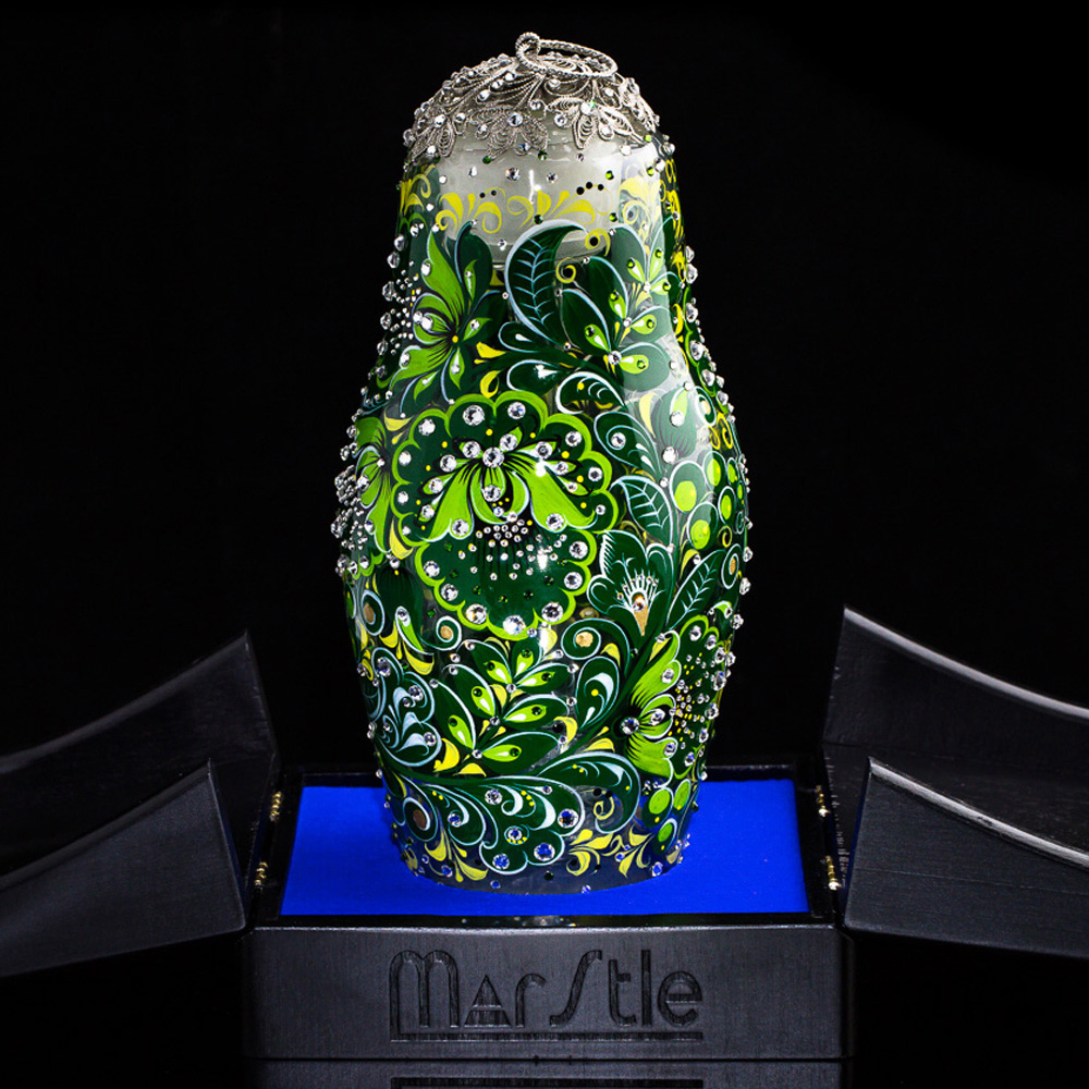 Матрешка-медовница из стекла "Изумрудное вдохновение" со стразами Swarovski, Хохлома
