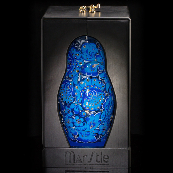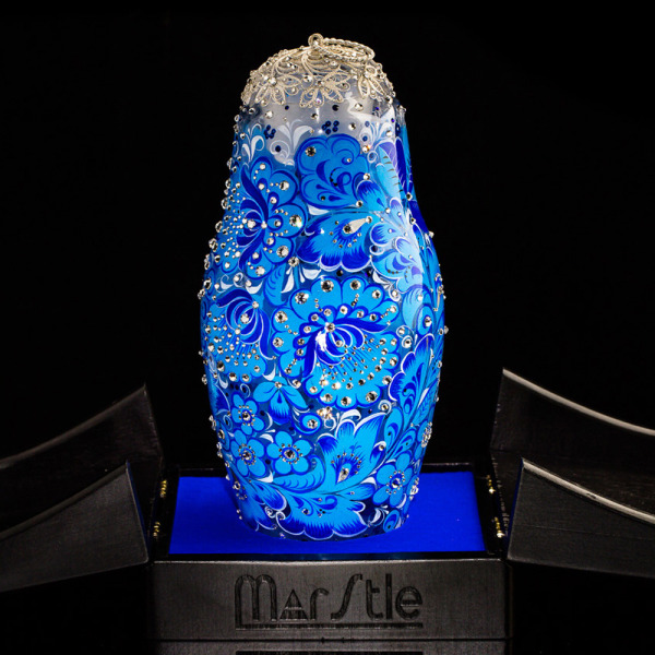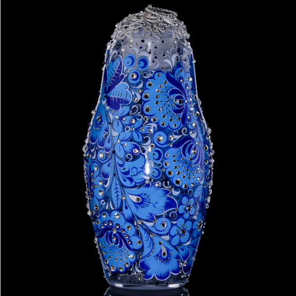 Матрешка-медовница из стекла "Небесная лазурь" со стразами Swarovski, Хохлома