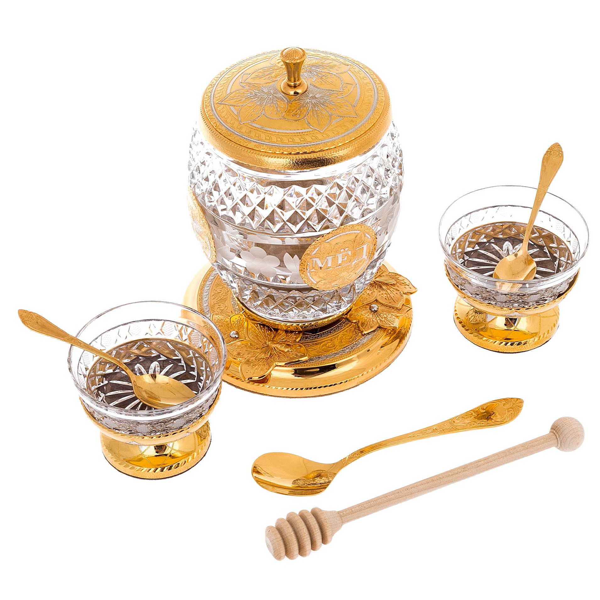 Комплектация:медовница, пиалы - 2 шт, ложечки - 2 шт, ложечка для мёда.