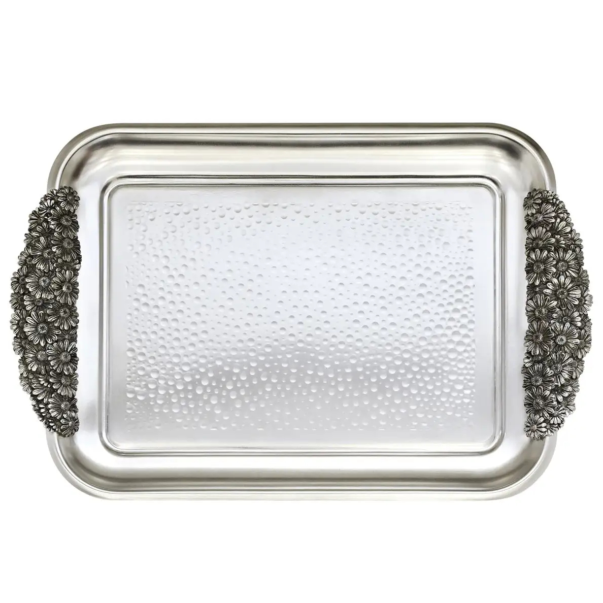 Поднос прямоугольный с накладками "Ромашки" медный посеребренный кованый