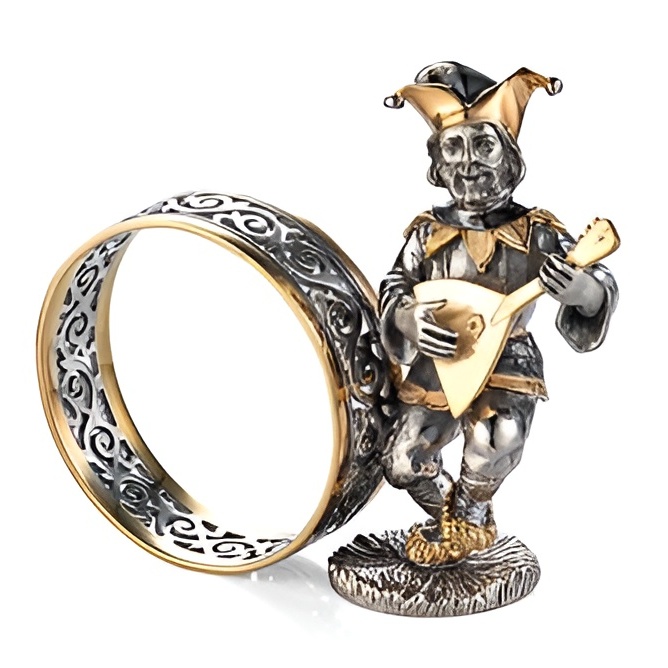 Кольцо серебряное для салфеток "Скоморох с балалайкой" с позолотой