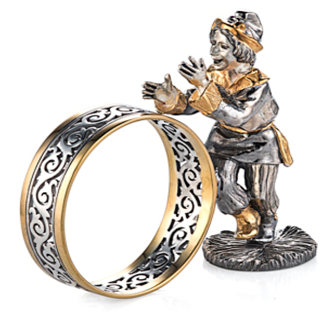 Кольцо серебряное для салфеток "Скоморох" с позолотой