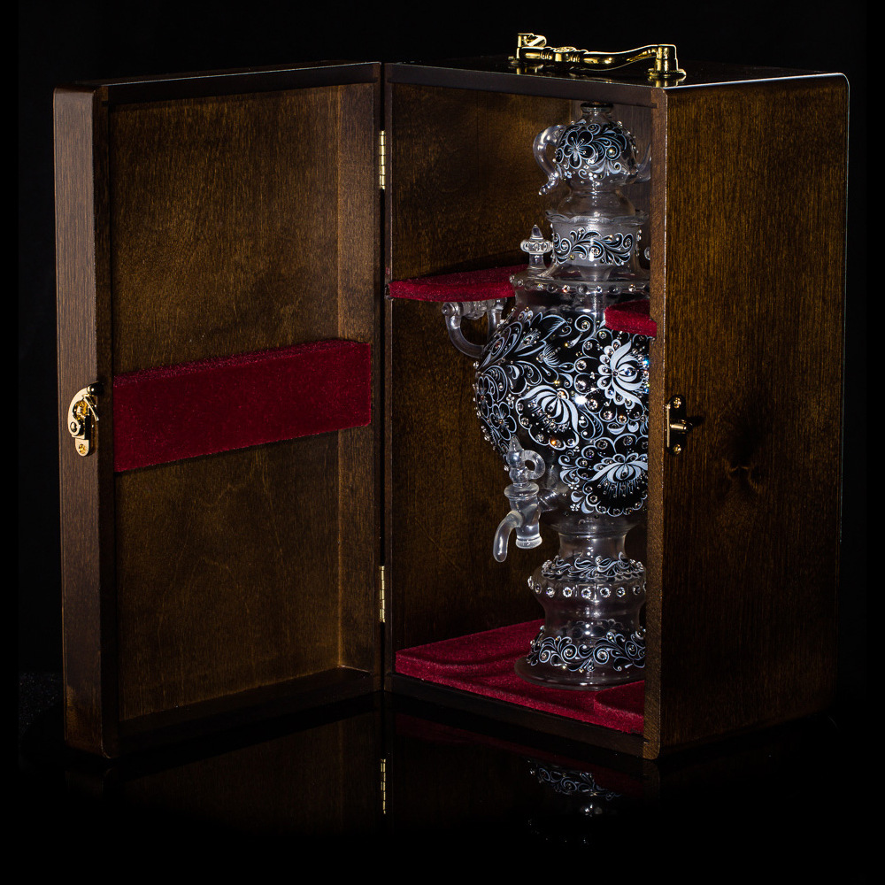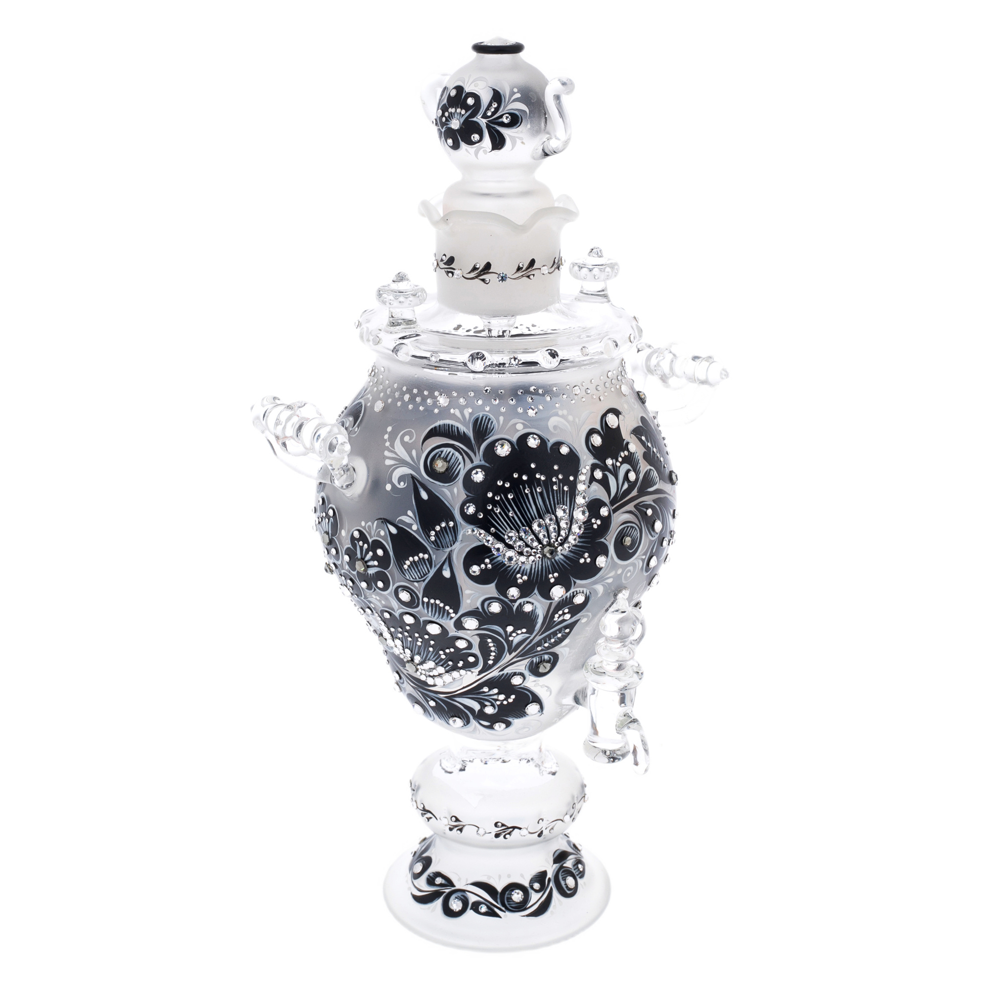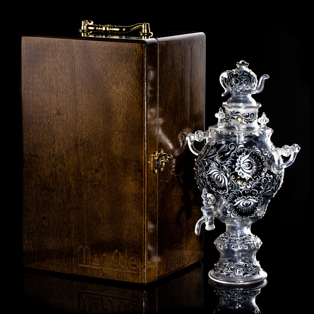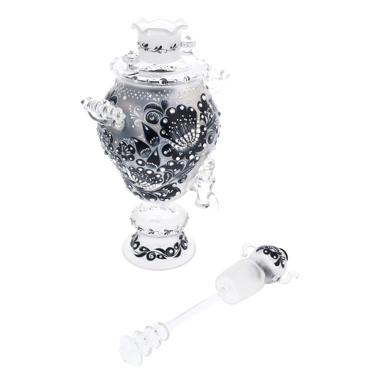 Самовар-медовница из стекла "Черный янтарь" со стразами Swarovski, Хохлома