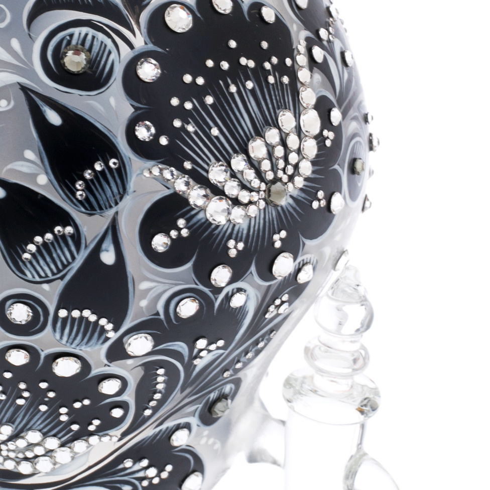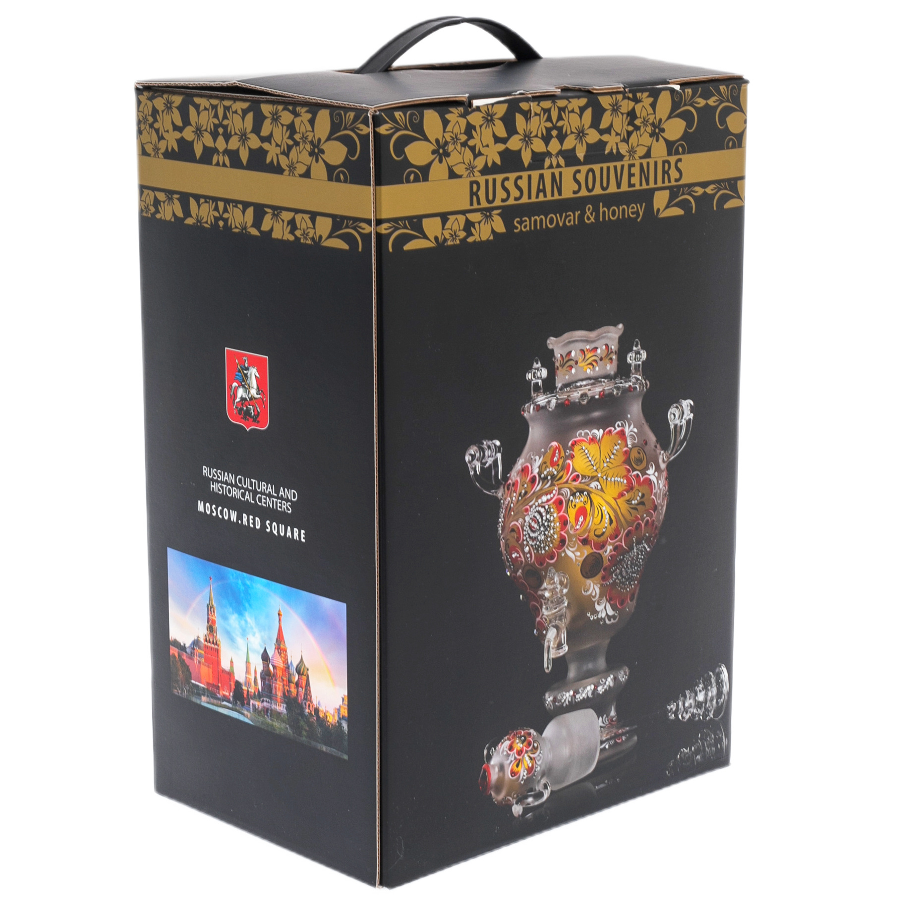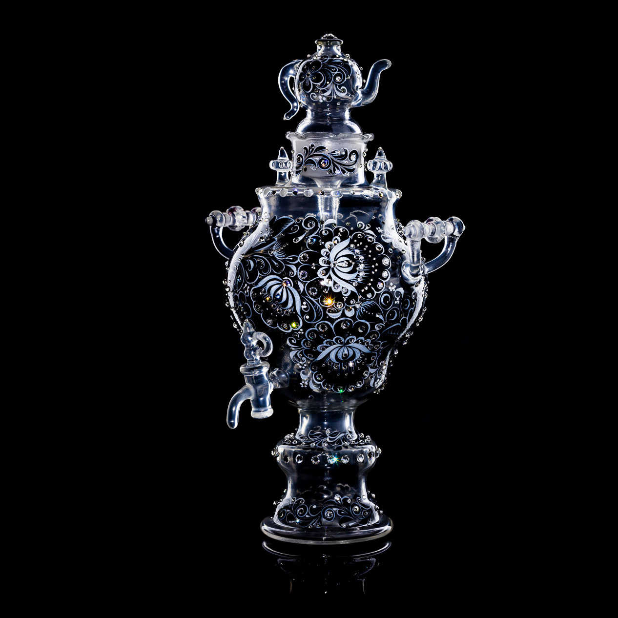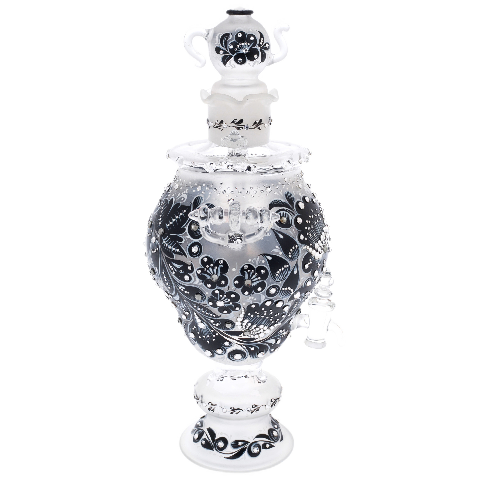 Самовар-медовница из стекла "Черный янтарь" со стразами Swarovski, Хохлома