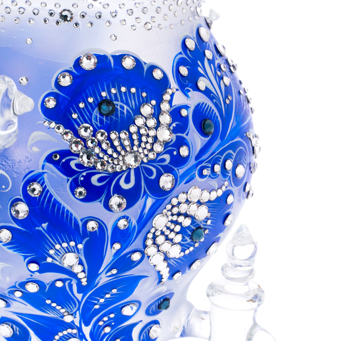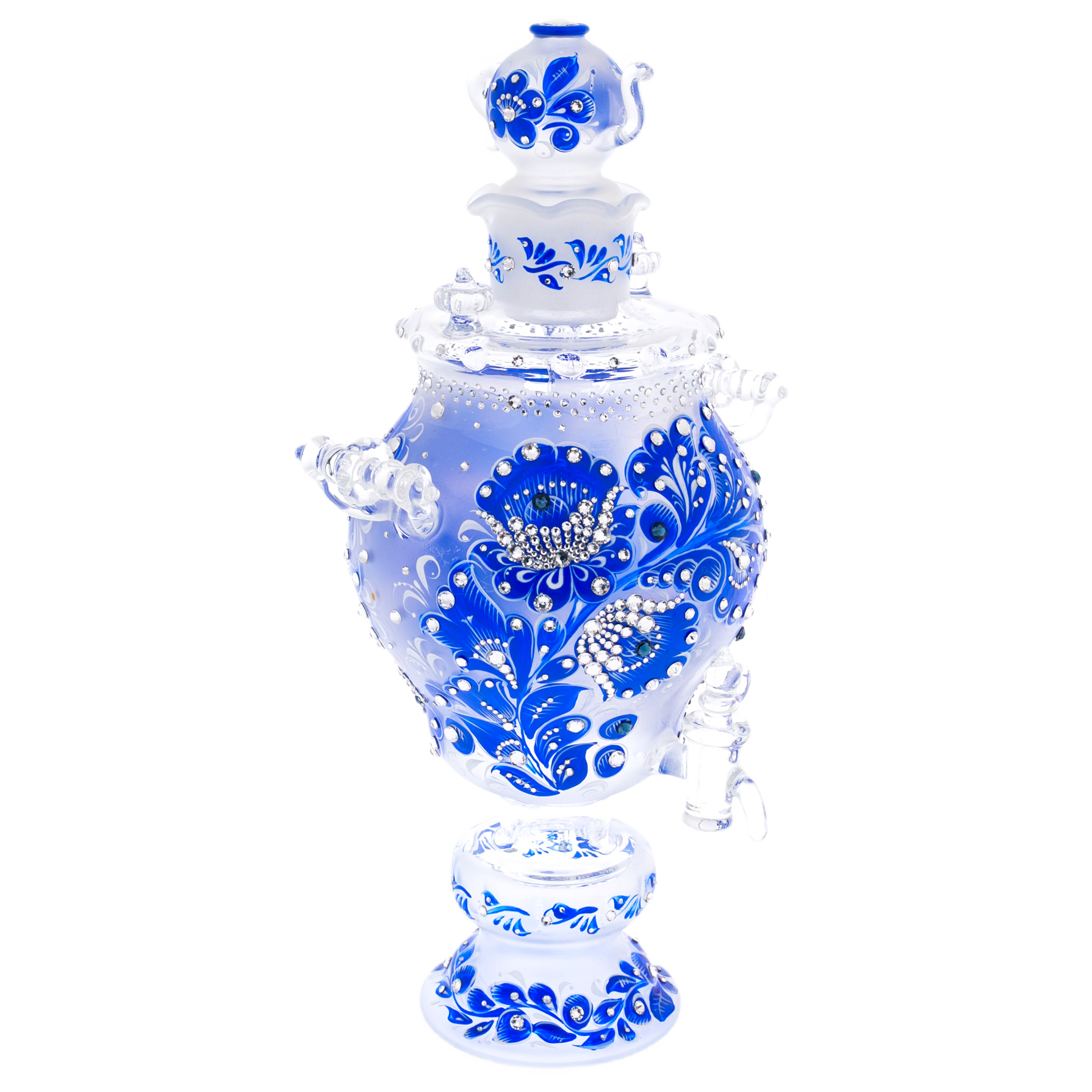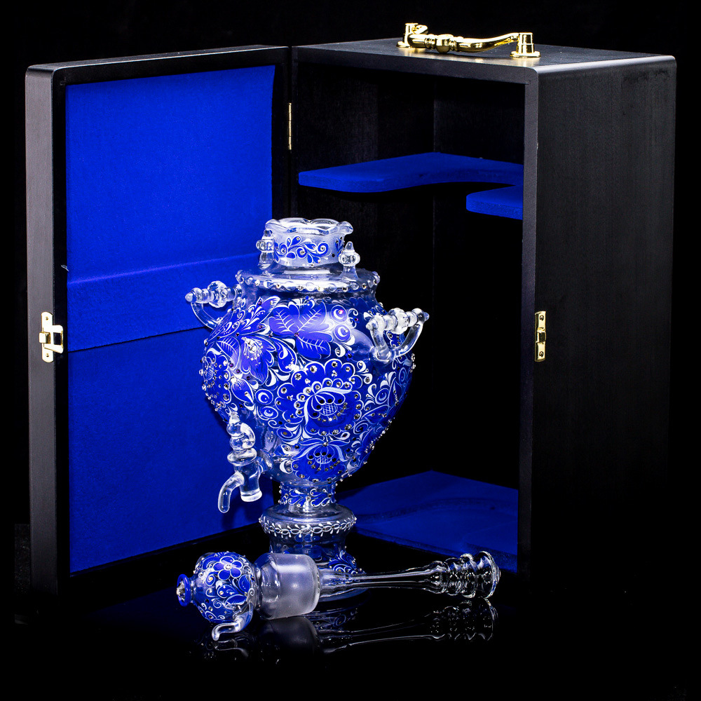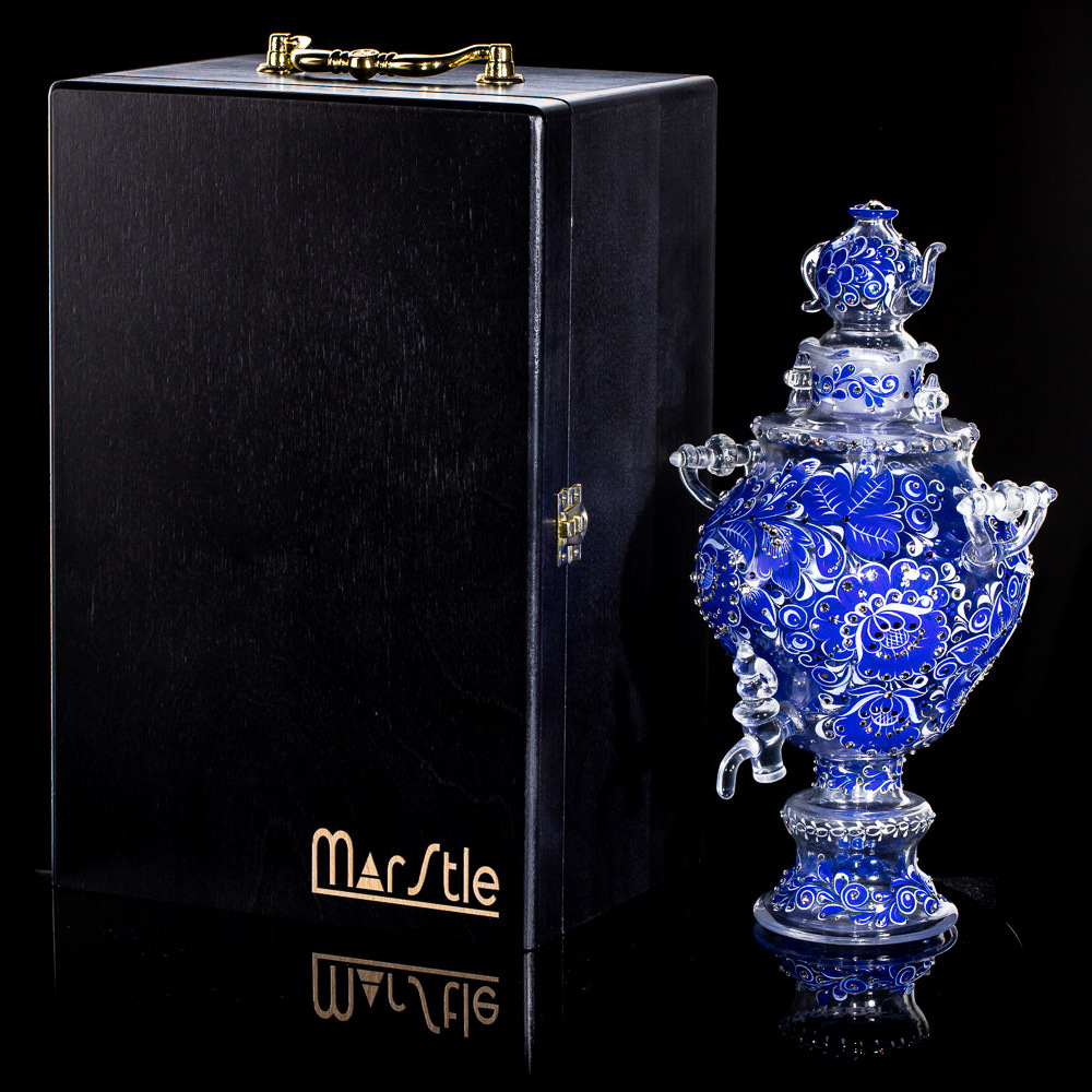 Самовар-медовница из стекла "Морская лазурь" со стразами Swarovski, Хохлома