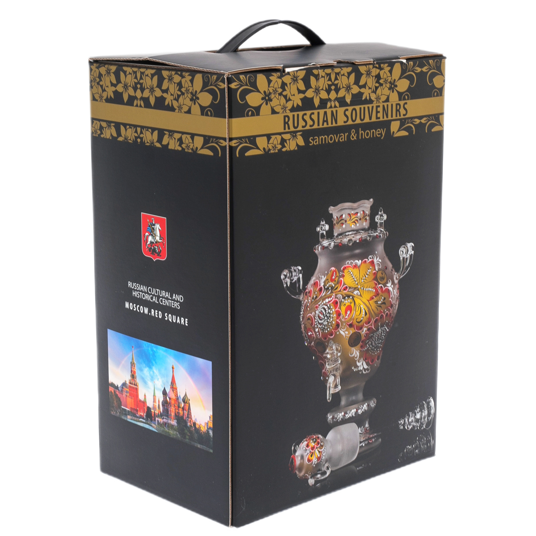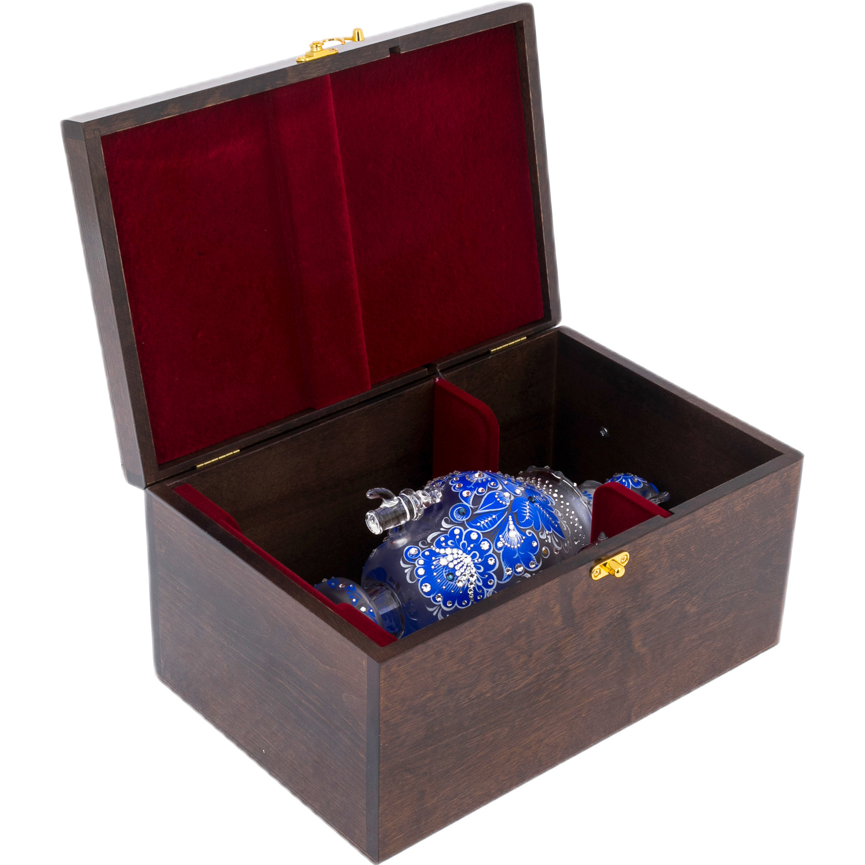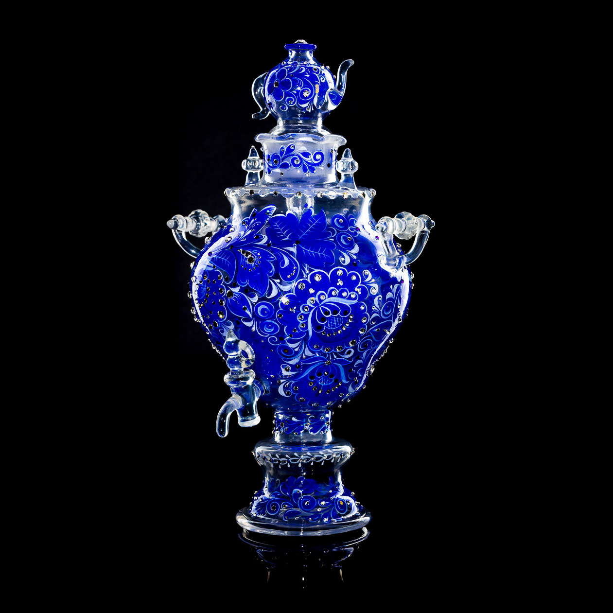Самовар-медовница из стекла "Морская лазурь" со стразами Swarovski, Хохлома