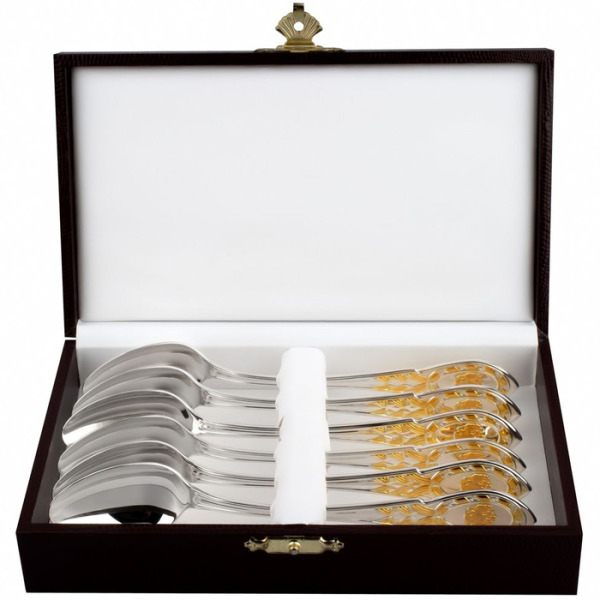 Набор чайных ложек из серебра с золочением "Государственный Герб РФ" на 6 персон