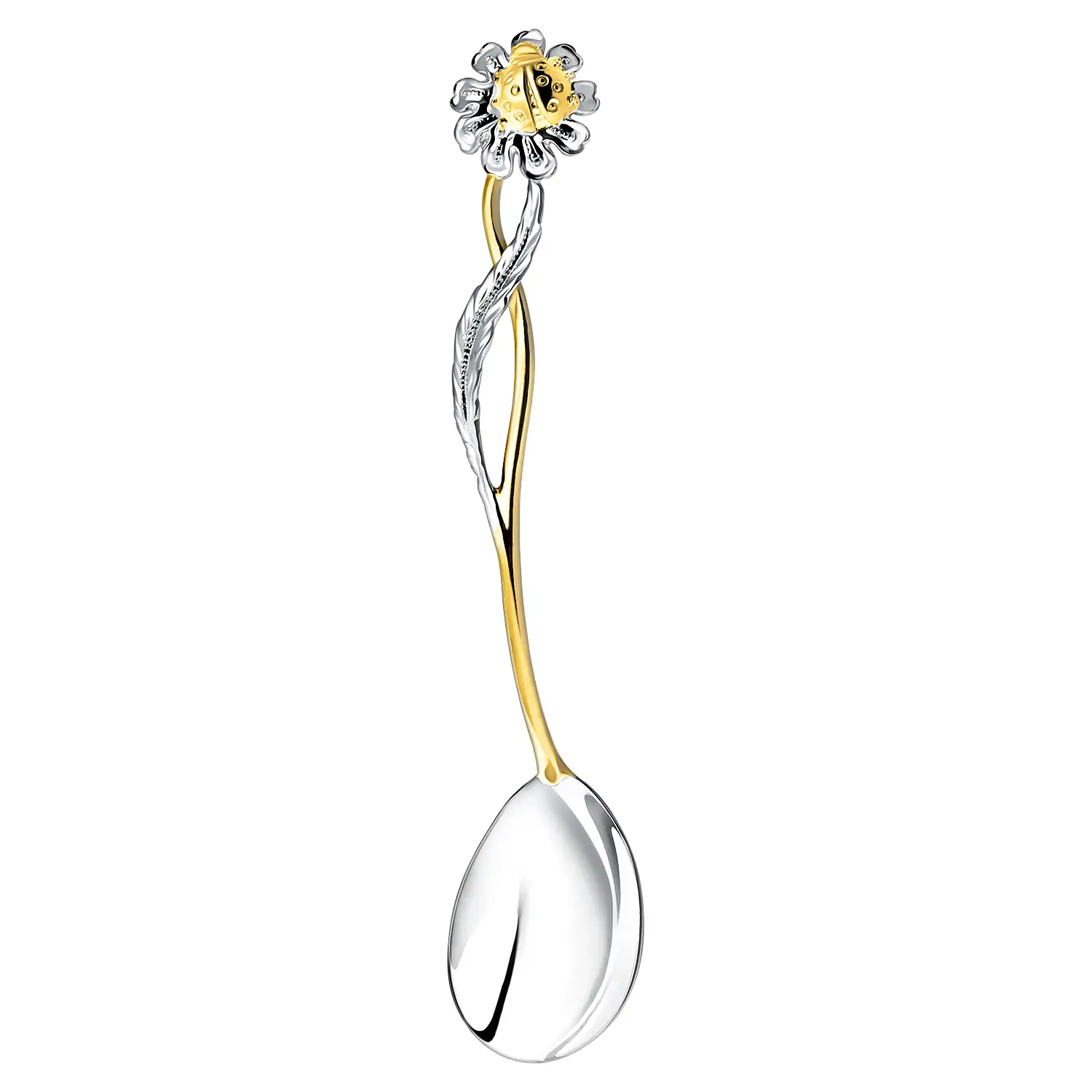 Серебряная чайная ложка "Ромашка" с позолотой, нв 1 персону