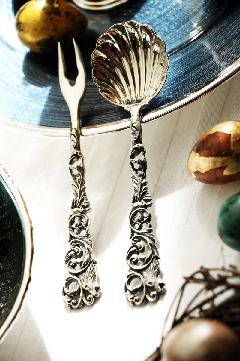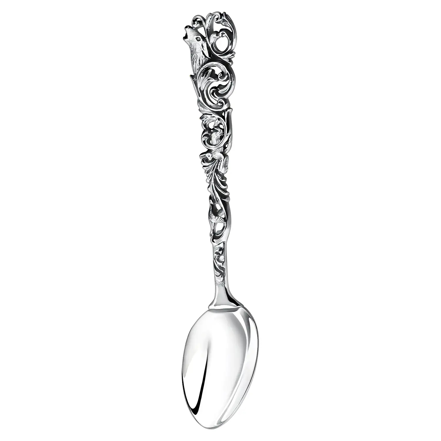 Серебряный чайный набор "Охотничий": вилка для лимона, Ложка чайная, совок для сахара