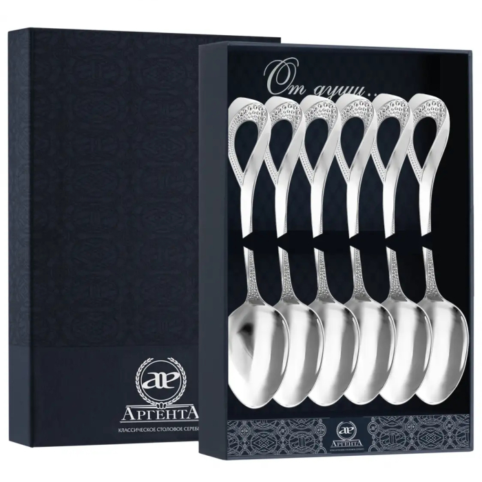 АргентаСеребряный набор чайных ложек "Элегант" на 6 персонСеребряный набор чайных ложек "Элегант" на 6 персонОТ ДУШИ! - это ваш ключ к идеальному подарку. Постоянно растущая коллекция очаровательных серебряных сувениров и подарков состоит из множества чайных ложечек и ситечек для чая, зажимов для купюр и закладок для книг, ионизаторов воды, брелоков и новогодних символов. Каждый товар поставляется в красивом фирменном футляре и уже выглядит как готовый подарок, который точно порадует и станет приятным сюрпризом для близкого человека, друга, коллеги или просто кого-то особенного.